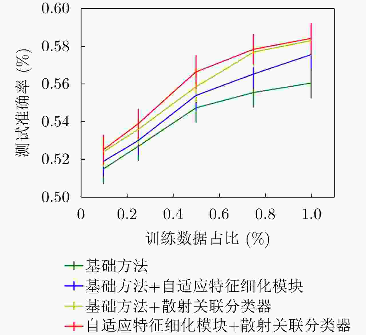 散射关联分类器 自适应特征细化模块 5-way 1-shot (%) 5-way 5-shot (%) × × 57.33 ± 0.9 67.60 ± 0.7 × √ 58.86 ± 0.8 68.72 ± 0.7 √ × 59.60 ± 0.9 68.85 ± 0.7 √ √ 59.90 ± 0.9 70.13 ± 0.7 -