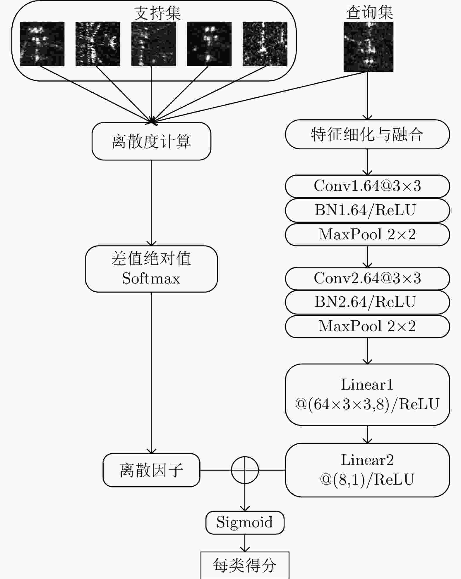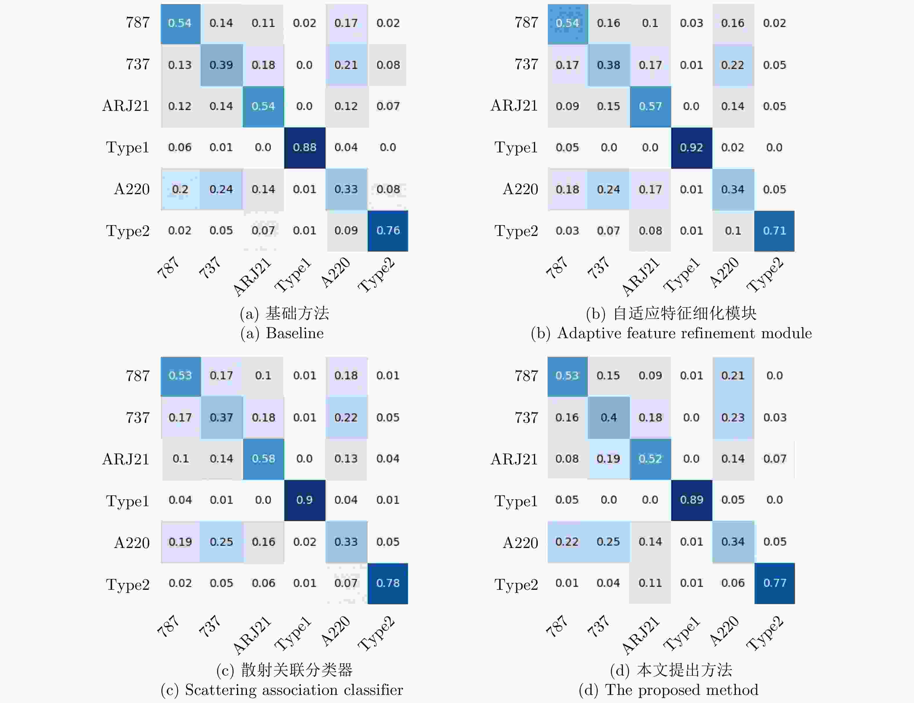 摘要: SAR图像由于数据获取难度大,样本标注难,目标覆盖率不足,导致包含地理空间目标的影像数量稀少。为了解决这些问题,该文开展了基于散射信息和元学习的SAR图像飞机目标识别方法研究。针对SAR图像中不同型号飞机空间结构离散分布差异较大的情况,设计散射关联分类器,对飞机目标的离散程度量化建模,通过不同目标离散分布的差异来动态调整样本对的权重,指导网络学习更具有区分性的类间特征表示。考虑到SAR目标成像易受背景噪声的影响,设计了自适应特征细化模块,促使网络更加关注飞机的关键部件区域,减少背景噪声干扰。该文方法有效地将目标散射分布特性与网络的自动学习过程相结合。实验结果表明,在5-way 1-shot的极少样本新类别识别任务上,该方法识别精度为59.90%,相比于基础方法提升了3.85%。减少一半训练数据量后,该方法在新类别的极少样本识别任务上仍然表现优异。
