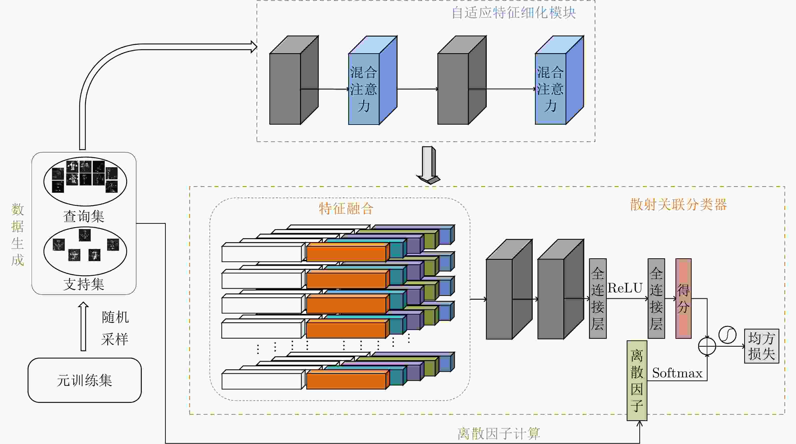 设置 5-way 5-shot 5-way 1-shot 支持集 查询集 支持集 查询集 元训练 5 15 1 15 元测试 5 15 1 15 表 2 自适应特征细化模块和散射关联分类器的消融实验