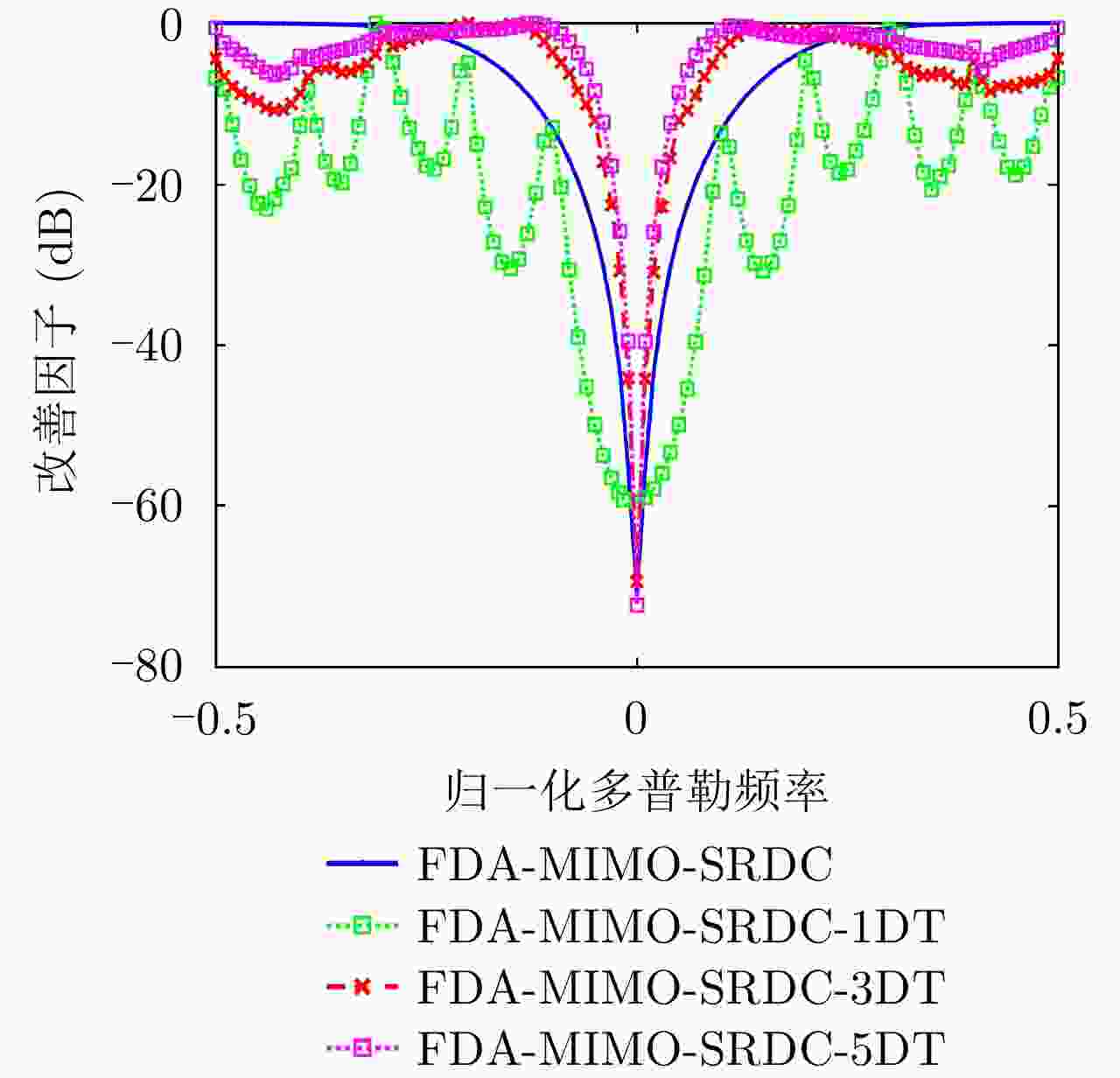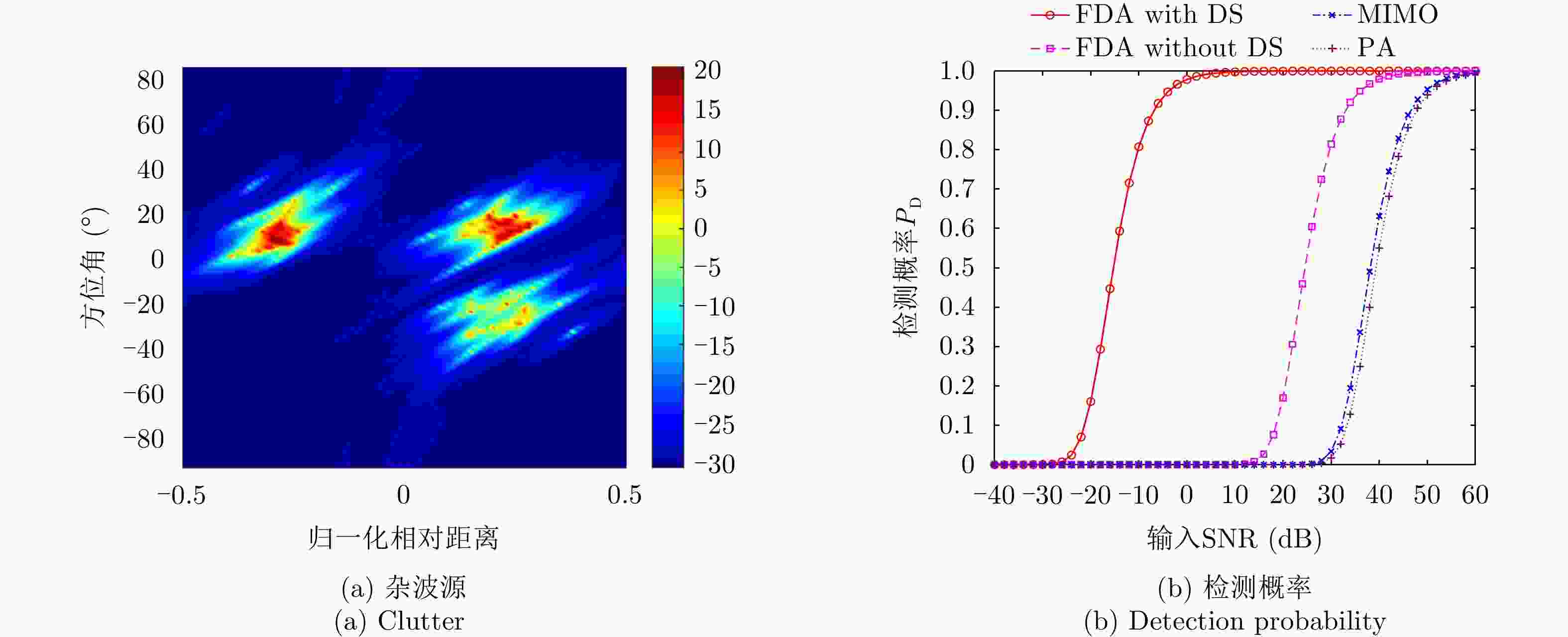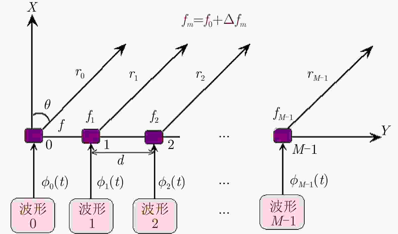 雷达类型 基带波形 发射信号 阵列增益 发射阵列方向图 距离依赖性 方位角依赖性 频控阵雷达 相同波形 相干 有 有 有 FDA-MIMO雷达 正交波形 非相干 无 有 有 相控阵雷达 相同波形 相干 有 无 有 OFDM雷达 正交子载波 非相干 无 无 无 MIMO雷达 正交波形 非相干 无 无 有 步进频雷达 频谱不重叠 非相干 无 无 无 -