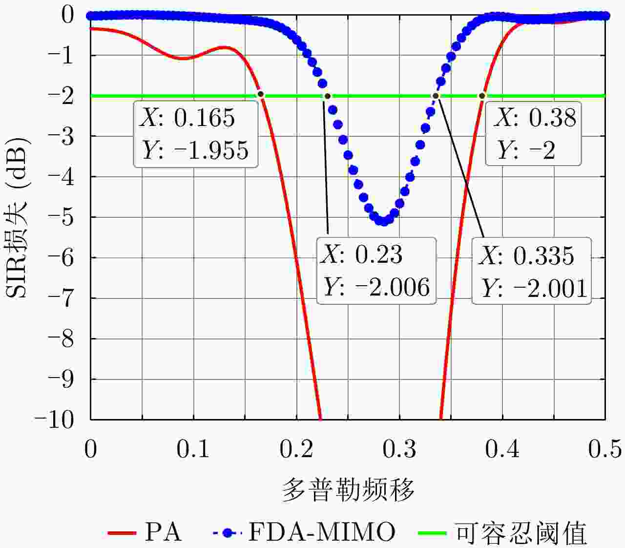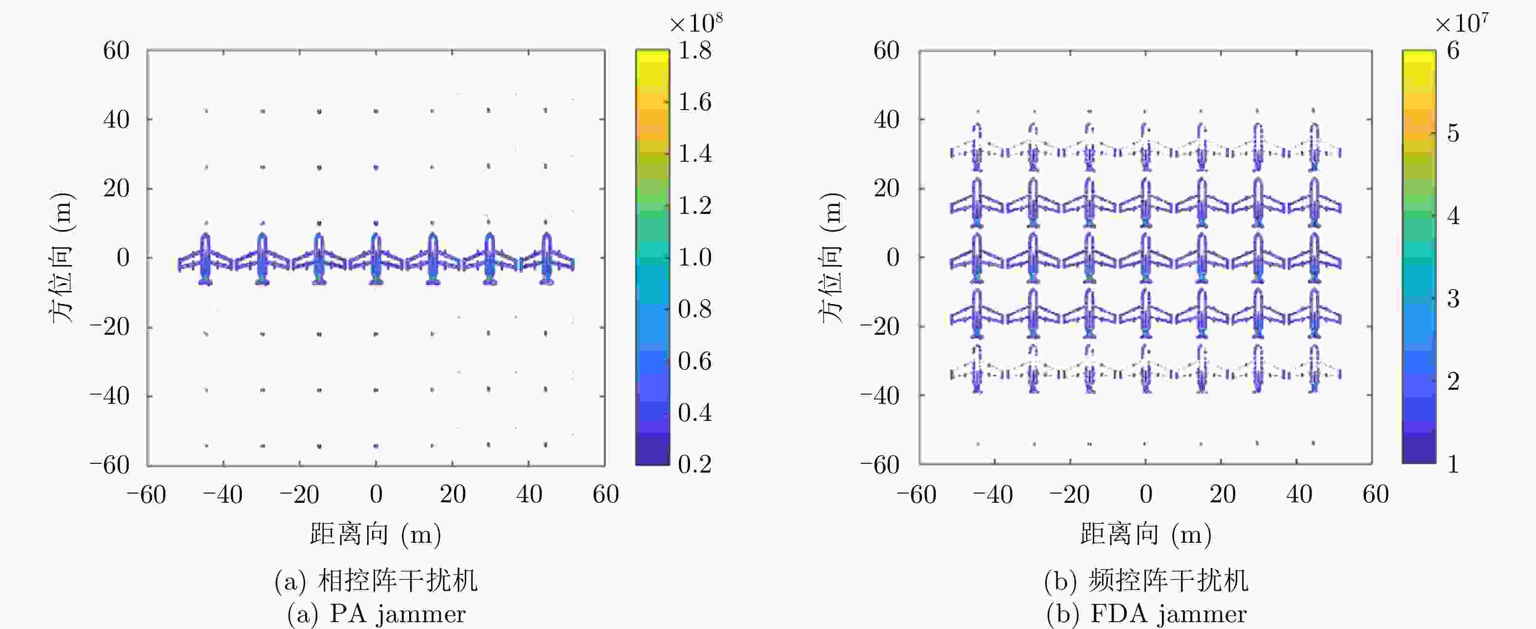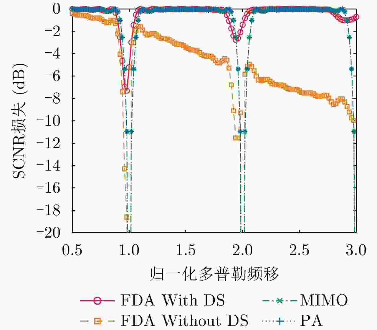 雷达类型 基带波形 发射信号 阵列增益 发射阵列方向图 距离依赖性 方位角依赖性 频控阵雷达 相同波形 相干 有 有 有 FDA-MIMO雷达 正交波形 非相干 无 有 有 相控阵雷达 相同波形 相干 有 无 有 OFDM雷达 正交子载波 非相干 无 无 无 MIMO雷达 正交波形 非相干 无 无 有 步进频雷达 频谱不重叠 非相干 无 无 无 -