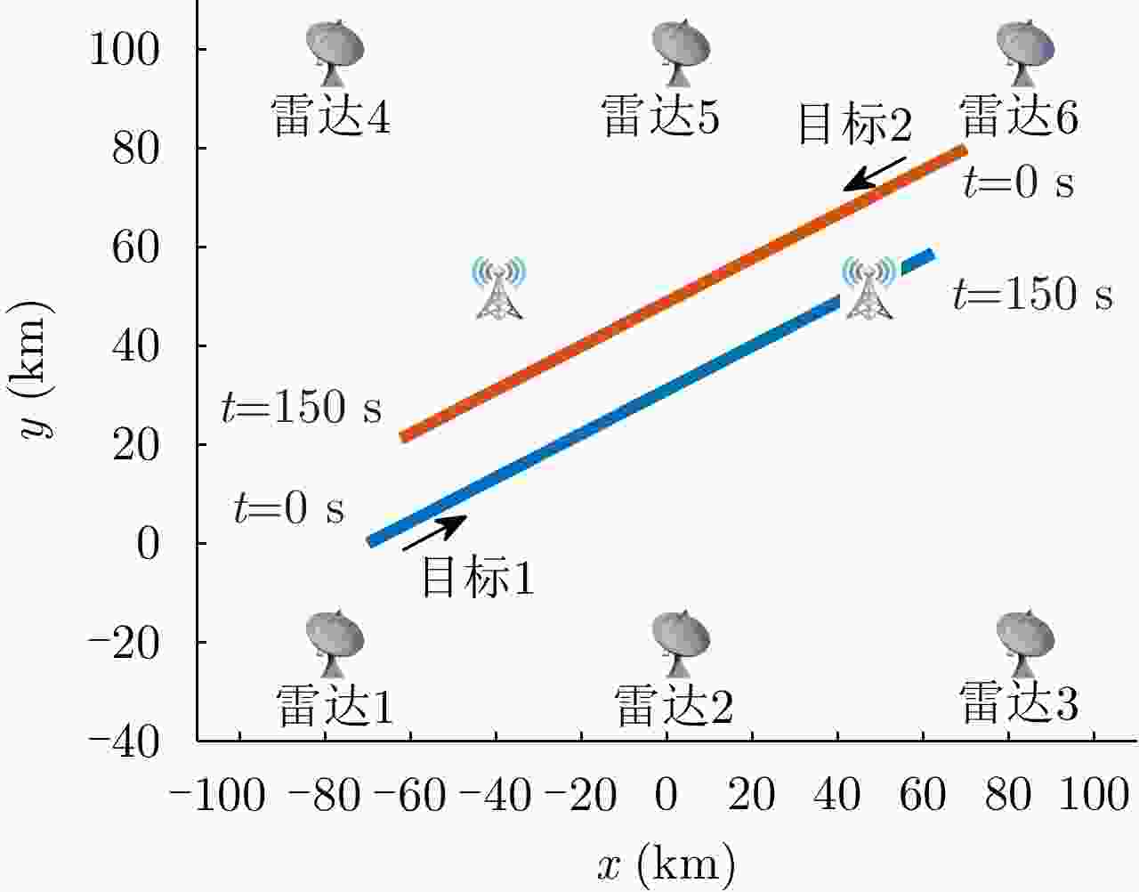 摘要: 该文针对频谱共存环境下多目标跟踪资源分配问题,提出了组网雷达功率时间联合优化算法。首先,推导了包含雷达节点选择、发射功率和驻留时间等射频辐射参数的预测贝叶斯克拉默-拉奥下界(BCRLB),以此作为多目标跟踪精度的衡量指标;在此基础上,以最小化多目标跟踪BCRLB为优化目标,以满足给定的组网雷达射频资源和预先设定的通信基站最大可容忍干扰能量阈值为约束条件,建立了频谱共存下面向多目标跟踪的组网雷达功率时间联合优化分配模型,对雷达节点选择、发射功率和驻留时间进行自适应联合优化配置;然后,针对上述优化问题,采用两步分解法将其分解为多个子凸问题,并结合半正定规划(SDP)算法和循环最小化算法进行求解。仿真结果表明,与现有算法相比,所提算法能够在保证通信基站正常工作的条件下,有效提高组网雷达的多目标跟踪精度。Abstract: For the resource allocation problem of multitarget tracking in a spectral coexistence environment, this study proposes a joint transmit power and dwell time allocation algorithm for radar networks. First, the predicted Bayesian Cramér-Rao Lower Bound (BCRLB) with the variables of radar node selection, transmit power and dwell time is derived as the performance metric for multi-target tracking accuracy. On this basis, a joint optimization model of transmit power and dwell time allocation for multitarget tracking in radar networks under spectral coexistence is built to collaboratively optimize the radar node selection, transmit power and dwell time of radar networks, This joint optimization model aims to minimize the multitarget tracking BCRLB while satisfying the given transmit resources of radar networks and the predetermined maximum allowable interference energy threshold of the communication base station. Subsequently, for the aforementioned optimization problem, a two-step decomposition method is used to decompose it into multiple subconvex problems, which are solved by combining the Semi-Definite Programming (SDP) and cyclic minimization algorithms. The simulation results showed that, compared with the existing algorithms, the proposed algorithm can effectively improve the multitarget tracking accuracy of radar networks while ensuring that the communication base station works properly.