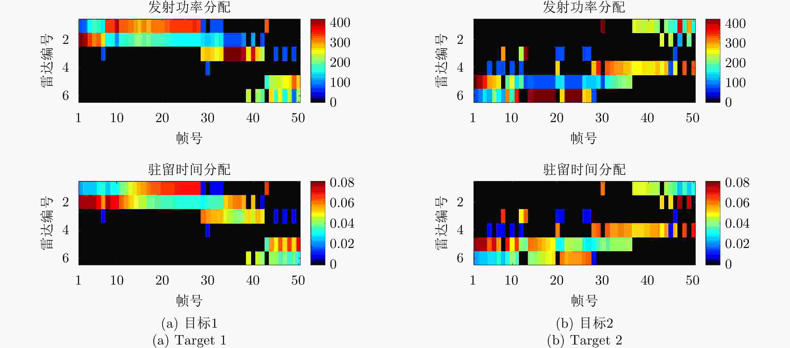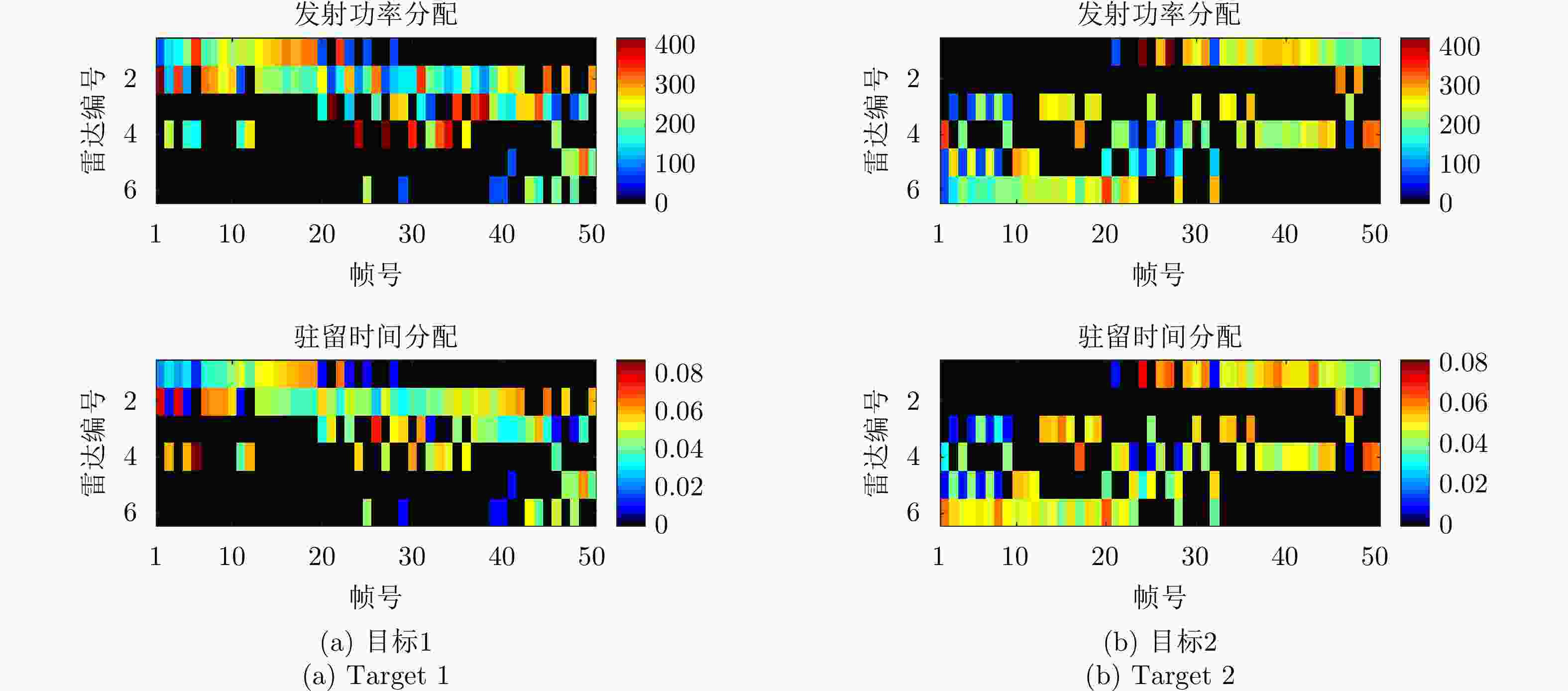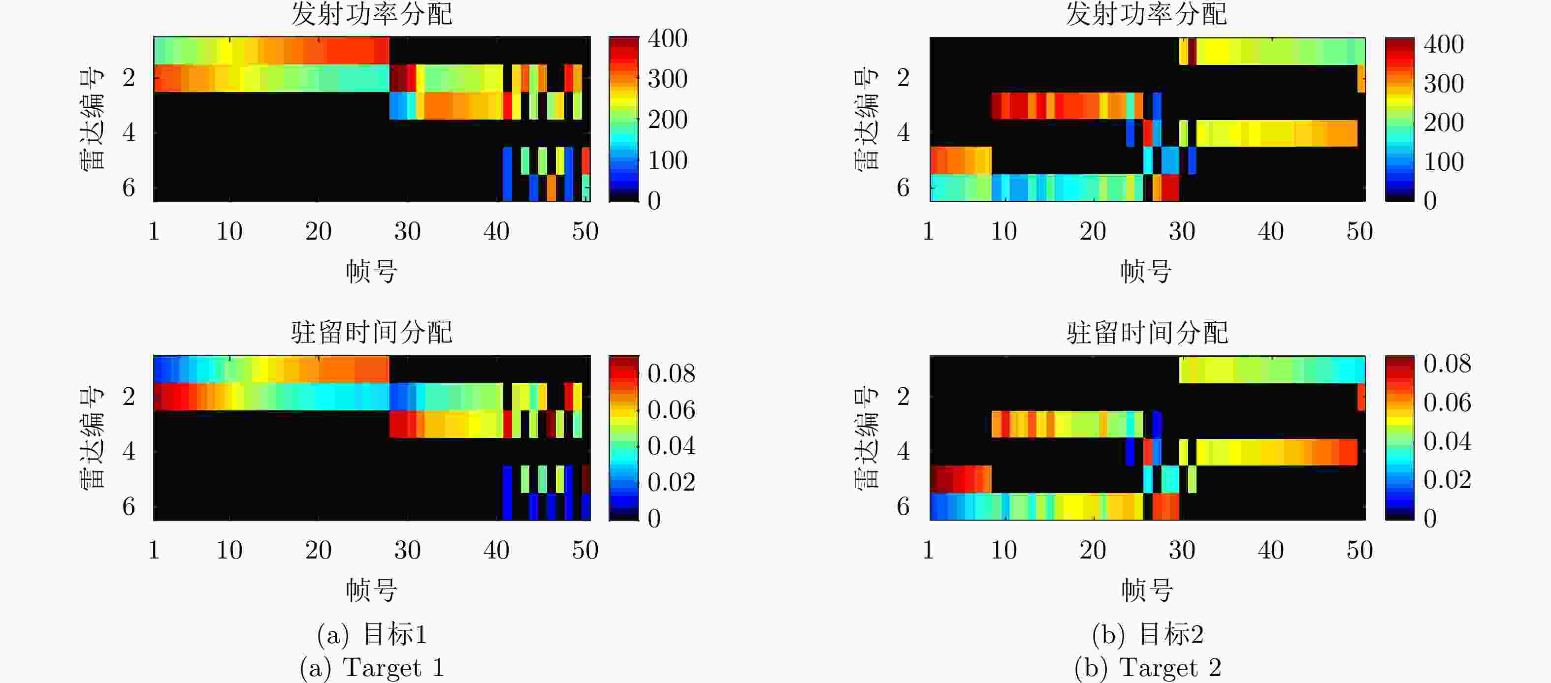 $ {\boldsymbol{P}}_{k,s}^q $、驻留时间$ {\boldsymbol{T}}_{k,s}^q $以及目标跟踪误差$ \Im _{k,s}^q $;步骤3 选取步骤2所有方案中的最小跟踪误差$ \Im _k^q $及其对应雷达节