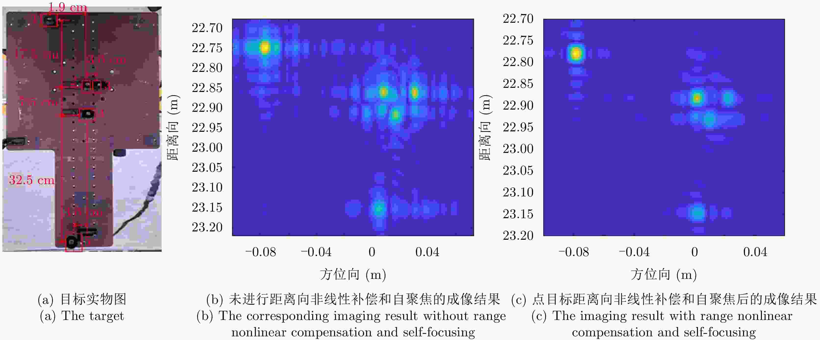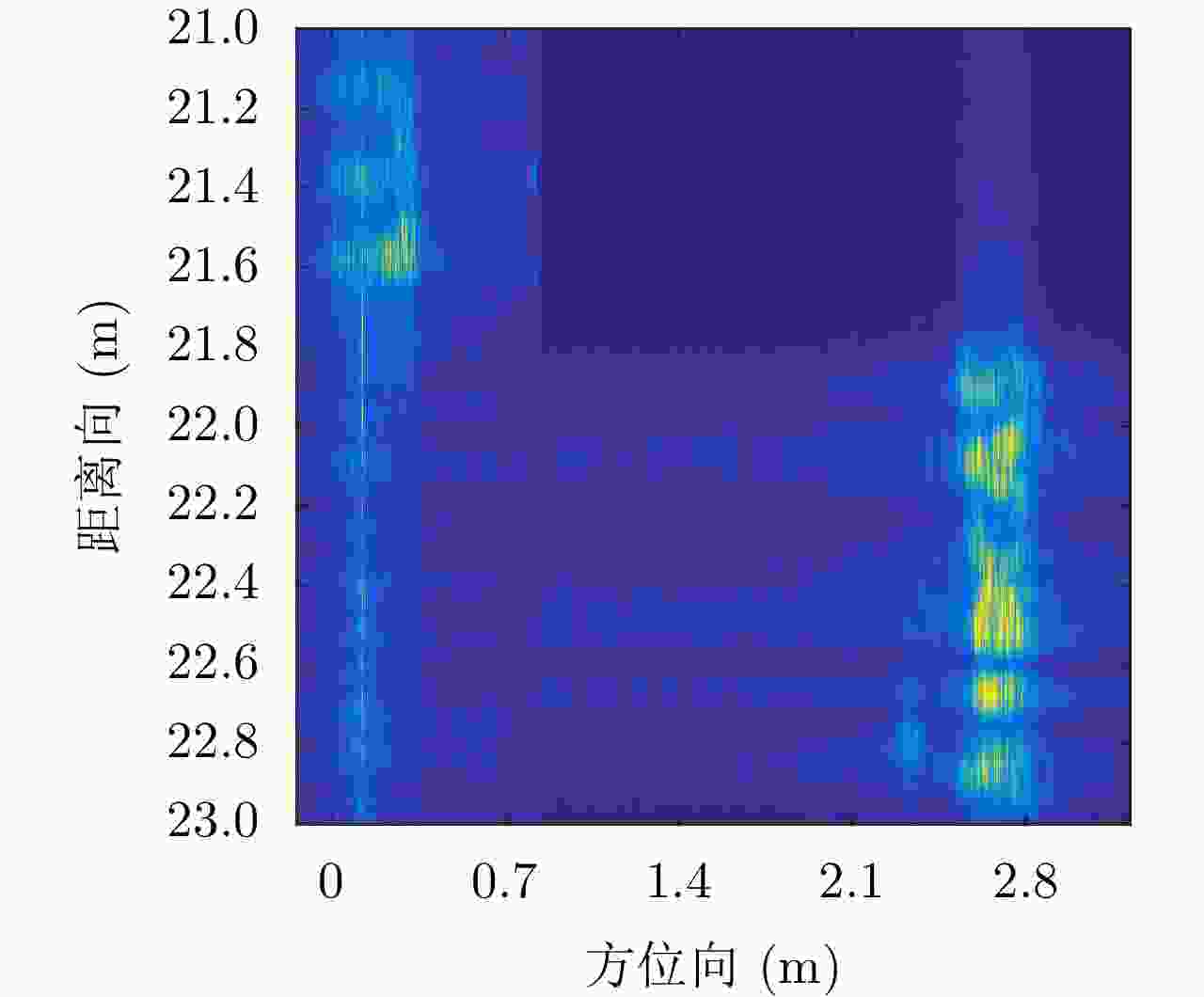 序号 距离向分辨率(cm) 距离向PSLR 方位向分辨率(cm) 方位向PSLR 点目标1 2.79 –13.35 0.68 –18.96 点目标2 2.70 –13.97 0.65 –11.39 点目标3 2.79 –14.55 0.63 –9.47 点目标4 2.88 –14.39 0.69 –5.21 点目标5 2.79 –12.98 0.81 –12.75 -