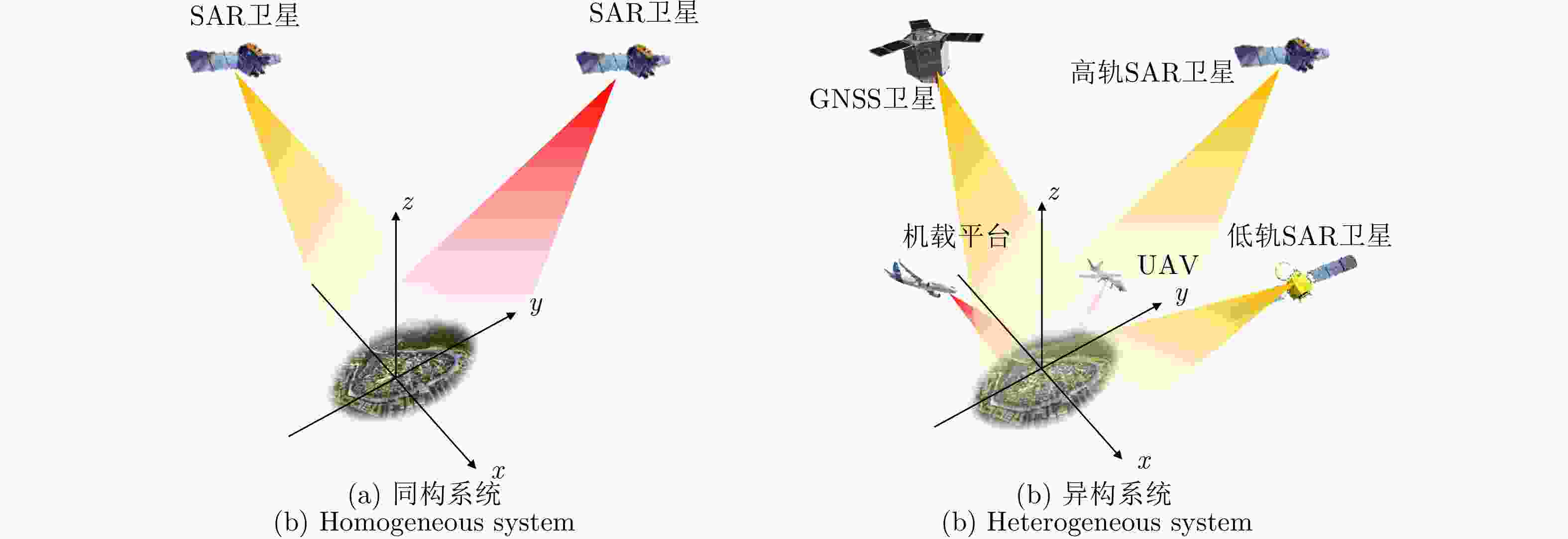 摘要: 星源照射双/多基地合成孔径雷达(SAR),采用卫星发射,卫星、临近空间、飞机、地面等平台接收,实现对地海面场景和目标的高分辨成像。该技术具有可成像范围广、隐蔽性好、抗干扰能力强等优点,且可以通过波束调控实现扫描、聚束、滑动聚束等多种组合成像模式,从而获取更加丰富的成像信息,具有十分广阔的民用和军事应用前景。目前,国内外针对星源照射双/多基地SAR成像技术开展了多年的研究,积累了诸多研究成果。该文分别从系统组成、构型方法、回波模型、成像方法、收发同步与试验验证等方面对该技术进行阐述与分析,同时对相关的研究工作进行较系统的回顾,并展望了星源照射双/多基地SAR成像技术未来的发展方向。Abstract: Bi/multistatic Synthetic Aperture Radar (SAR) using spaceborne illuminator utilizes spaceborne platforms as transmitters and satellites, near-space vehicles, aircraft, and ground platforms as receivers, which allows high-resolution imaging of ground and marine scenes and targets. The system’s benefits include a broad imaging field of view, high concealment, and potent antijamming abilities. By using beam steering methods, a variety of imaging modes can be achieved, such as staring spotlight and sliding spotlight modes, which obtain abundant information about the imaging scene and offer broad application prospects both in civil and military fields. Thus far, the bi/multistatic SAR using spaceborne illuminator has been intensively investigated, and several research findings have been reported. This paper examines the technology from the aspects of system components, configuration design, echo model, imaging techniques, bistatic synchronization, and experimental verification and systematically reviews the state-of-the-art research progress. Finally, it is anticipated that spaceborne illuminator technology will be used to develop bi/multistatic SAR in the future.
