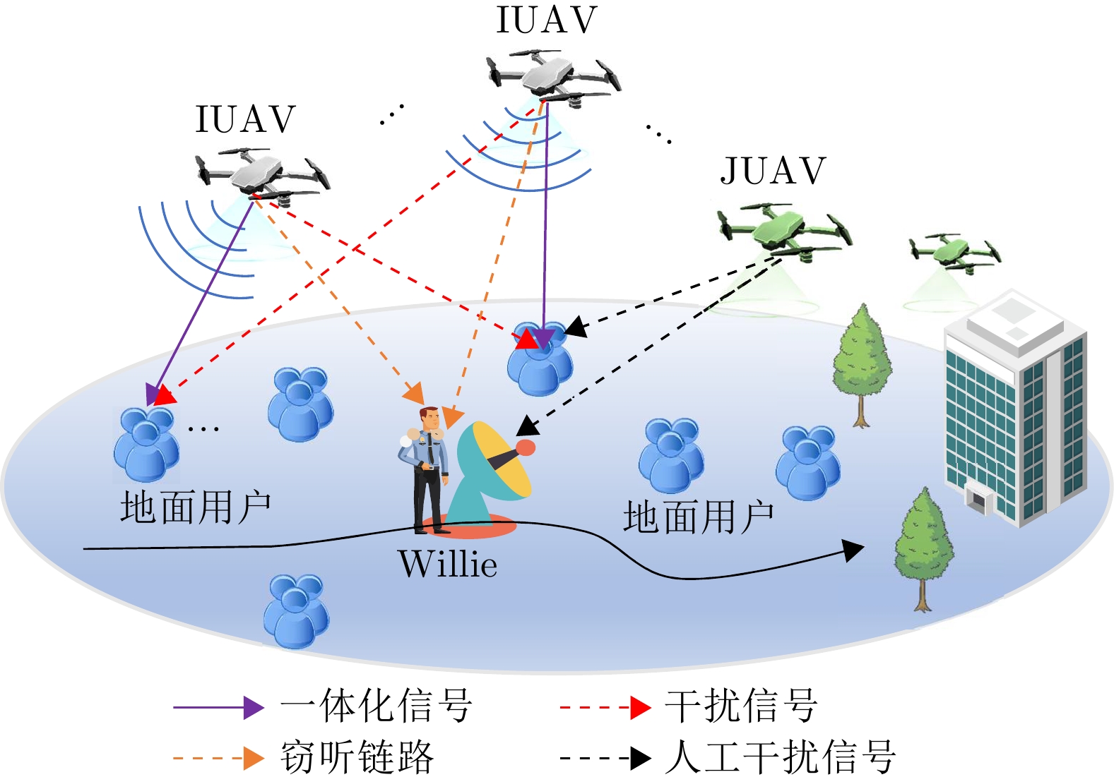 摘要: 无人机隐蔽通信在实现可持续低空经济方面引起了相当大的关注。该文基于通感一体化(ISAC)框架,研究了多无人机协作隐蔽通信网络的系统策略和资源分配,其中多个无人机进行协作感知并在移动监管者(Willie)存在的情况下同时向多个地面用户(GUs)隐蔽传输下行信息。为了提高通信隐蔽性,无人机在干扰无人机(JUAV)模式和信息无人机(IUAV)模式之间自适应切换。为了应对Willie的移动性,采用基于无迹卡尔曼滤波的方法,利用从ISAC回波中提取的时延和多普勒频移来预测和跟踪Willie的位置。通过联合优化JUAV选择策略、IUAV-GU调度、通信/干扰功率分配,该文提出了一个实时公平性传输最大化问题。采用交替优化方法,将原始问题分解为一系列子问题,从而获得有效的次优解。仿真结果表明,所提出的方案能够准确跟踪Willie并有效保证下行隐蔽传输。Abstract: Covert Unmanned Aerial Vehicle (UAV) communication has garnered considerable attention for realizing a sustainable Low-Altitude Economy (LAE). Based on the Integrated Sensing And Communication (ISAC) framework, this paper studies the system strategies and resource allocation for a cooperative multi-UAV covert communication network, where multiple UAVs are employed to simultaneously conduct cooperative sensing and covert downlink transmissions to multiple Ground Users (GUs) in the presence of a mobile warden (Willie). To improve communication covertness, UAVs adaptively switch between Jamming Unmanned Aerial Vehicle (JUAV) mode and Information Unmanned Aerial Vehicle (IUAV) mode. To cope with the mobility of Willie, an Unscented Kalman Filtering (UKF)-based method is employed to track and predict Willie's location using delay and Doppler measurements extracted from ISAC echoes. By jointly optimizing the JUAV selection strategy, IUAV-GU scheduling, and communication/jamming power allocation, a real-time fairness transmission maximization problem is formulated. The Alternating Optimization (AO) approach is adopted to decompose the original problem into a series of sub-problems, resulting in an efficient sub-optimal solution. Simulation results demonstrate that the proposed scheme can accurately track Willie and effectively ensure covert downlink transmission.