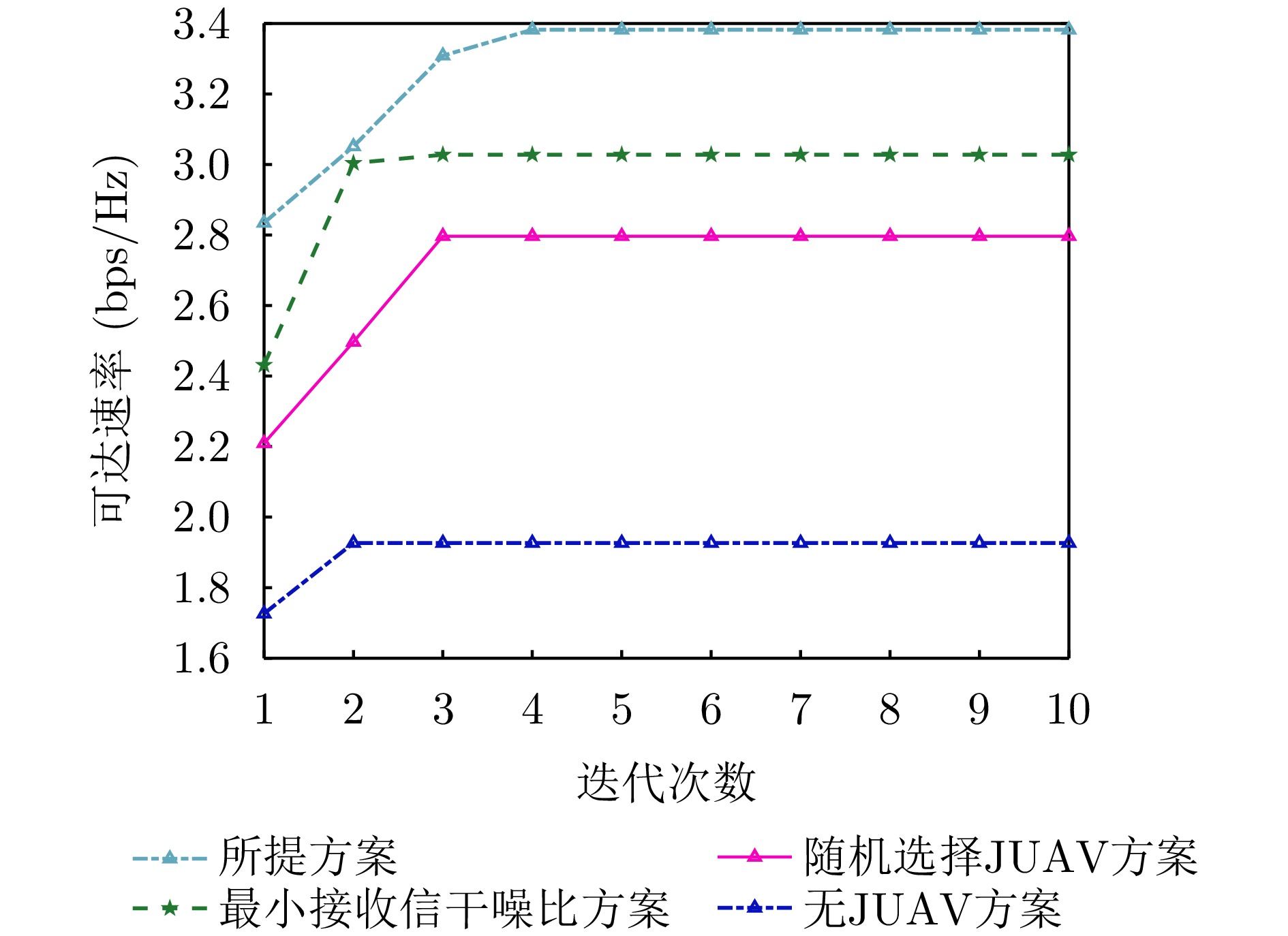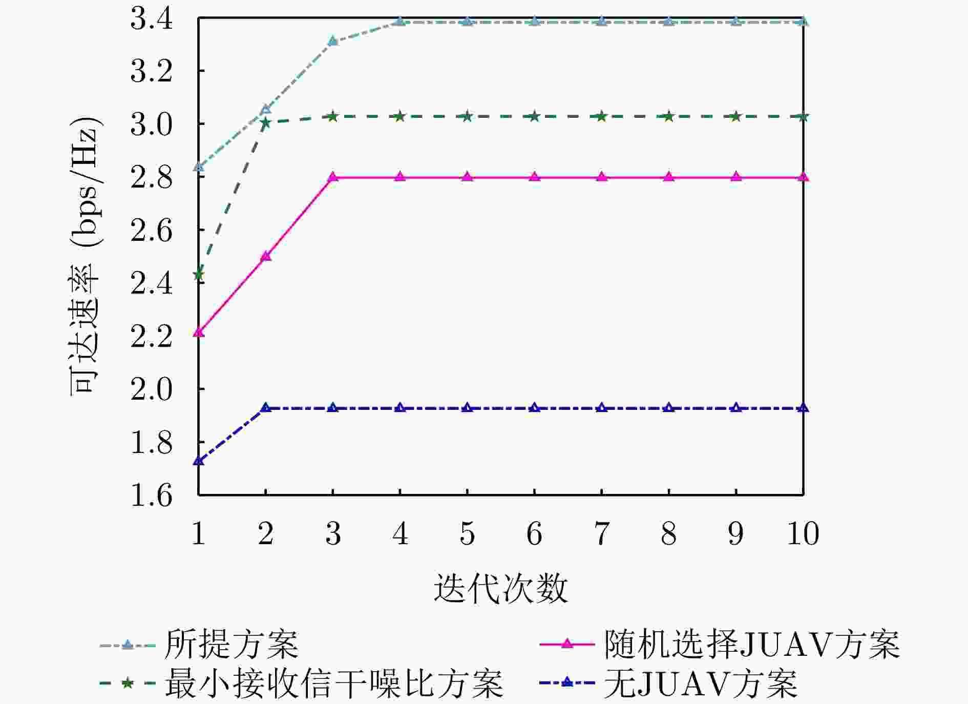为$\left\{ {{\mathcal{B}^*},{\mathcal{P}^{J,*}},{{\tilde {\mathcal{P}}}^{J,*}},{\mu ^*}} \right\}$2.令$\left\{ {{\mathcal{B}^{{r_1}}},{\mathcal{P}^{J,{r_1}}},{{\tilde {\mathcal{P}}}^{J,{r_1}}},{\mu ^{{r_1}}}} \right\} = \left\{ {{\mathcal{B}^*},{\mathcal{P}^{J,*}},{{\tilde {\mathcal{P}}}^{J,*}},{\mu ^*}} \right\}$ 3.更新 ${\kappa ^{{r_1} + 1}} = \min \{ {a_0}{\kappa ^{{r_1}}},{\kappa _{\max }}\} $ 4.更新 ${r_1} = {r_1} + 1$ 5.重复上述步骤直到收敛 2 多无人机隐蔽通信总体设计算法