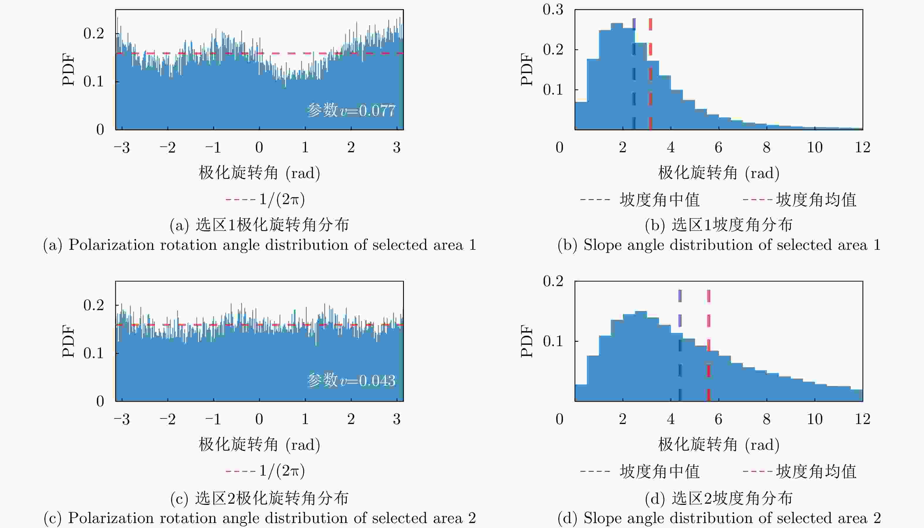 摘要: 嫦娥七号将搭载全极化合成孔径雷达,对月球极区地形与物质特性开展探测。极化合成孔径雷达要求极化定标,而传统地面定标方法在月球探测任务中难以应用,需要发展新的月面极化相对定标方法。针对月表相对定标问题,该文采用垂直观测,分析同极化比$ {\sigma _{{\text{HH}}}} $/$ {\sigma _{{\text{VV}}}} $,HH和VV相位差与斜坡间关系,提出参数v衡量极化旋转角分布均匀性并用于筛选月球定标场。仿真实验表明,极化旋转角越均匀,极化比分布越趋于1,相位差分布越趋近于0°。该文结合粗糙面电磁散射回波和月船二号实测数据,建立统计模型约束下的定标所需最小观测次数估算方法,为月球极化SAR系统的相对定标提供了理论依据和技术路径。Abstract: Chang’e-7 will carry a fully polarimetric Synthetic Aperture Radar (SAR) to investigate the topography and material properties of the lunar polar regions, which necessitates reliable polarimetric calibration. However, conventional ground-based calibration strategies are infeasible for lunar missions, underscoring the need for new relative polarimetric calibration methods tailored to the lunar surface. To address this challenge, we adopt a normal-incidence observation geometry and analyze how the co-polarization ratio $ {\sigma _{{\text{HH}}}} $/$ {\sigma _{{\text{VV}}}} $ and the HH-VV phase difference vary with local slope, where $ \sigma $ denotes the backscattering coefficients. H and V represent horizontal and vertical polarizations, respectively. We introduce a parameter v to quantify the uniformity of the polarization orientation angle distribution and use it to identify suitable lunar calibration sites. Simulation results show that, as terrain slopes become more uniform, the copolarization ratio distribution converges toward unity and the phase difference distribution approaches 0°. Combining rough-surface electromagnetic scattering simulations with Chandrayaan-2 polarimetric observations, we further develop a statistically constrained estimator for determining the minimum number of observations required for robust calibration. This work provides both a theoretical basis and a practical pathway for achieving relative calibration of lunar polarimetric SAR systems.