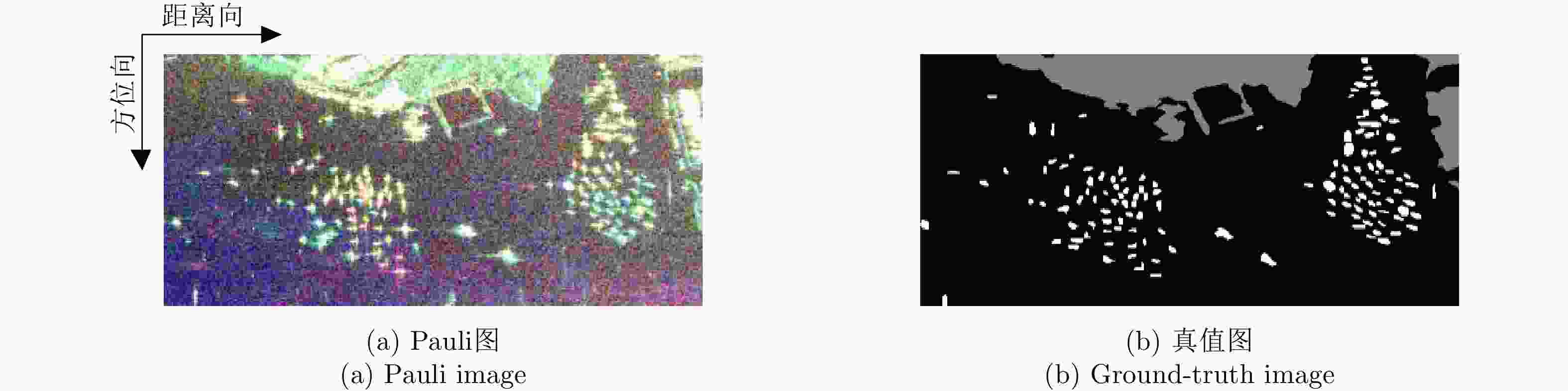 方法 ${N_{\rm{C}}}$ ${N_{\rm{M}}}$ ${N_{{\rm{FA}}}}$ FoM (%) SO-CFAR方法[38] 126 11 0 91.97 迭代CA-CFAR方法[40] 114 23 0 83.21 显著性方法[12] 116 21 0 84.67 SPAN+超像素 133 4 0 97.08 ${\left| { {\gamma _{ {\rm{HH\text{-}HV} } } }(\theta )} \right|_{ {\rm{org} } } }$+超像素 136 1 0 99.27 ${\left| { {\gamma _{ {\rm{(HH-VV)\text{-}(HV)} } } }(\theta )} \right|_{ {\rm{min} } } }$+超像素 135 2 3 96.43 ${\left| { {\gamma _{ {\rm{(HH-VV)\text{-} (HV)} } } }(\theta )} \right|_{ {\rm{org} } } }$+超像素 136 1 1 98.55 多特征融合+超像素 135 2 1 97.83 表 2 高分三号数据I定量检测结果