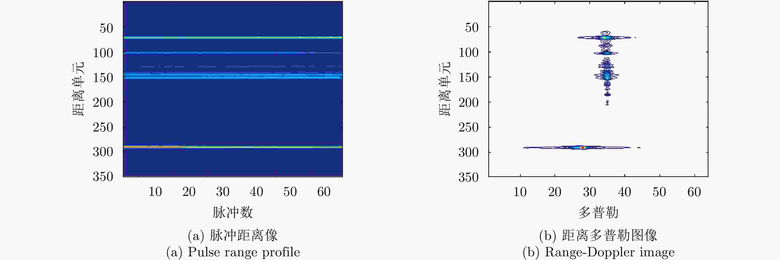 最后一个距离单元序号散射重心 ${\text{SM} } = \left(\left(\displaystyle\sum\limits_{n = {n_1} }^{ {n_2} } {n \cdot x(n)} \Bigr/ \displaystyle\sum\limits_{n = {n_1} }^{ {n_2} } {x(n)} \right) - {n_1}\right) \Bigr/ ({n_2} - {n_1})$ $ x(n) $为目标距离单元幅值 散射中心数目 $ {\text{NP}} = \displaystyle\sum\limits_{{n_1}}^{{n_2}} {u(n)} $ $ u(n) $为散射中心标记 最强散射中心间距离 $ {\text{DPK}} = \Delta d \cdot \left| {{m_1} - {m_2}} \right| $ $ {m_1} $和$ {m_2} $为最强的两个散射中心对应的序号 最强散射中心距目标