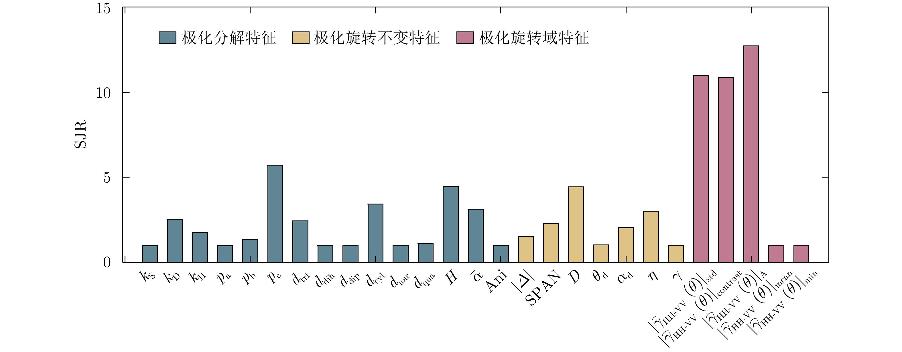 角反鉴别冲淡干扰[99,100,132] 具有较强的物理可解释性 存在散射机理解译失真 基于极化旋转不变量