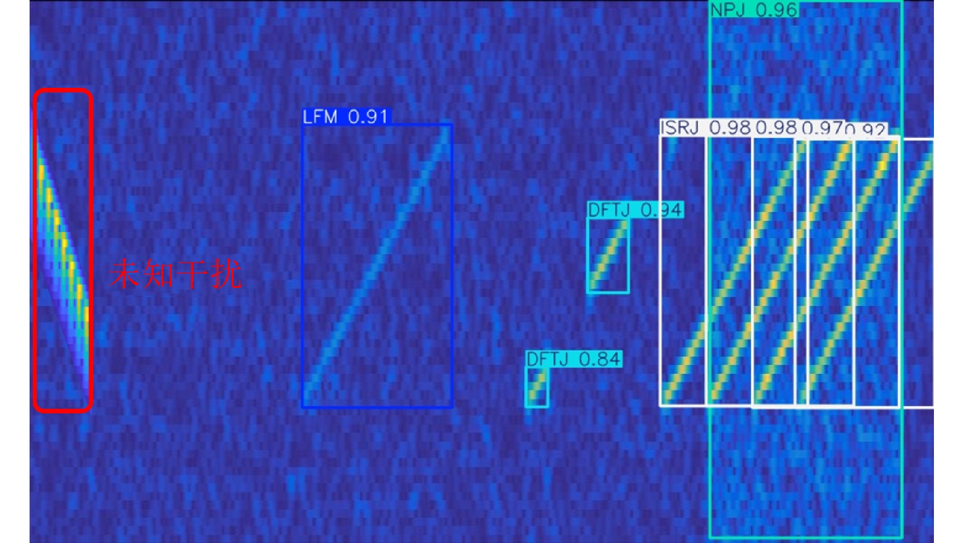 为提高雷达在复杂电磁环境下的干扰识别能力,该文提出一种具备智能化、轻量化以及高实时性3项主要特性的轻量化复合干扰信号识别网络YOLO-S3。首先,提出利用视觉检测算法对雷达干扰的二维时频数据进行识别的技术路线,并基于信号建模仿真技术和短时傅里叶变换构建复合干扰信号图像数据集。其次,通过引入StarNet和SlimNeck重构YOLOv8n的主干及颈部网络,同时设计具有自注意力机制的检测头(SADH),在保证识别精度的同时实现了网络轻量化。最后,通过消融实验和对比实验验证了网络性能。实验结果表明,YOLO-S3具有最轻量化的网络设计。在信干比–10~0 dB范围内随机分布的条件下,当信噪比≥0 dB时,该网络的平均识别精度高达99.5%;当信噪比降至–10 dB时,仍可保持95.5%的平均识别精度,在低信噪比条件下表现出较好的鲁棒性和泛化能力。该文的研究成果为机载雷达信号处理器、便携式电子设备等资源受限平台的实时复合干扰信号识别提供了新的技术途径。