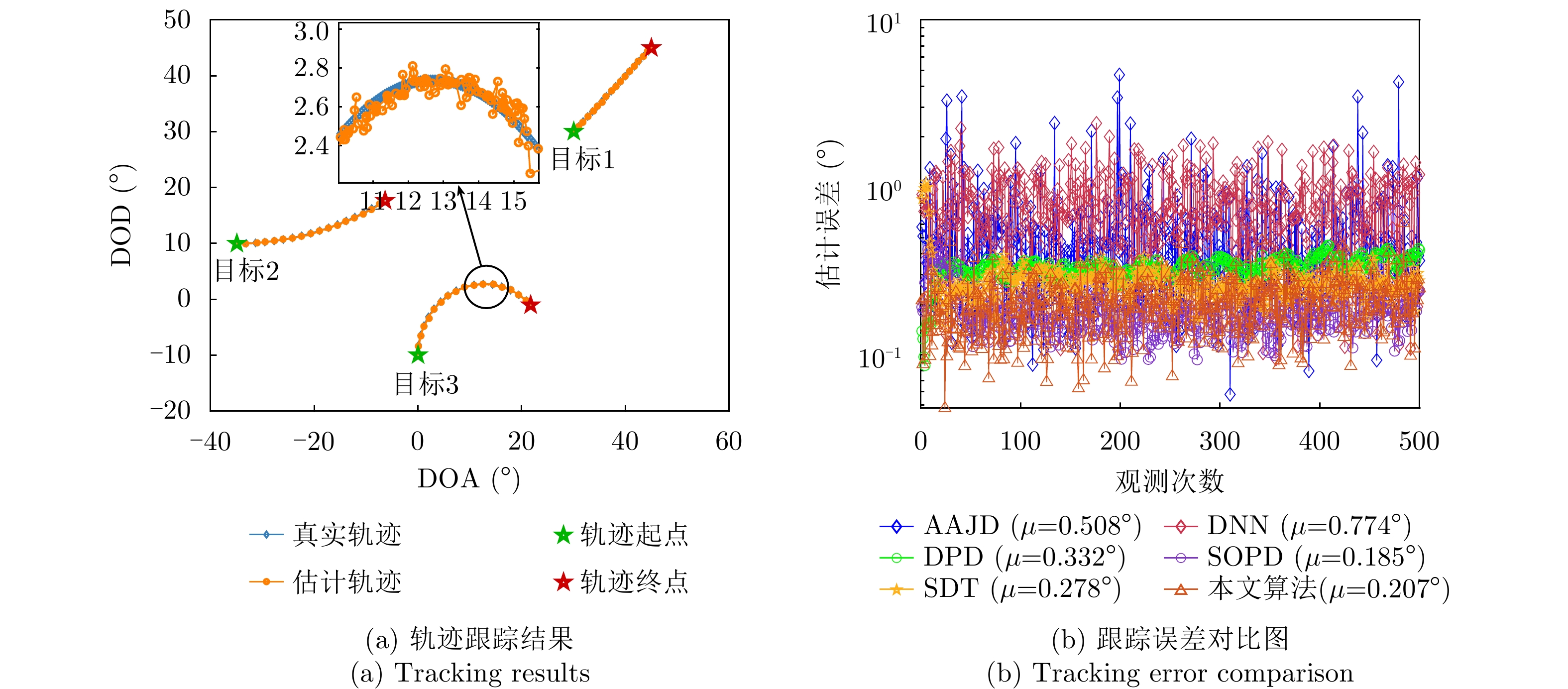 动目标跟踪是双基地多输入多输出(MIMO)雷达系统的核心任务之一,对提升系统的目标感知精度与动态响应能力具有重要意义。针对复杂场景下动目标跟踪性能易受状态变化、高维数据耦合等因素制约的问题,该文提出一种基于自适应张量分解(ATD)的动目标跟踪算法。首先建立包含运动目标波离方向(DOD)和波达方向(DOA)信息的三阶动态张量信号模型,以表征接收信号中时、空多维数据的时变结构。基于所建立动态张量模型,构建运动目标空间位置与张量因子矩阵间的映射关系,采用矩阵随机降维策略设计自适应因子矩阵更新机制,迭代分解包含目标状态信息的阵列流形矩阵,以实现对目标方向的实时稳健跟踪。最后,通过仿真实验分析所提算法的跟踪性能。仿真结果表明,所提算法在低信噪比(SNR)场景下可实现动目标轨迹的持续稳定跟踪。与传统动目标跟踪算法相比,所提算法在保证跟踪精度的同时降低了计算复杂度,跟踪运算时长可缩短1~2个数量级,满足双基地MIMO雷达系统对动目标的实时跟踪需求。