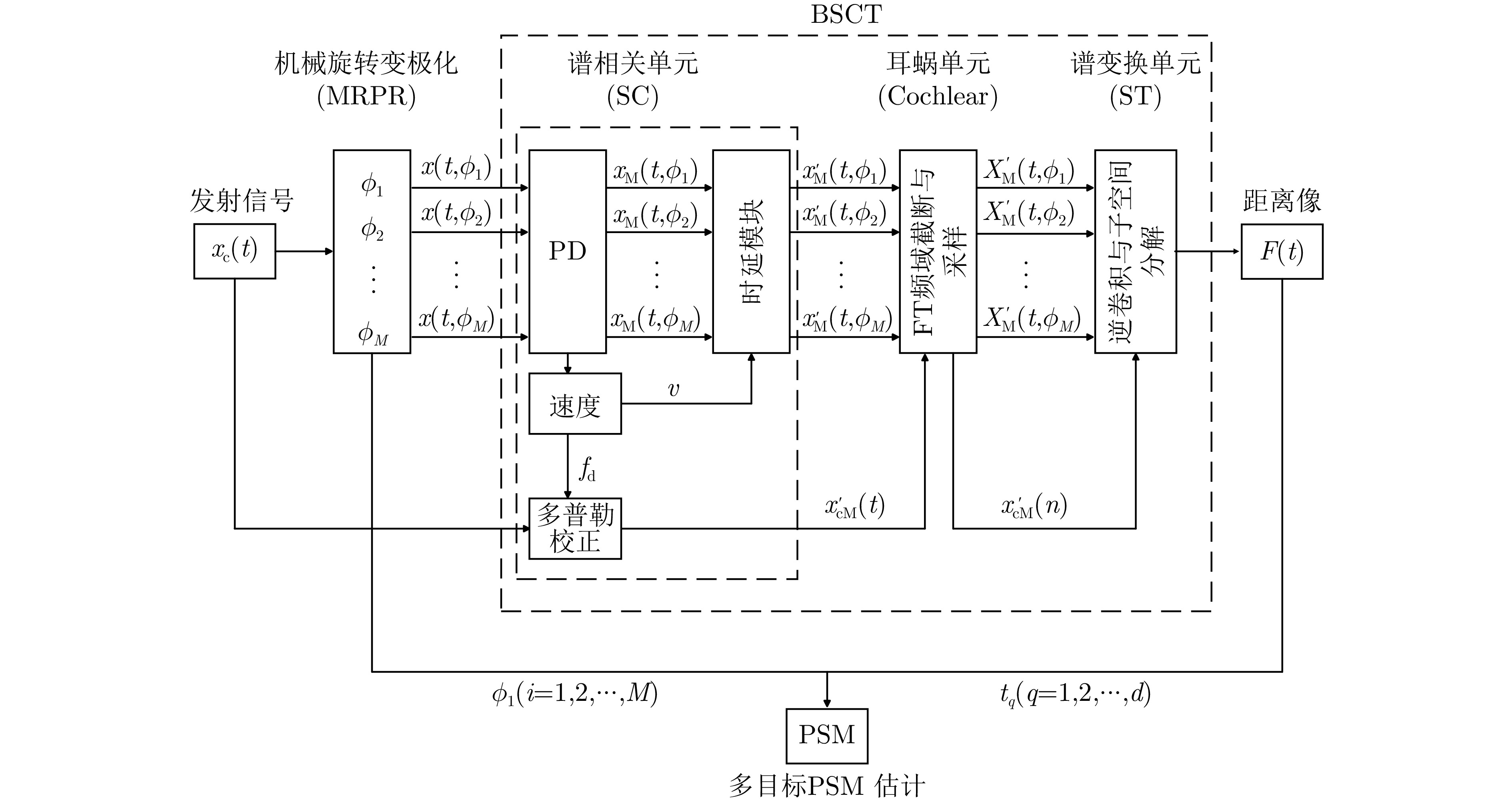 近年来,受生物感知机制启发的仿生超分辨技术已成为突破雷达分辨极限的重要研究方向。基于蝙蝠听觉的基带谱相关及变换(BSCT)模型为传统雷达分辨力提升提供了新思路,然而其存在多目标适应能力不足且无法利用极化信息的固有缺陷。针对上述问题,该文提出一种面向机械旋转变极化雷达(MRPR)的极化增强型仿生超分辨模型:极化基带谱相关及变换(P-BSCT)。主要贡献包括:一是将蝙蝠BSCT模型与MRPR结合,使之可以利用极化信息并进行极化测量;二是提出改进的信号处理方法,突破原BSCT对两目标、静态场景的限制,有效适用于多目标及运动目标场景,且分辨效果不受信号调制形式影响。仿真实验表明,在理想条件下,P-BSCT相较原BSCT模型带来约15 dB的分辨力提升;对于运动目标、极化散射特性相同的目标以及非线性调频信号等特殊场景,P-BSCT的分辨性能基本不受影响,具有较强的鲁棒性。