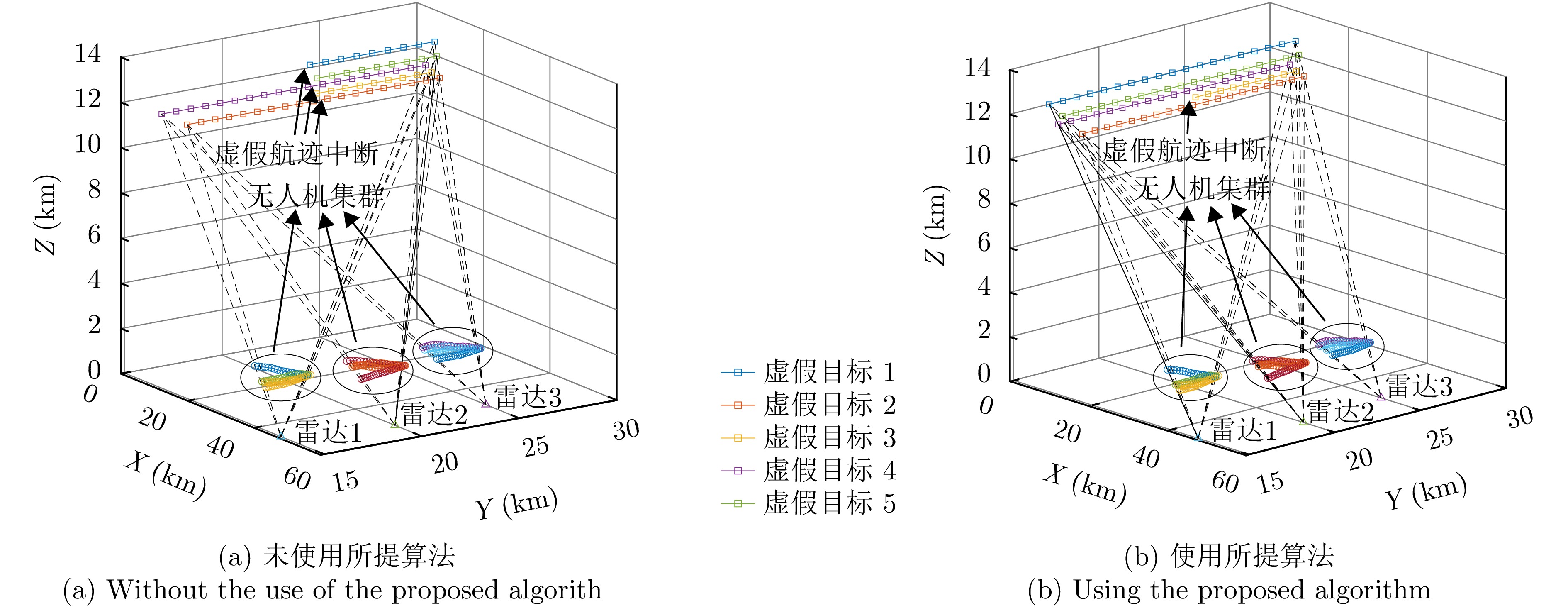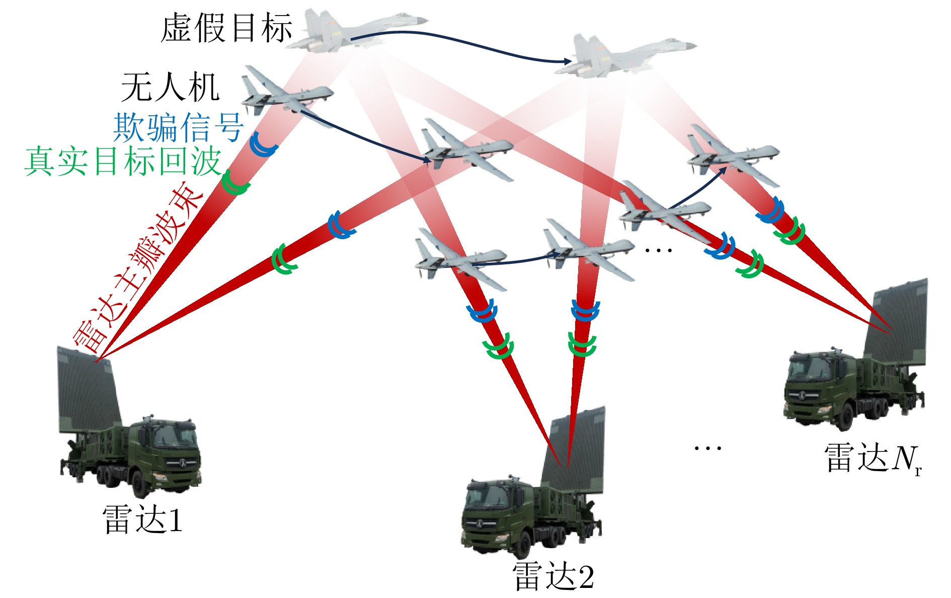 在日益复杂的电磁环境中,主被动雷达复合探测以其良好的优势互补性,已成为提升雷达作战能力和抗干扰能力的重要工作模式。传统的单一压制或欺骗类干扰方法仅对雷达主动或被动模式产生有效干扰,难以对主被动雷达复合探测产生良好的干扰效果。为了能够提高对主被动雷达复合探测的干扰能力,该文提出一种面向主被动雷达复合探测的全脉冲多机协同干扰方法,通过对雷达主动模式下目标的恒虚警率(CFAR)检测原理分析,利用雷达检测概率与信噪比的相关性,调整多假目标的功率序列及位置间距分布,构建全脉冲时域赋形隐蔽干扰模型,实现对雷达主动模式的有效压制;同时,通过对雷达被动模式的测向原理分析,提出一种基于多部干扰机的协同干扰策略,动态调整干扰机的发射功率,在多部干扰机间产生多个随机的欺骗角度,实现雷达被动模式的多角度欺骗效果;最后,通过上述两种策略的有机结合构建全脉冲多机协同干扰方法,实现对主被动雷达复合探测的有效干扰。实验结果表明,与传统单一压制或欺骗类干扰方法相比,该文所提全脉冲多机协同干扰方法能够有效提高雷达CFAR检测门限,降低雷达在主动模式下的检测概率;同时,在干扰机附近区域产生每一帧都不同的虚假角度,扩大角度欺骗范围,综合提升对主被动雷达复合探测的干扰性能。
