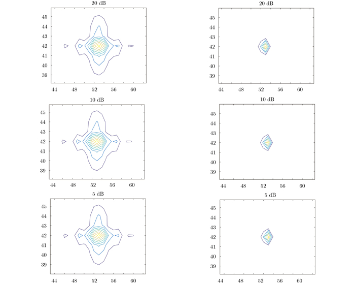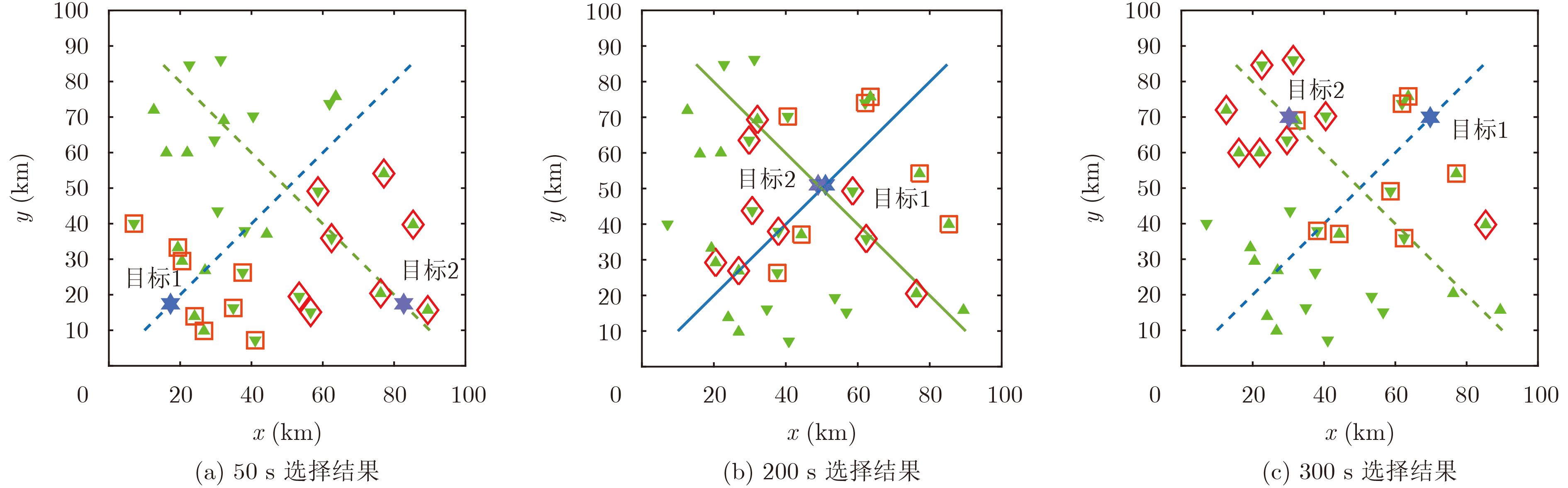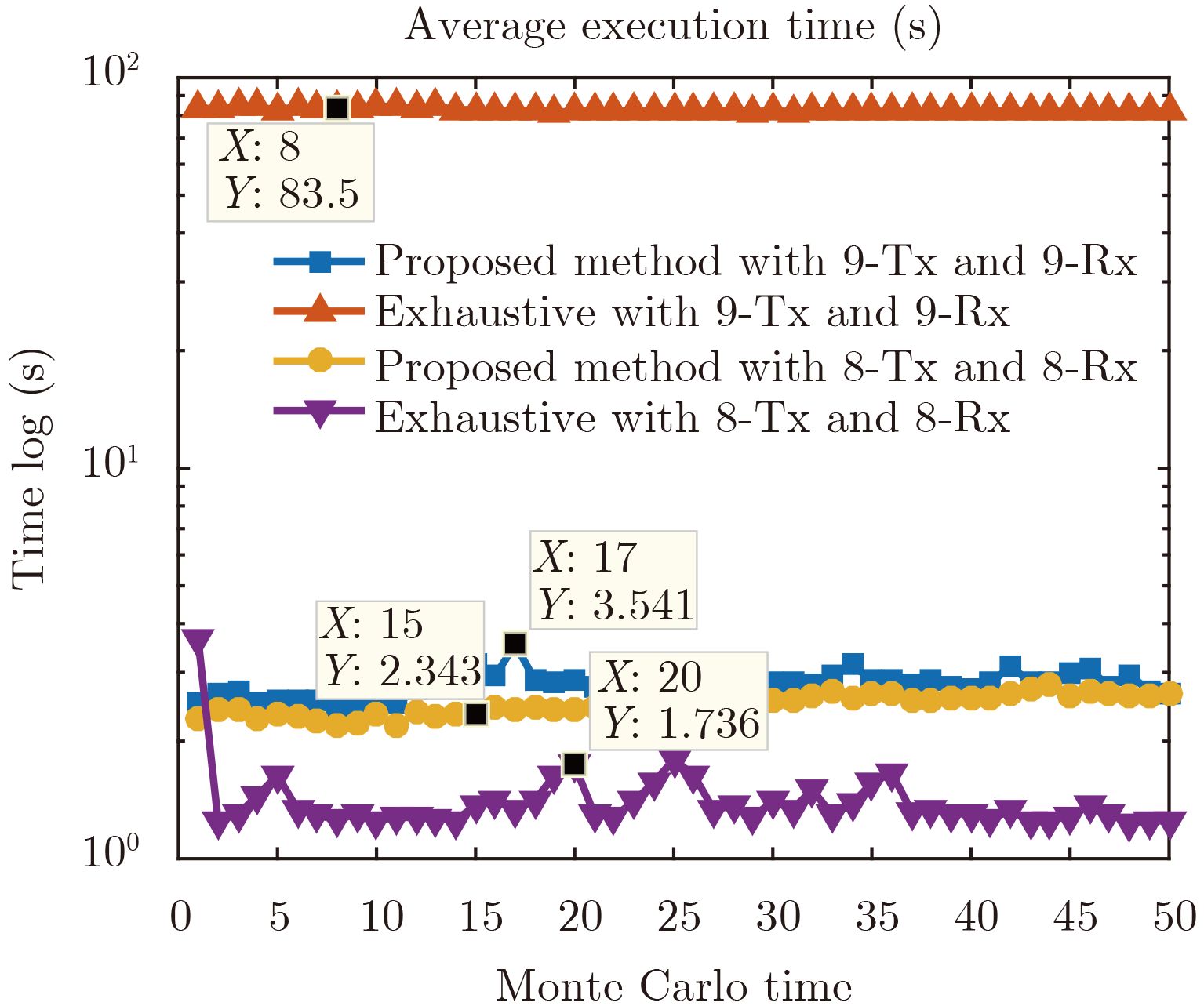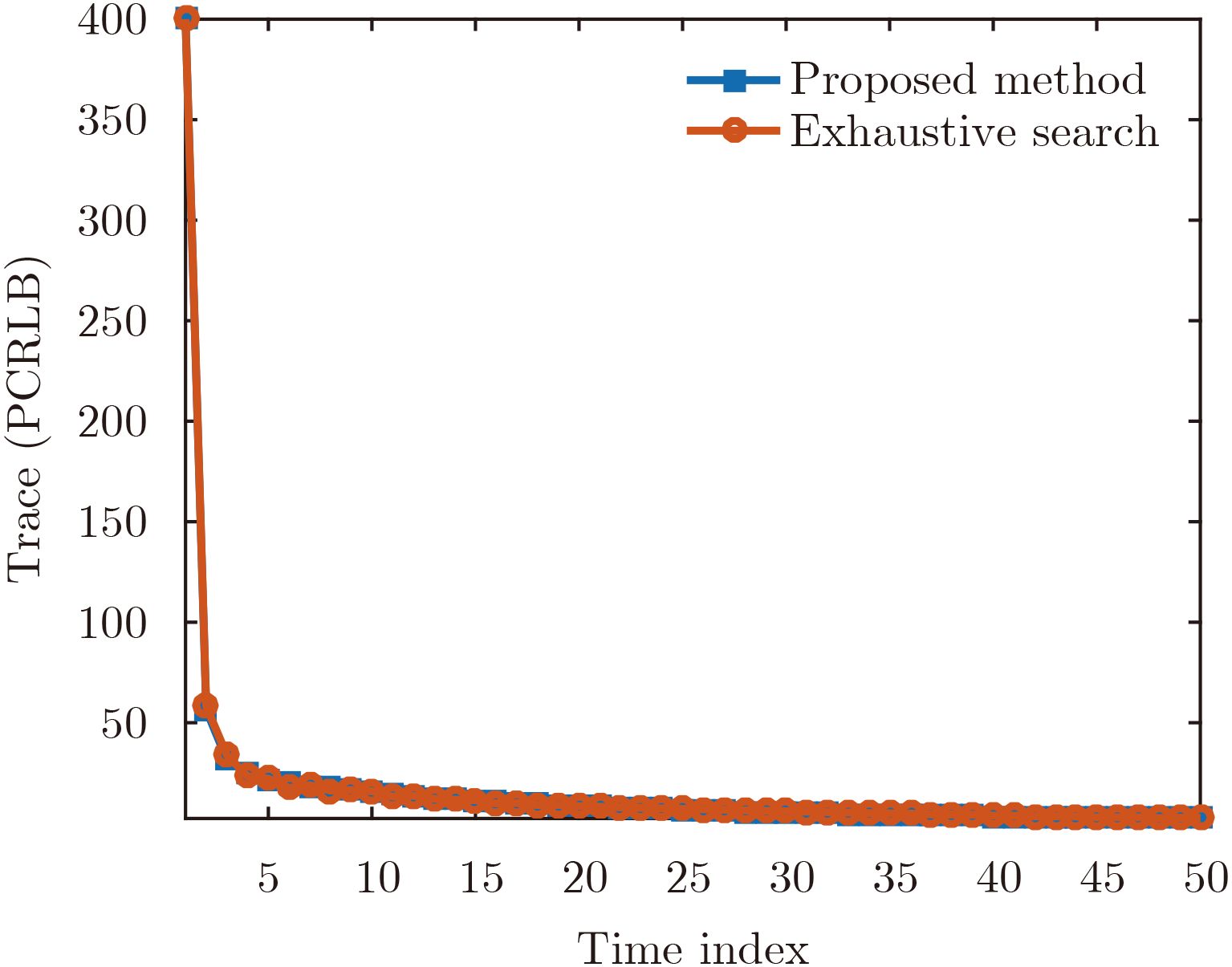 在分布式MIMO雷达网络场景下,由于MIMO雷达网络的时间能量资源限制,在同一时间下对某一目标,只允许采用有限数量的发射站和接收站来对其进行监视跟踪。因此需要寻求一种合理有效的方法在满足雷达网络发射站接收站数量约束的前提下尽可能高的提高对目标的跟踪性能。该文利用后验克拉美罗下界(PCRLB)作为性能指标,优化多目标跟踪情况下性能最差的目标构建为一个布尔规划问题(BP)。在将原问题松弛为半正定规划问题后(SDP)利用分块坐标下降迭代法取得联合选择的近似最优解。通过仿真实验,验证了该文提出的方法能够根据目标场景动态的规划选择所需的发射站和接收站。相比固定非动态选择拥有更好的性能。并且在拥有更小计算量的前提下获得了近似于穷举搜索的性能。 在分布式MIMO雷达网络场景下,由于MIMO雷达网络的时间能量资源限制,在同一时间下对某一目标,只允许采用有限数量的发射站和接收站来对其进行监视跟踪。因此需要寻求一种合理有效的方法在满足雷达网络发射站接收站数量约束的前提下尽可能高的提高对目标的跟踪性能。该文利用后验克拉美罗下界(PCRLB)作为性能指标,优化多目标跟踪情况下性能最差的目标构建为一个布尔规划问题(BP)。在将原问题松弛为半正定规划问题后(SDP)利用分块坐标下降迭代法取得联合选择的近似最优解。通过仿真实验,验证了该文提出的方法能够根据目标场景动态的规划选择所需的发射站和接收站。相比固定非动态选择拥有更好的性能。并且在拥有更小计算量的前提下获得了近似于穷举搜索的性能。