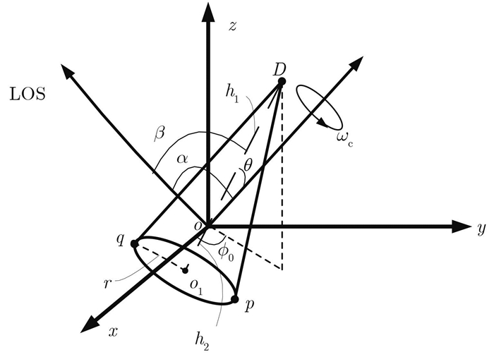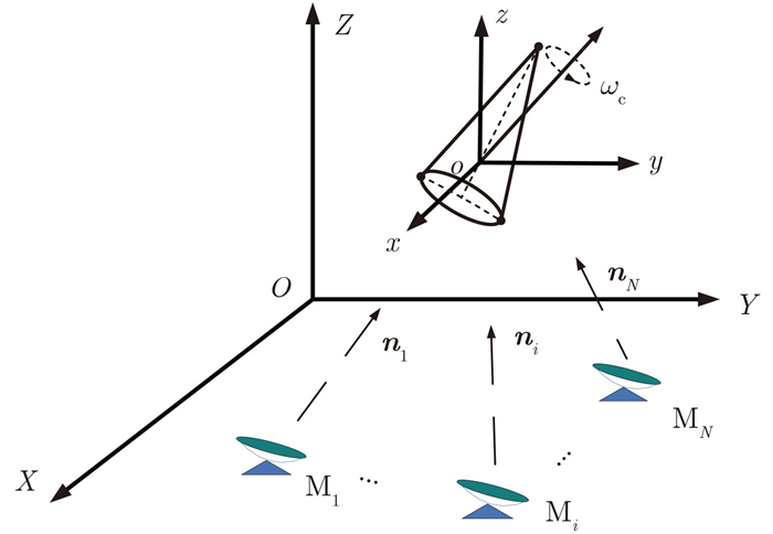 微动特征是弹道目标识别的重要特征之一。针对单一视角观测难以获取目标真实微动参数的问题,该文提出了一种基于窄带雷达网的3维进动特征提取方法。首先建立了锥体目标进动模型,在考虑散射中心遮挡的前提下,详细分析了进动引发的微多普勒频率调制特性。然后基于锥顶微多普勒频率调制系数比,实现了不同视角下散射中心匹配关联,通过构建多视角联合方程组获取了目标的3维锥旋矢量,进而利用各散射中心微多普勒频率相关性,结合频率补偿的方法对锥体特征参数进行了提取,在此基础上解算出每一时刻锥顶坐标,实现了目标空间位置的3维重构。仿真结果证明了该方法的有效性与实用性。 微动特征是弹道目标识别的重要特征之一。针对单一视角观测难以获取目标真实微动参数的问题,该文提出了一种基于窄带雷达网的3维进动特征提取方法。首先建立了锥体目标进动模型,在考虑散射中心遮挡的前提下,详细分析了进动引发的微多普勒频率调制特性。然后基于锥顶微多普勒频率调制系数比,实现了不同视角下散射中心匹配关联,通过构建多视角联合方程组获取了目标的3维锥旋矢量,进而利用各散射中心微多普勒频率相关性,结合频率补偿的方法对锥体特征参数进行了提取,在此基础上解算出每一时刻锥顶坐标,实现了目标空间位置的3维重构。仿真结果证明了该方法的有效性与实用性。