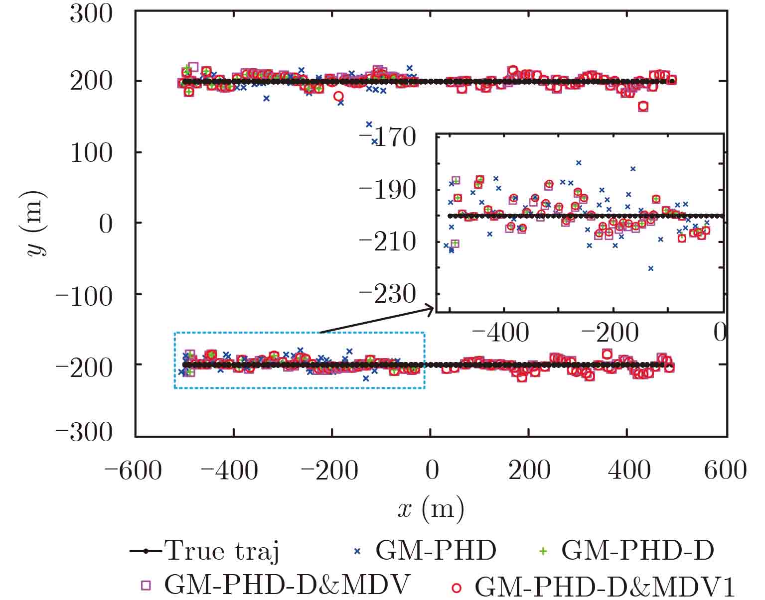 在多普勒雷达目标跟踪过程中,由于多普勒盲区(DBZ)的存在使得跟踪问题更为复杂。针对该问题,该文基于高斯混合概率假设密度(GM-PHD)提出了一种适用于多普勒盲区的多目标跟踪算法。该算法在常规检测概率模型中引入最小可检测速度(MDV)信息,并将该检测概率模型应用于传统GM-PHD更新方程中,推导出多普勒盲区下的GM-PHD更新方程。蒙特卡罗仿真实验结果表明:与只有多普勒量测信息的传统GM-PHD算法相比,新算法在较小的MDV条件下能够明显提高雷达对运动目标的跟踪性能。 在多普勒雷达目标跟踪过程中,由于多普勒盲区(DBZ)的存在使得跟踪问题更为复杂。针对该问题,该文基于高斯混合概率假设密度(GM-PHD)提出了一种适用于多普勒盲区的多目标跟踪算法。该算法在常规检测概率模型中引入最小可检测速度(MDV)信息,并将该检测概率模型应用于传统GM-PHD更新方程中,推导出多普勒盲区下的GM-PHD更新方程。蒙特卡罗仿真实验结果表明:与只有多普勒量测信息的传统GM-PHD算法相比,新算法在较小的MDV条件下能够明显提高雷达对运动目标的跟踪性能。