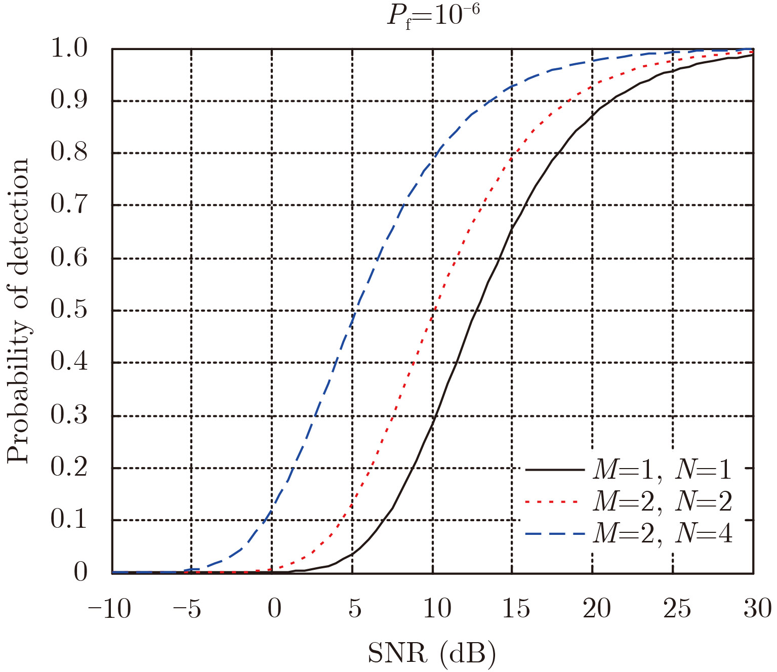 针对分布式MIMO雷达目标检测问题,该文首先根据分布式MIMO雷达站间的位置几何分布,给出了分布式MIMO雷达系统的3种形态:分布式相参MIMO雷达、相位随机MIMO雷达和幅相随机MIMO雷达。然后重点推导了低信噪比条件下相位随机和幅相随机MIMO雷达的平方律检测器结构,并详细分析了这两种检测器的检测性能。最后的仿真实验说明了该文的理论分析对实际工程具有一定的指导意义。 针对分布式MIMO雷达目标检测问题,该文首先根据分布式MIMO雷达站间的位置几何分布,给出了分布式MIMO雷达系统的3种形态:分布式相参MIMO雷达、相位随机MIMO雷达和幅相随机MIMO雷达。然后重点推导了低信噪比条件下相位随机和幅相随机MIMO雷达的平方律检测器结构,并详细分析了这两种检测器的检测性能。最后的仿真实验说明了该文的理论分析对实际工程具有一定的指导意义。