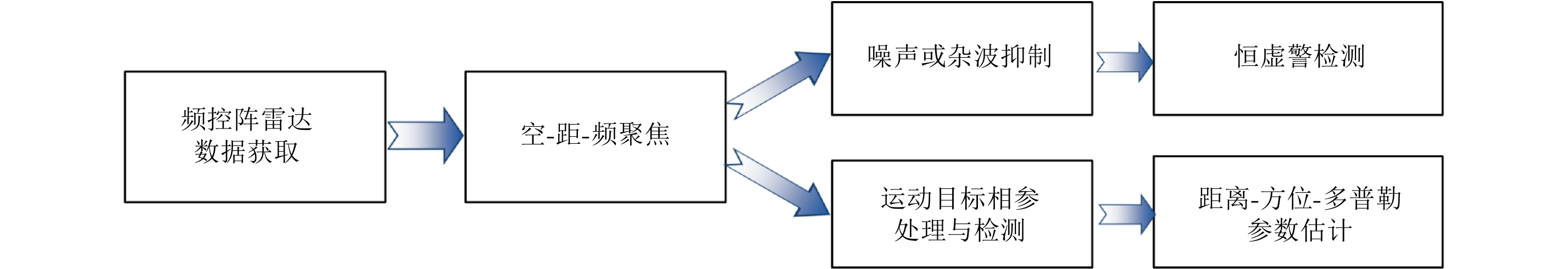针对复杂环境下对低可观测运动目标探测的迫切需求,该文在系统回顾近几年频控阵雷达国内外发展现状、频控阵雷达阵列结构设计及波束形成、距离和角度的联合估计等技术的基础上,提出了基于空距频聚焦的频控阵雷达信号新方法。充分利用频控阵雷达提供的发射波形自由度、阵元位置自由度、波束方位与距离相关性以及凝视观测的特点,即在空间(角度)、距离和频率(多普勒)的灵活自由度和能量集性,实现空-距-频聚焦和联合参数估计。仿真分析表明该方法具有提高复杂环境下雷达微弱动目标检测和参数估计的潜力,在杂波和干扰抑制、动目标精细化处理等方面有广阔的应用前景。 针对复杂环境下对低可观测运动目标探测的迫切需求,该文在系统回顾近几年频控阵雷达国内外发展现状、频控阵雷达阵列结构设计及波束形成、距离和角度的联合估计等技术的基础上,提出了基于空距频聚焦的频控阵雷达信号新方法。充分利用频控阵雷达提供的发射波形自由度、阵元位置自由度、波束方位与距离相关性以及凝视观测的特点,即在空间(角度)、距离和频率(多普勒)的灵活自由度和能量集性,实现空-距-频聚焦和联合参数估计。仿真分析表明该方法具有提高复杂环境下雷达微弱动目标检测和参数估计的潜力,在杂波和干扰抑制、动目标精细化处理等方面有广阔的应用前景。