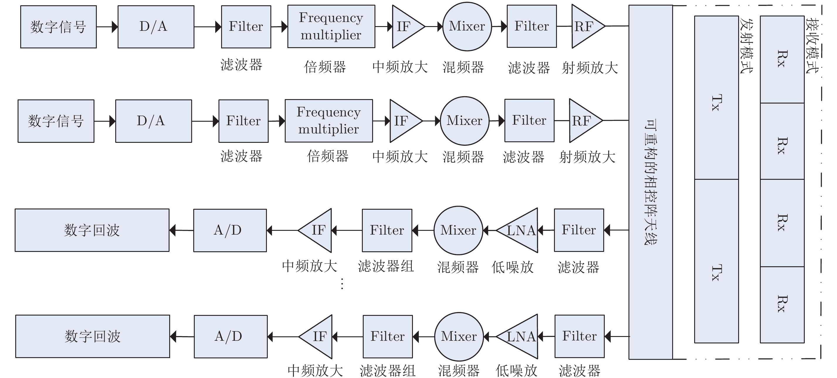与传统的相控阵只形成方位角依赖性的发射波束不同,频控阵通过在阵元间采用一个小频差来实现波束的自动扫描功能。频控阵能够形成具有距离依赖性和时变性的发射波束,克服了传统相控阵阵列因子不包含距离和时间变量的缺点,因而带来很多独特的应用优势。该文在作者的“频控阵雷达:概念、原理与应用”(《电子与信息学报》,2016, 38(4): 1000–1011)基础上,简要介绍频控阵雷达的基本原理,全面梳理近3年来国内外关于频控阵雷达技术及其应用方面的最新研究进展,讨论几种新的频控阵雷达技术应用前景,主要包括雷达对抗和雷达-通信一体化应用,并指出目前亟待研究解决的波束时变性、有效接收机设计、自适应信号检测与估计和原理样机研制等几个关键问题。 与传统的相控阵只形成方位角依赖性的发射波束不同,频控阵通过在阵元间采用一个小频差来实现波束的自动扫描功能。频控阵能够形成具有距离依赖性和时变性的发射波束,克服了传统相控阵阵列因子不包含距离和时间变量的缺点,因而带来很多独特的应用优势。该文在作者的“频控阵雷达:概念、原理与应用”(《电子与信息学报》,2016, 38(4): 1000–1011)基础上,简要介绍频控阵雷达的基本原理,全面梳理近3年来国内外关于频控阵雷达技术及其应用方面的最新研究进展,讨论几种新的频控阵雷达技术应用前景,主要包括雷达对抗和雷达-通信一体化应用,并指出目前亟待研究解决的波束时变性、有效接收机设计、自适应信号检测与估计和原理样机研制等几个关键问题。