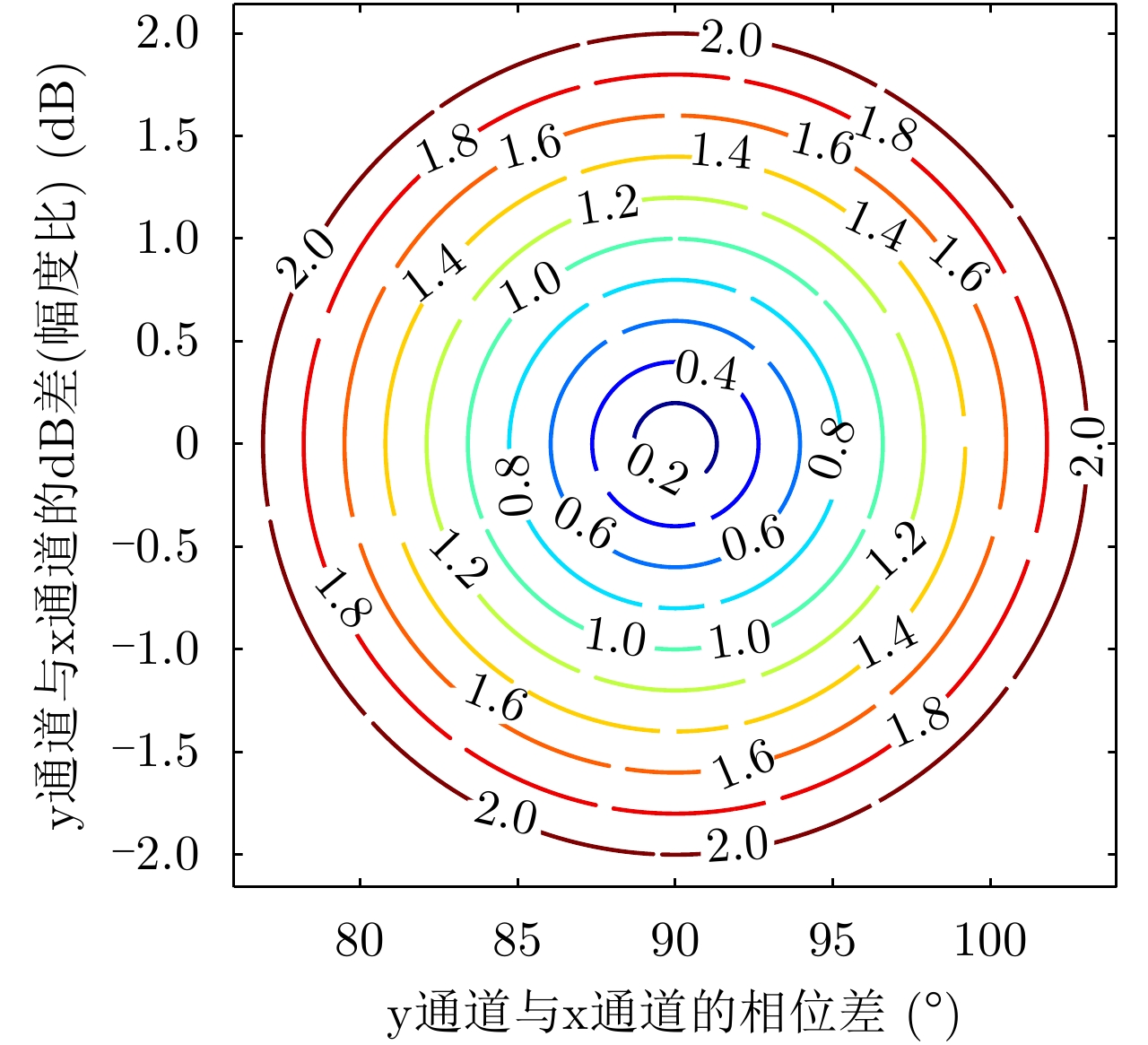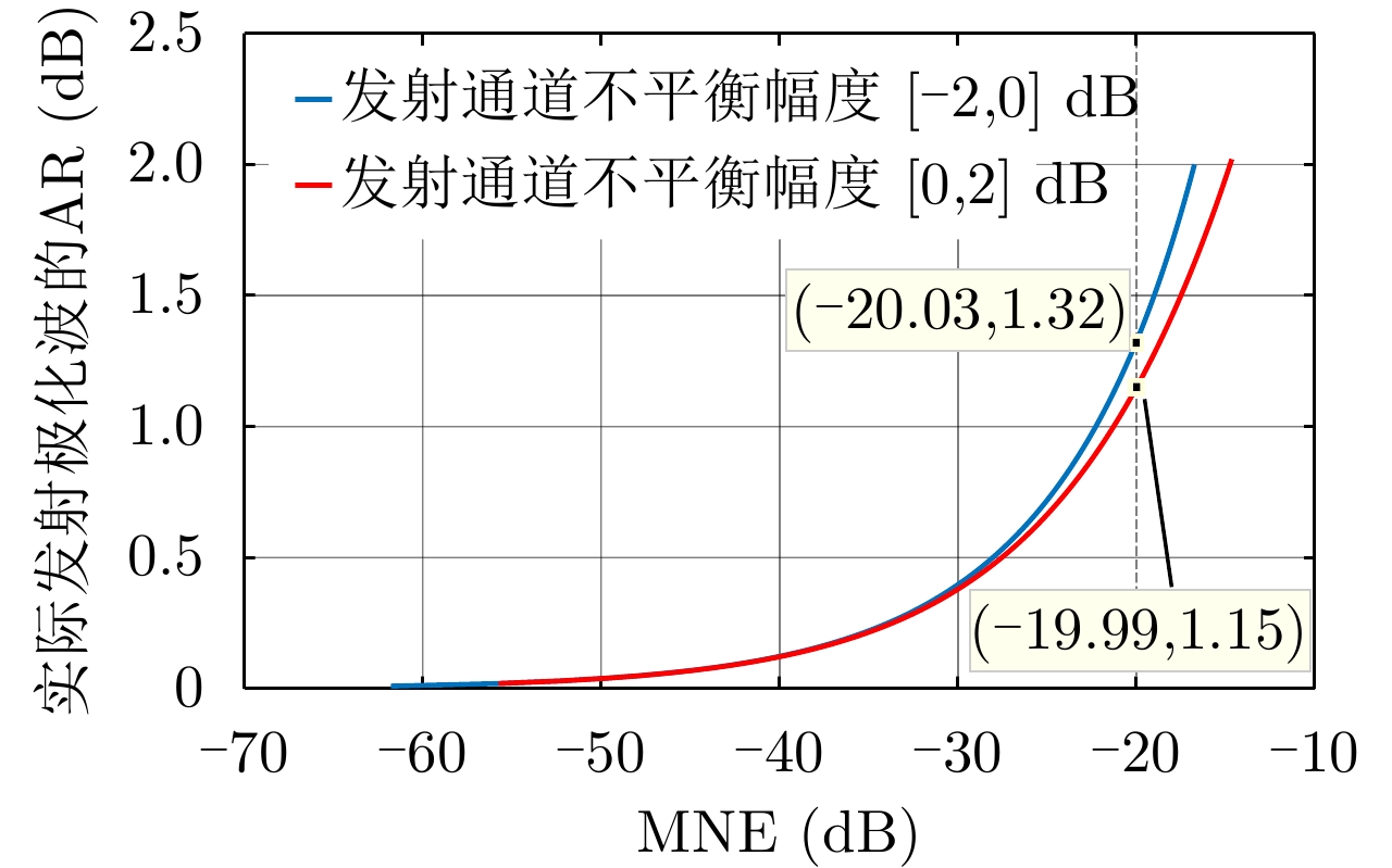 简缩极化(CP)模式是一种新型双极化模式。在实际工程应用中,包括简缩极化模式在内的所有双极化模式均无法直接通过外定标的方法补偿发射误差。因而有必要对发射误差所带来的影响进行详细分析。针对极化SAR系统,目前已有学者提出使用误差的最大归一化误差(MNE)参数对极化SAR系统的极化质量做分析评估。该文针对发射圆极化波的简缩极化模式提出了一种基于实际发射极化波极化轴比(AR)参数的发射误差分析方法。首先,通过仿真分析不同发射误差源对AR参数的影响,与此同时还展示了相同发射误差源影响下的MNE参数;通过分析对比,总结了AR参数相对MNE参数的3个优点;最后,使用高分三号卫星的实际测量误差数据与圆极化发射波实验系统的实测数据验证了该文提出的发射误差评估方法的有效性。 简缩极化(CP)模式是一种新型双极化模式。在实际工程应用中,包括简缩极化模式在内的所有双极化模式均无法直接通过外定标的方法补偿发射误差。因而有必要对发射误差所带来的影响进行详细分析。针对极化SAR系统,目前已有学者提出使用误差的最大归一化误差(MNE)参数对极化SAR系统的极化质量做分析评估。该文针对发射圆极化波的简缩极化模式提出了一种基于实际发射极化波极化轴比(AR)参数的发射误差分析方法。首先,通过仿真分析不同发射误差源对AR参数的影响,与此同时还展示了相同发射误差源影响下的MNE参数;通过分析对比,总结了AR参数相对MNE参数的3个优点;最后,使用高分三号卫星的实际测量误差数据与圆极化发射波实验系统的实测数据验证了该文提出的发射误差评估方法的有效性。