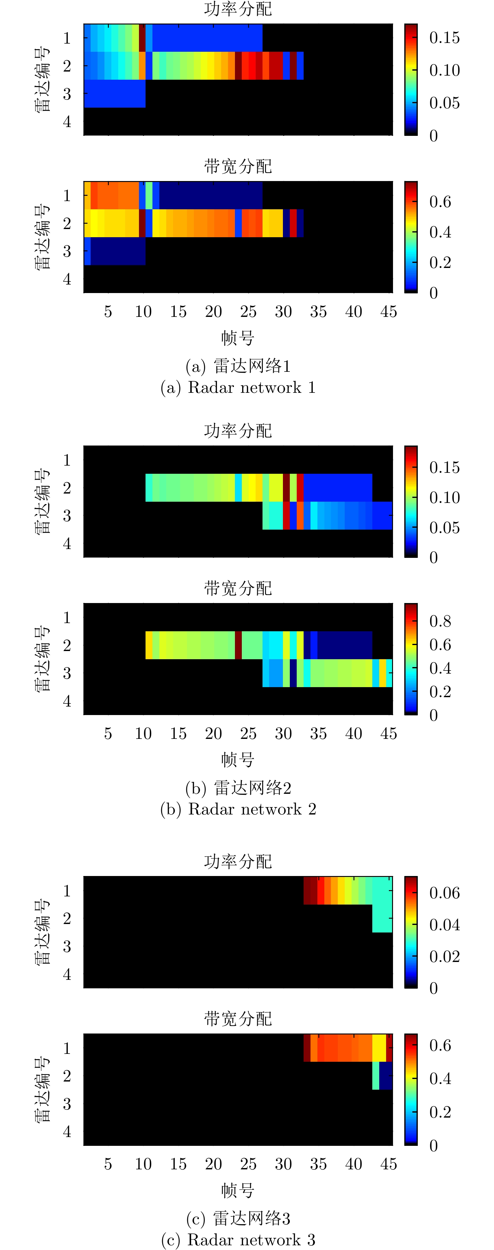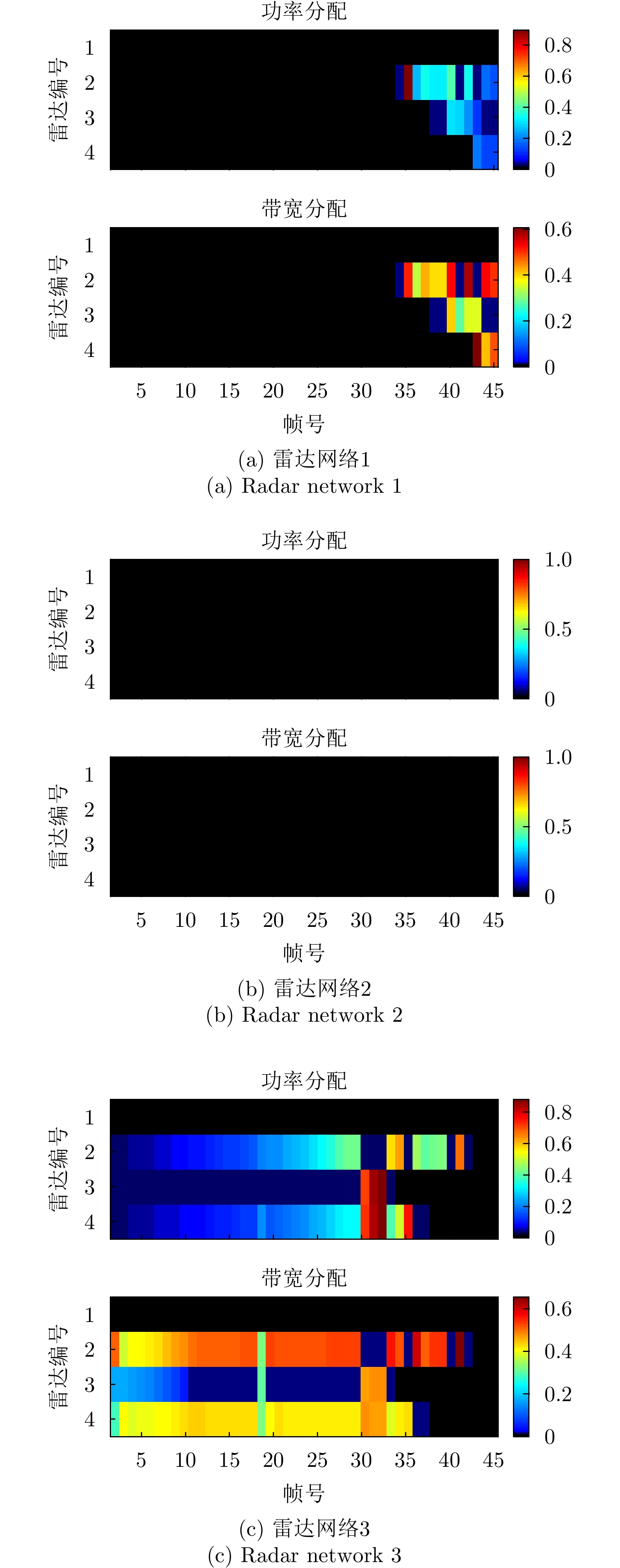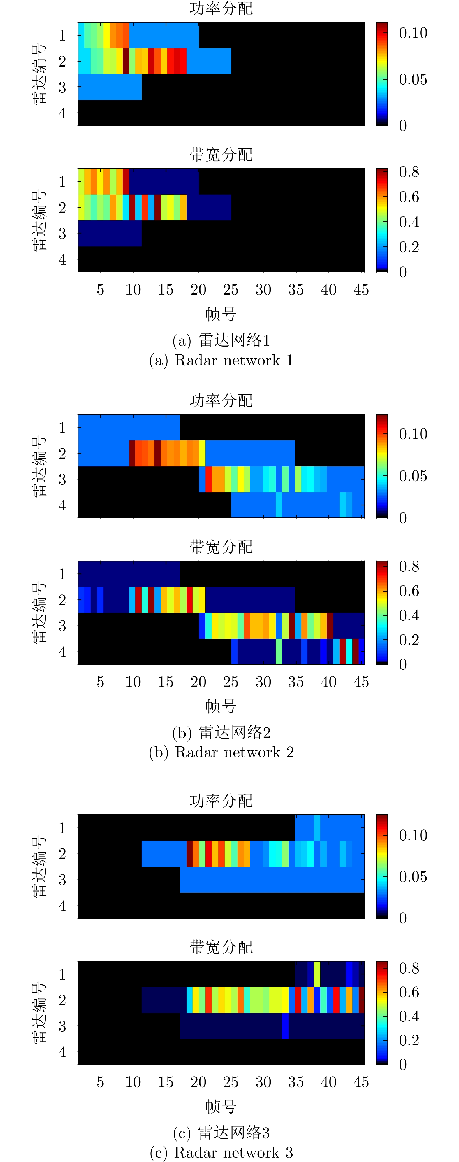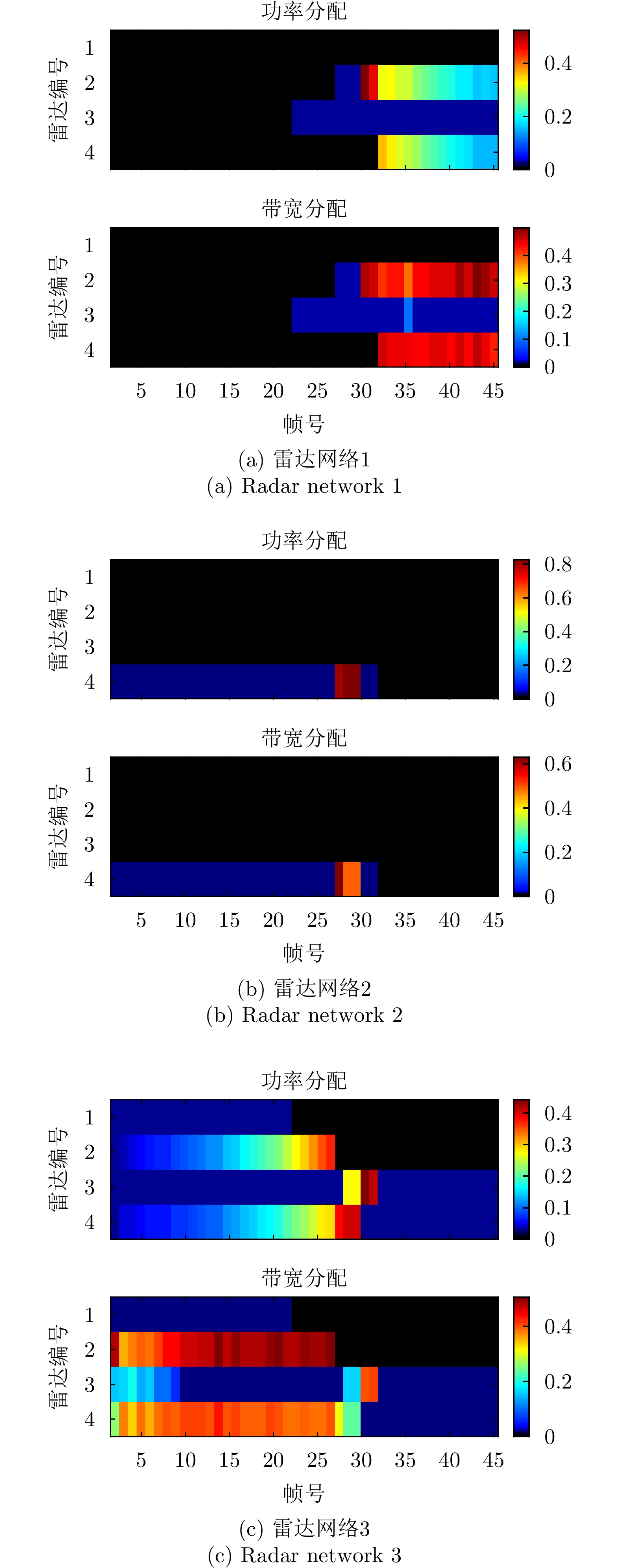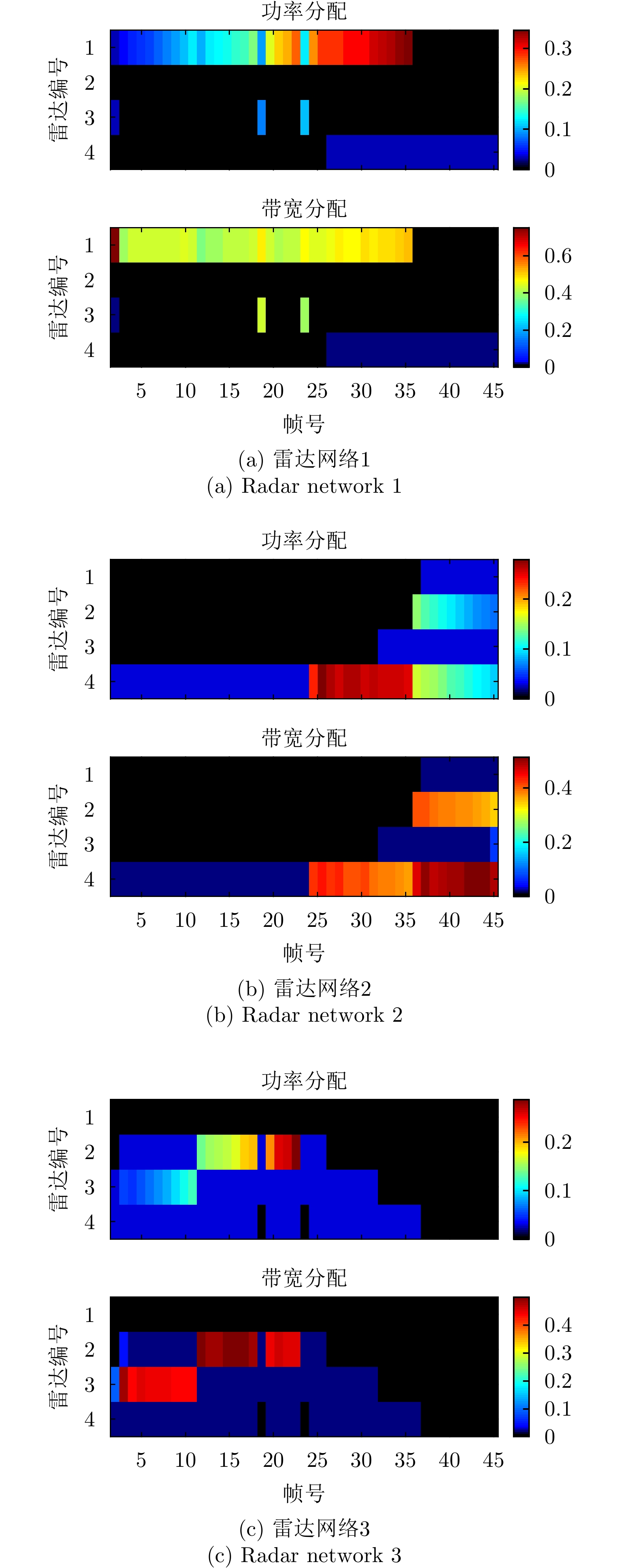 该文针对分布式相控阵多雷达网络的多目标跟踪场景,研究非理想检测条件下的节点选择与辐射资源联合优化分配算法。首先,根据分布式相控阵多雷达网络构成、目标运动模型、雷达量测模型以及雷达节点检测情况,推导非理想检测下以雷达节点选择、辐射功率和信号带宽为变量的贝叶斯克拉默-拉奥下界(BCRLB)闭式解析表达式,并以此作为多目标跟踪精度衡量指标。在此基础上,以最小化系统各雷达节点对所有目标的总辐射功率为优化目标,以满足目标跟踪精度门限以及给定的系统射频辐射资源限制为约束条件,建立非理想检测条件下多雷达网络节点选择与辐射资源联合优化分配模型,对各时刻雷达节点选择、辐射功率和信号带宽等参数进行联合优化设计,以提升多雷达网络的射频隐身性能。最后,针对上述非线性、非凸优化问题,采用基于障碍函数法和循环最小化算法的4步分解算法进行求解。仿真结果表明,与现有算法相比,所提算法能在满足给定多目标跟踪精度的条件下有效降低分布式相控阵多雷达网络的总辐射功率,至少降低了约32.3%,从而提升其射频隐身性能。 该文针对分布式相控阵多雷达网络的多目标跟踪场景,研究非理想检测条件下的节点选择与辐射资源联合优化分配算法。首先,根据分布式相控阵多雷达网络构成、目标运动模型、雷达量测模型以及雷达节点检测情况,推导非理想检测下以雷达节点选择、辐射功率和信号带宽为变量的贝叶斯克拉默-拉奥下界(BCRLB)闭式解析表达式,并以此作为多目标跟踪精度衡量指标。在此基础上,以最小化系统各雷达节点对所有目标的总辐射功率为优化目标,以满足目标跟踪精度门限以及给定的系统射频辐射资源限制为约束条件,建立非理想检测条件下多雷达网络节点选择与辐射资源联合优化分配模型,对各时刻雷达节点选择、辐射功率和信号带宽等参数进行联合优化设计,以提升多雷达网络的射频隐身性能。最后,针对上述非线性、非凸优化问题,采用基于障碍函数法和循环最小化算法的4步分解算法进行求解。仿真结果表明,与现有算法相比,所提算法能在满足给定多目标跟踪精度的条件下有效降低分布式相控阵多雷达网络的总辐射功率,至少降低了约32.3%,从而提升其射频隐身性能。