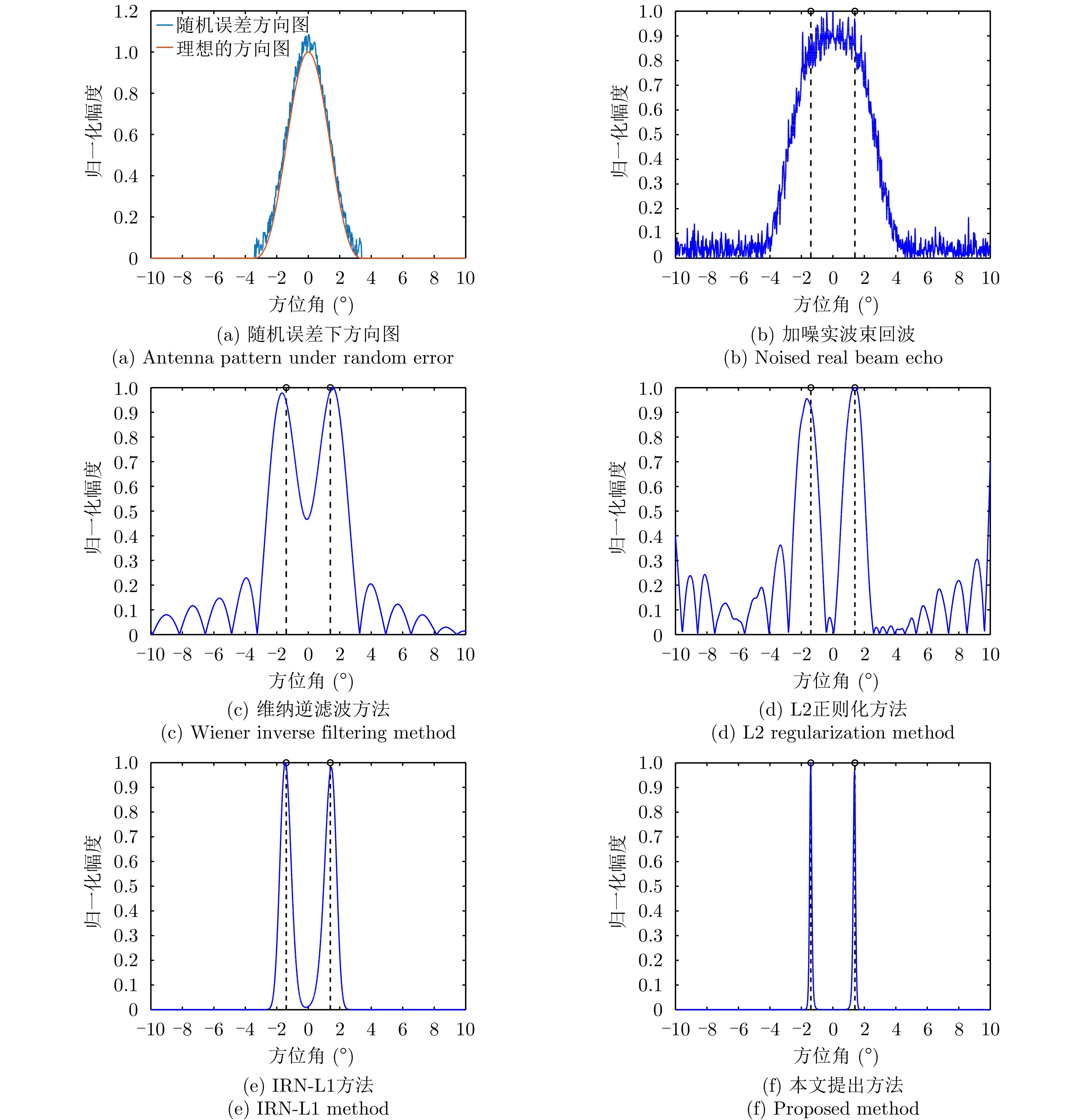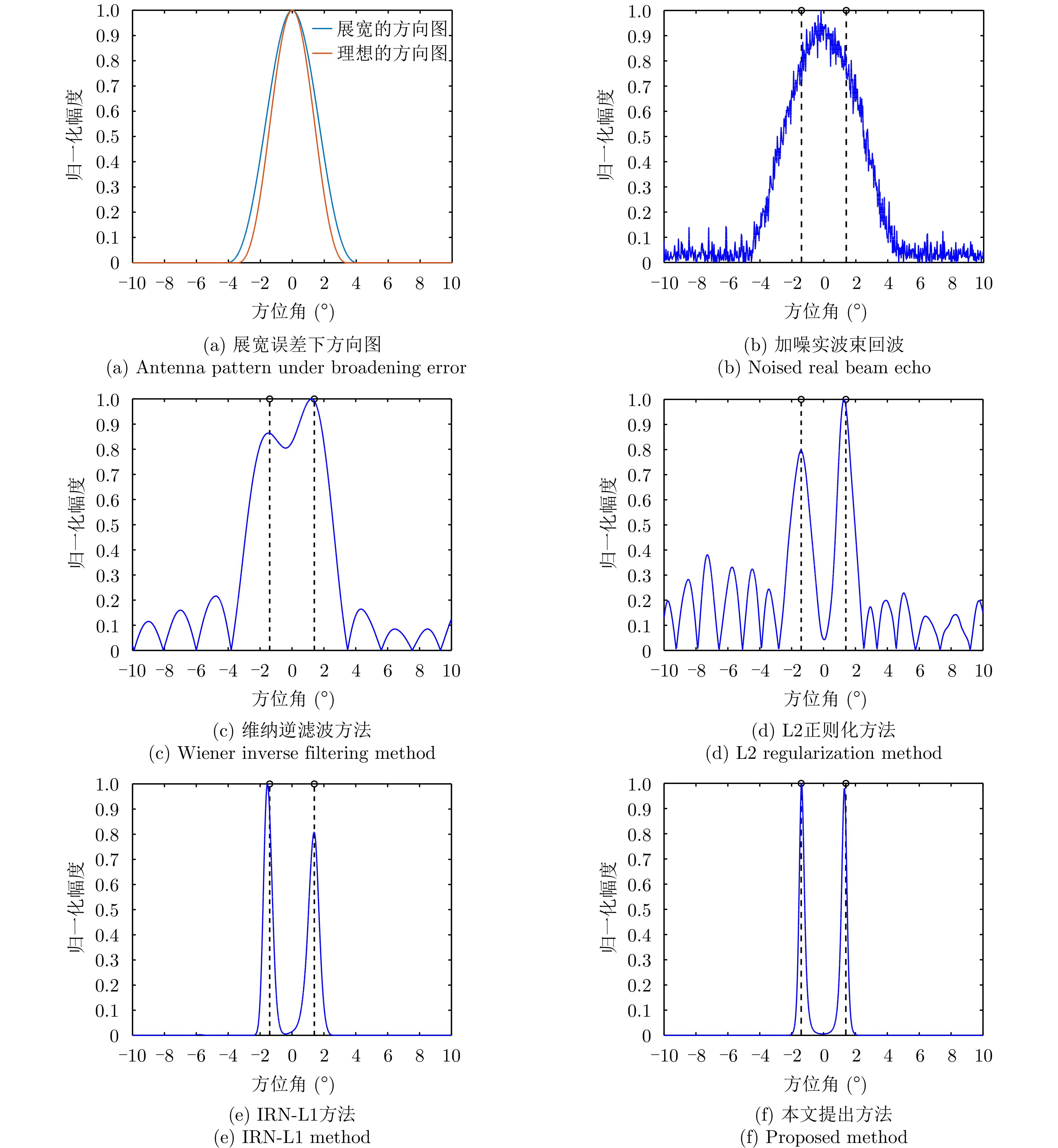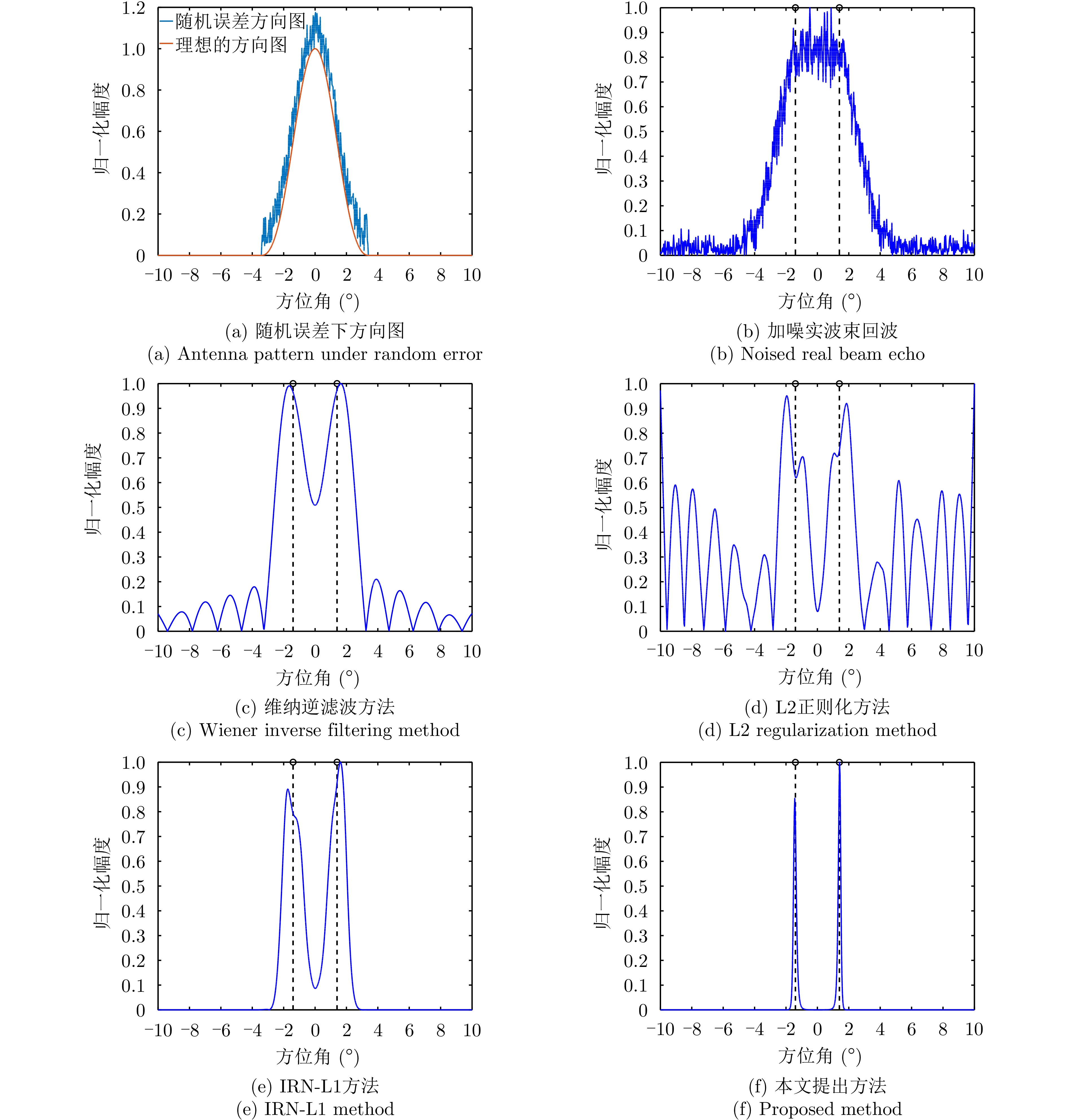 扫描雷达角超分辨技术是基于目标与天线方向图的关系,采用解卷积方法获取超越实波束的角分辨能力。目前的角超分辨方法大都是基于理想的无畸变天线方向图,未考虑实际过程中方向图的变化。然而,由于雷达天线罩、天线测量误差与平台非理想运动等因素的影响,天线方向图在实际中往往存在未知的误差,会导致目标分辨能力下降,甚至产生虚假目标。针对此问题,该文提出一种机载扫描雷达未知天线方向图误差下的角超分辨成像方法。首先,基于总体最小二乘(TLS)准则,该文考虑了方向图误差矩阵的影响,导出了相应的目标函数;其次,基于交替迭代的求解思路,利用迭代重加权优化方法实现了目标函数求解;最后,针对算法超参数选取,引入了一种自适应参数选取方法。仿真与实测结果表明,该文方法能实现未知天线误差条件下的超分辨重建,进一步提升了超分辨算法的稳健性。 扫描雷达角超分辨技术是基于目标与天线方向图的关系,采用解卷积方法获取超越实波束的角分辨能力。目前的角超分辨方法大都是基于理想的无畸变天线方向图,未考虑实际过程中方向图的变化。然而,由于雷达天线罩、天线测量误差与平台非理想运动等因素的影响,天线方向图在实际中往往存在未知的误差,会导致目标分辨能力下降,甚至产生虚假目标。针对此问题,该文提出一种机载扫描雷达未知天线方向图误差下的角超分辨成像方法。首先,基于总体最小二乘(TLS)准则,该文考虑了方向图误差矩阵的影响,导出了相应的目标函数;其次,基于交替迭代的求解思路,利用迭代重加权优化方法实现了目标函数求解;最后,针对算法超参数选取,引入了一种自适应参数选取方法。仿真与实测结果表明,该文方法能实现未知天线误差条件下的超分辨重建,进一步提升了超分辨算法的稳健性。