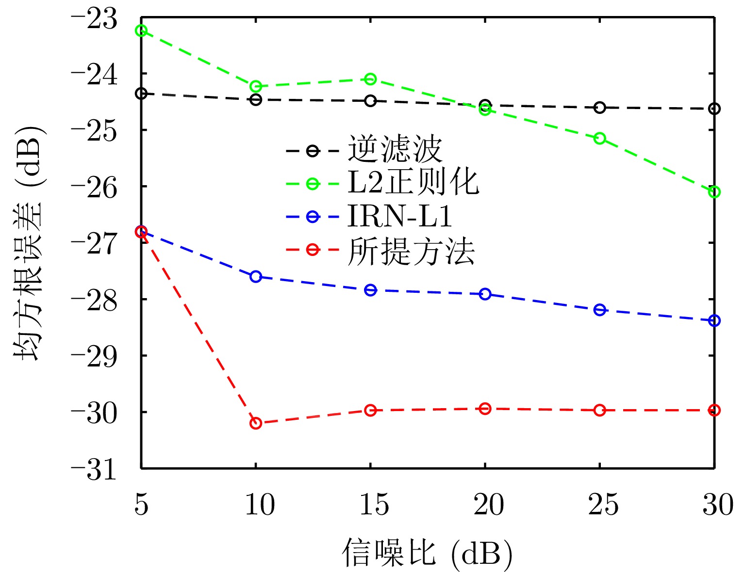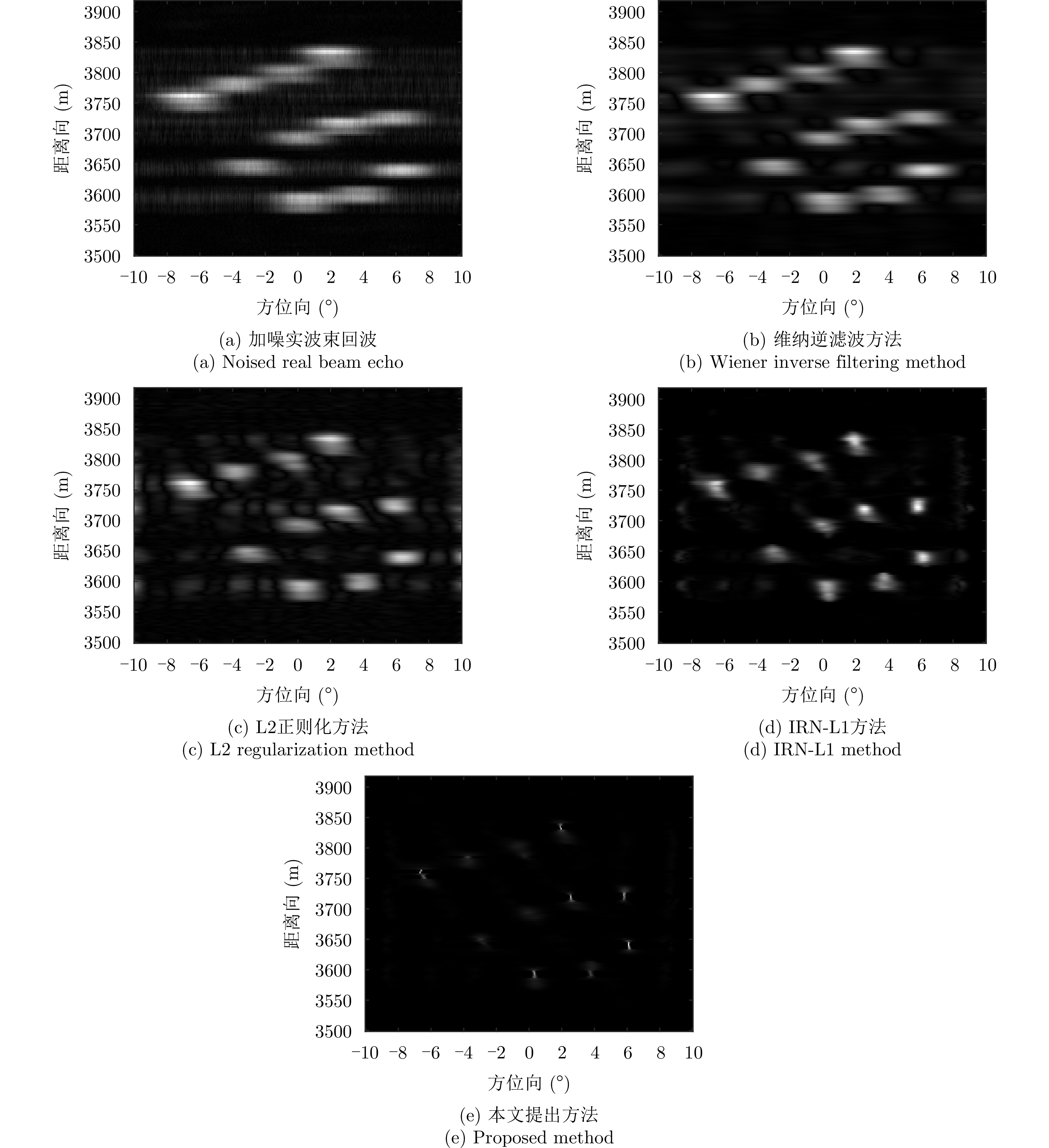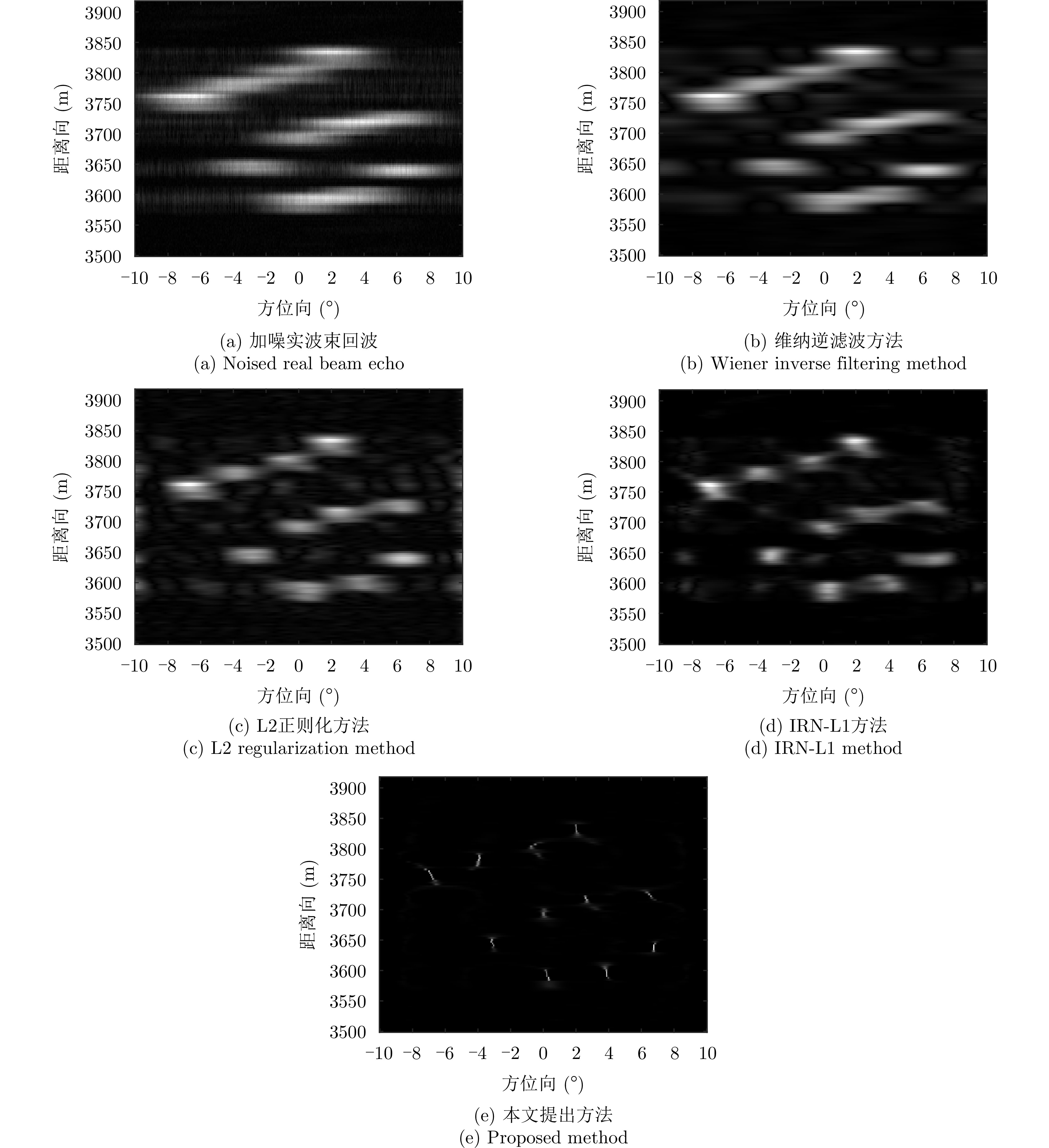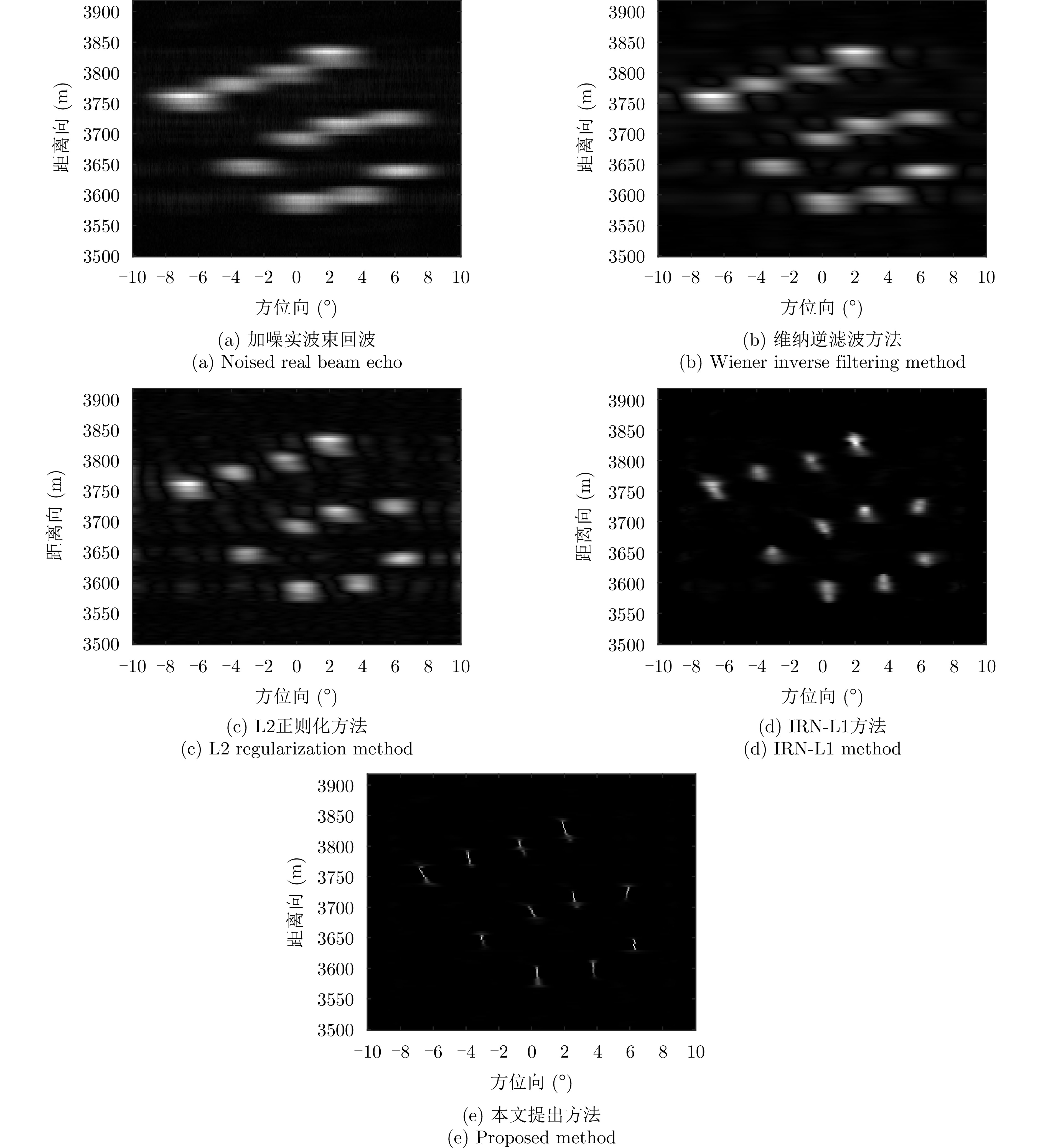 扫描雷达角超分辨技术是基于目标与天线方向图的关系,采用解卷积方法获取超越实波束的角分辨能力。目前的角超分辨方法大都是基于理想的无畸变天线方向图,未考虑实际过程中方向图的变化。然而,由于雷达天线罩、天线测量误差与平台非理想运动等因素的影响,天线方向图在实际中往往存在未知的误差,会导致目标分辨能力下降,甚至产生虚假目标。针对此问题,该文提出一种机载扫描雷达未知天线方向图误差下的角超分辨成像方法。首先,基于总体最小二乘(TLS)准则,该文考虑了方向图误差矩阵的影响,导出了相应的目标函数;其次,基于交替迭代的求解思路,利用迭代重加权优化方法实现了目标函数求解;最后,针对算法超参数选取,引入了一种自适应参数选取方法。仿真与实测结果表明,该文方法能实现未知天线误差条件下的超分辨重建,进一步提升了超分辨算法的稳健性。 扫描雷达角超分辨技术是基于目标与天线方向图的关系,采用解卷积方法获取超越实波束的角分辨能力。目前的角超分辨方法大都是基于理想的无畸变天线方向图,未考虑实际过程中方向图的变化。然而,由于雷达天线罩、天线测量误差与平台非理想运动等因素的影响,天线方向图在实际中往往存在未知的误差,会导致目标分辨能力下降,甚至产生虚假目标。针对此问题,该文提出一种机载扫描雷达未知天线方向图误差下的角超分辨成像方法。首先,基于总体最小二乘(TLS)准则,该文考虑了方向图误差矩阵的影响,导出了相应的目标函数;其次,基于交替迭代的求解思路,利用迭代重加权优化方法实现了目标函数求解;最后,针对算法超参数选取,引入了一种自适应参数选取方法。仿真与实测结果表明,该文方法能实现未知天线误差条件下的超分辨重建,进一步提升了超分辨算法的稳健性。