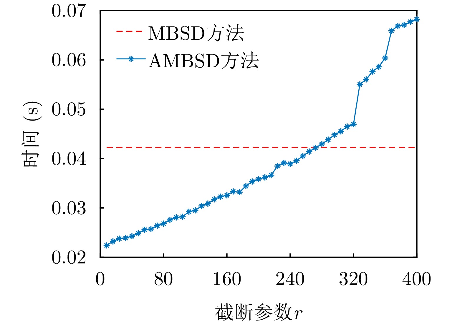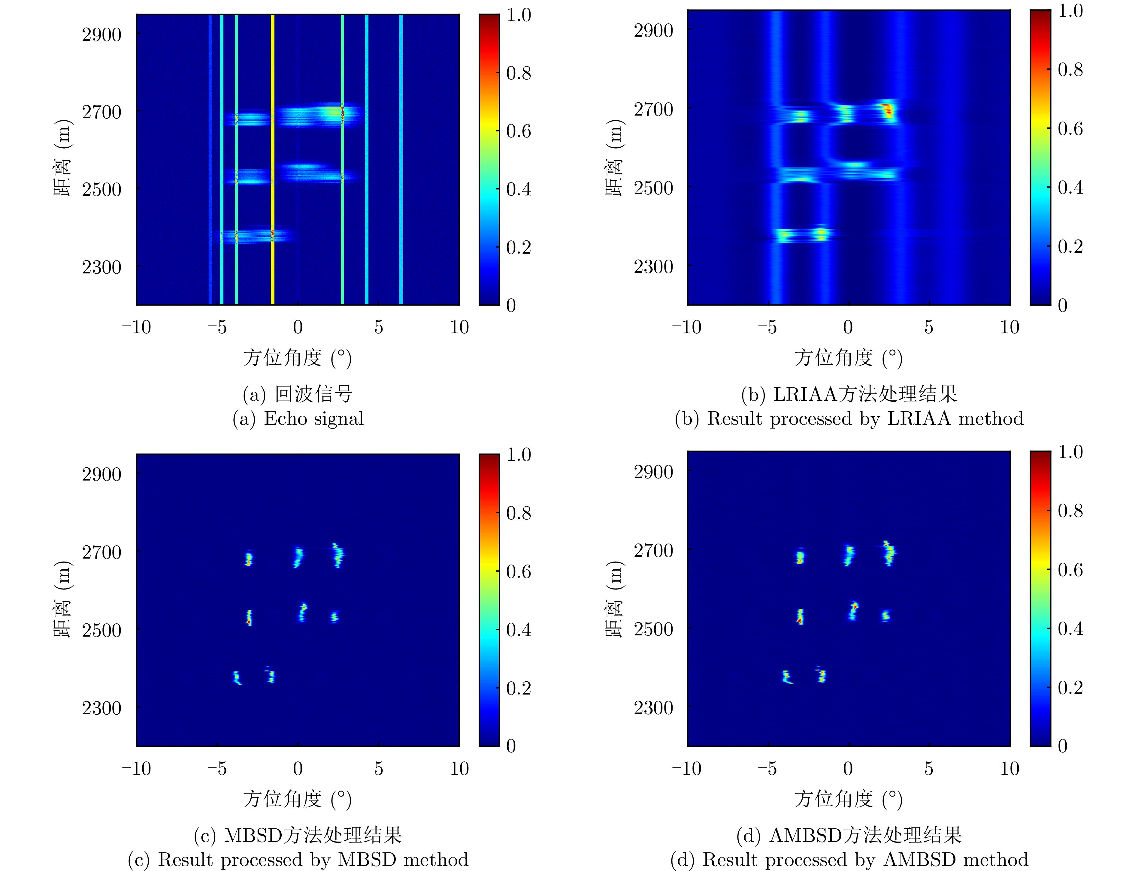 机载扫描雷达前视成像可广泛应用于态势感知、自主导航和地形跟随。在雷达扫描过程中受到不经意的电磁脉冲干扰或设备性能异常等影响时,雷达回波数据出现异常值。已有的超分辨方法可以抑制回波中的异常值、提高角度分辨率,但没有考虑计算实时性问题。针对上述问题,该文提出了一种机载雷达超分辨方法实现回波数据异常时的快速前视成像。为了更好地拟合回波噪声,引入对异常值更加鲁棒的学生t分布,并采用期望最大化方法对成像参数进行估计。受截断奇异值分解方法的启发,将截断的酉矩阵引入目标散射系数的估计公式中。通过矩阵变换降低了求逆矩阵的尺寸,从而降低了参数估计的计算复杂度。仿真结果表明该文提出加速方法可以用更短的时间提高前视成像的角度分辨率,抑制回波数据中的异常值。 机载扫描雷达前视成像可广泛应用于态势感知、自主导航和地形跟随。在雷达扫描过程中受到不经意的电磁脉冲干扰或设备性能异常等影响时,雷达回波数据出现异常值。已有的超分辨方法可以抑制回波中的异常值、提高角度分辨率,但没有考虑计算实时性问题。针对上述问题,该文提出了一种机载雷达超分辨方法实现回波数据异常时的快速前视成像。为了更好地拟合回波噪声,引入对异常值更加鲁棒的学生t分布,并采用期望最大化方法对成像参数进行估计。受截断奇异值分解方法的启发,将截断的酉矩阵引入目标散射系数的估计公式中。通过矩阵变换降低了求逆矩阵的尺寸,从而降低了参数估计的计算复杂度。仿真结果表明该文提出加速方法可以用更短的时间提高前视成像的角度分辨率,抑制回波数据中的异常值。