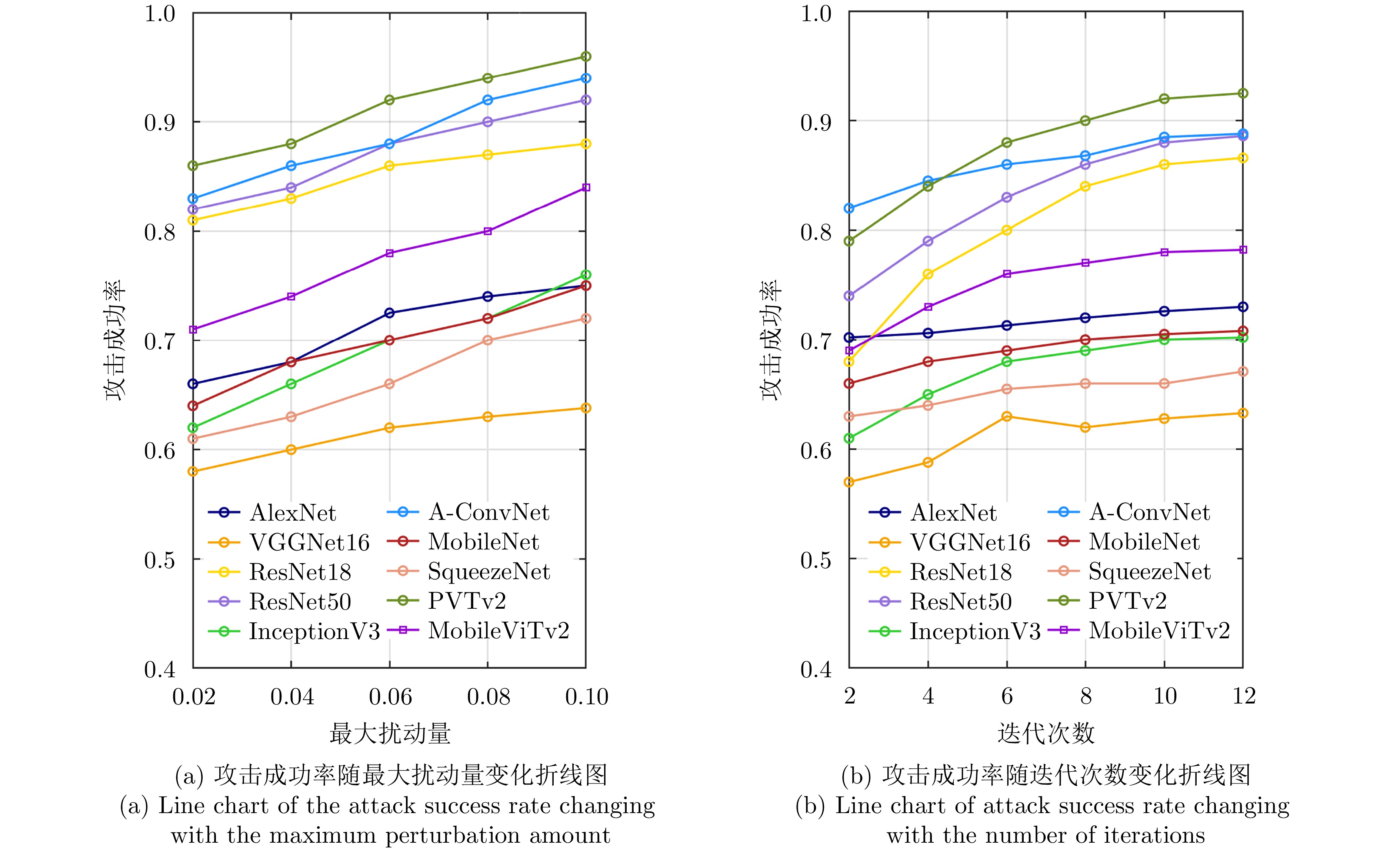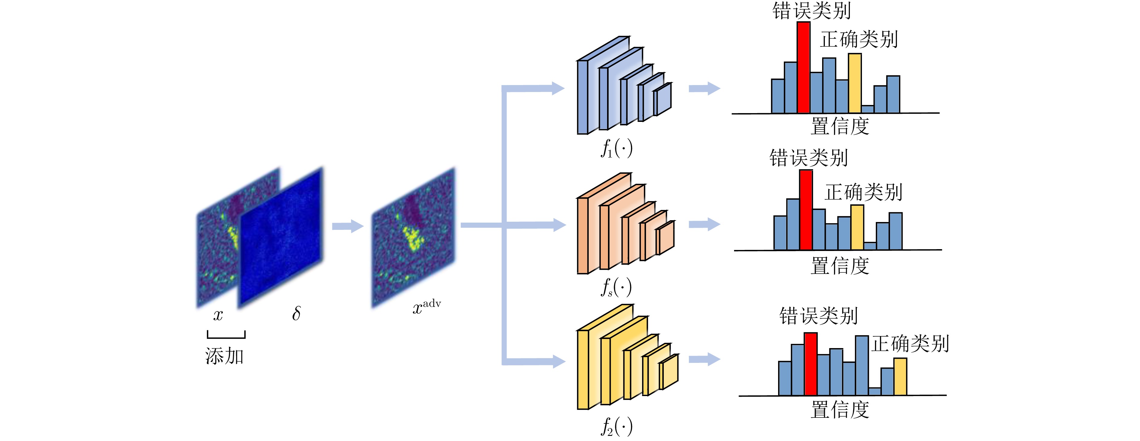 合成孔径雷达自动目标识别(SAR-ATR)领域缺乏有效的黑盒攻击算法,为此,该文结合动量迭代快速梯度符号(MI-FGSM)思想提出了一种基于迁移的黑盒攻击算法。首先结合SAR图像特性进行随机斑点噪声变换,缓解模型对斑点噪声的过拟合,提高算法的泛化性能;然后设计了能够快速寻找最优梯度下降方向的ABN寻优器,通过模型梯度快速收敛提升算法攻击有效性;最后引入拟双曲动量算子获得稳定的模型梯度下降方向,使梯度在快速收敛过程中避免陷入局部最优,进一步增强对抗样本的黑盒攻击成功率。通过仿真实验表明,与现有的对抗攻击算法相比,该文算法在MSTAR和FUSAR-Ship数据集上对主流的SAR-ATR深度神经网络的集成模型黑盒攻击成功率分别提高了3%~55%和6.0%~57.5%,而且生成的对抗样本具有高度的隐蔽性。 合成孔径雷达自动目标识别(SAR-ATR)领域缺乏有效的黑盒攻击算法,为此,该文结合动量迭代快速梯度符号(MI-FGSM)思想提出了一种基于迁移的黑盒攻击算法。首先结合SAR图像特性进行随机斑点噪声变换,缓解模型对斑点噪声的过拟合,提高算法的泛化性能;然后设计了能够快速寻找最优梯度下降方向的ABN寻优器,通过模型梯度快速收敛提升算法攻击有效性;最后引入拟双曲动量算子获得稳定的模型梯度下降方向,使梯度在快速收敛过程中避免陷入局部最优,进一步增强对抗样本的黑盒攻击成功率。通过仿真实验表明,与现有的对抗攻击算法相比,该文算法在MSTAR和FUSAR-Ship数据集上对主流的SAR-ATR深度神经网络的集成模型黑盒攻击成功率分别提高了3%~55%和6.0%~57.5%,而且生成的对抗样本具有高度的隐蔽性。