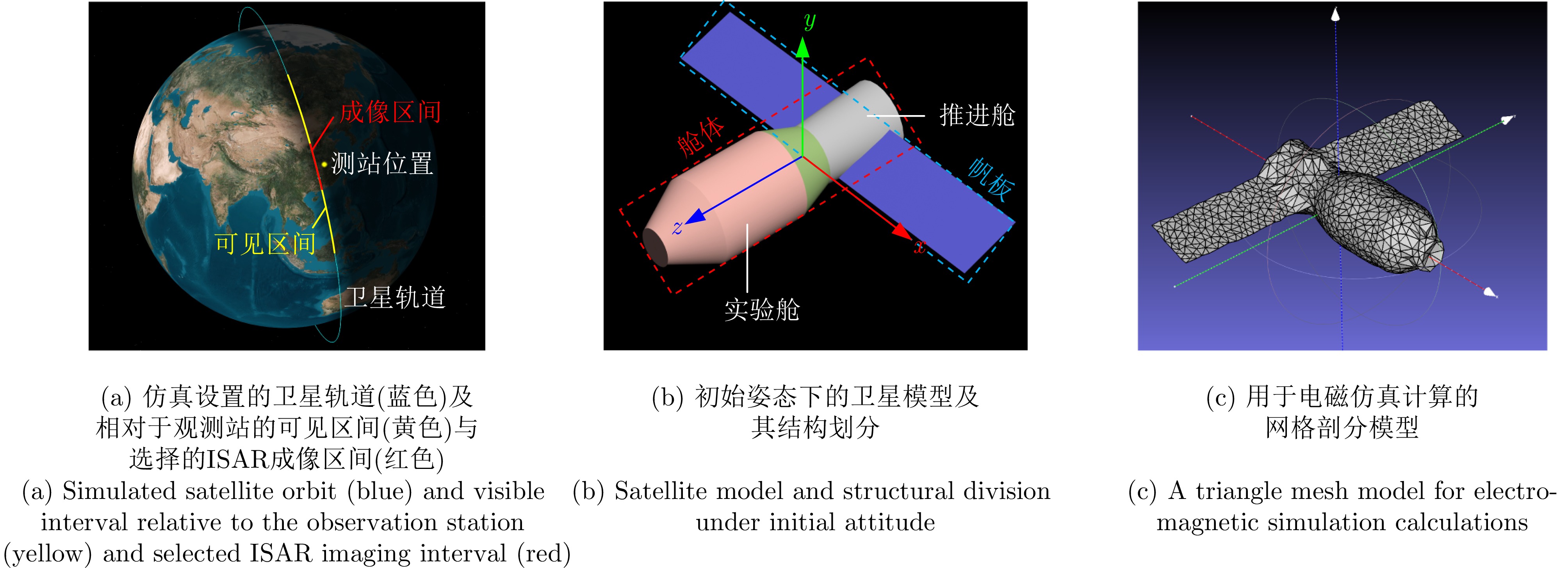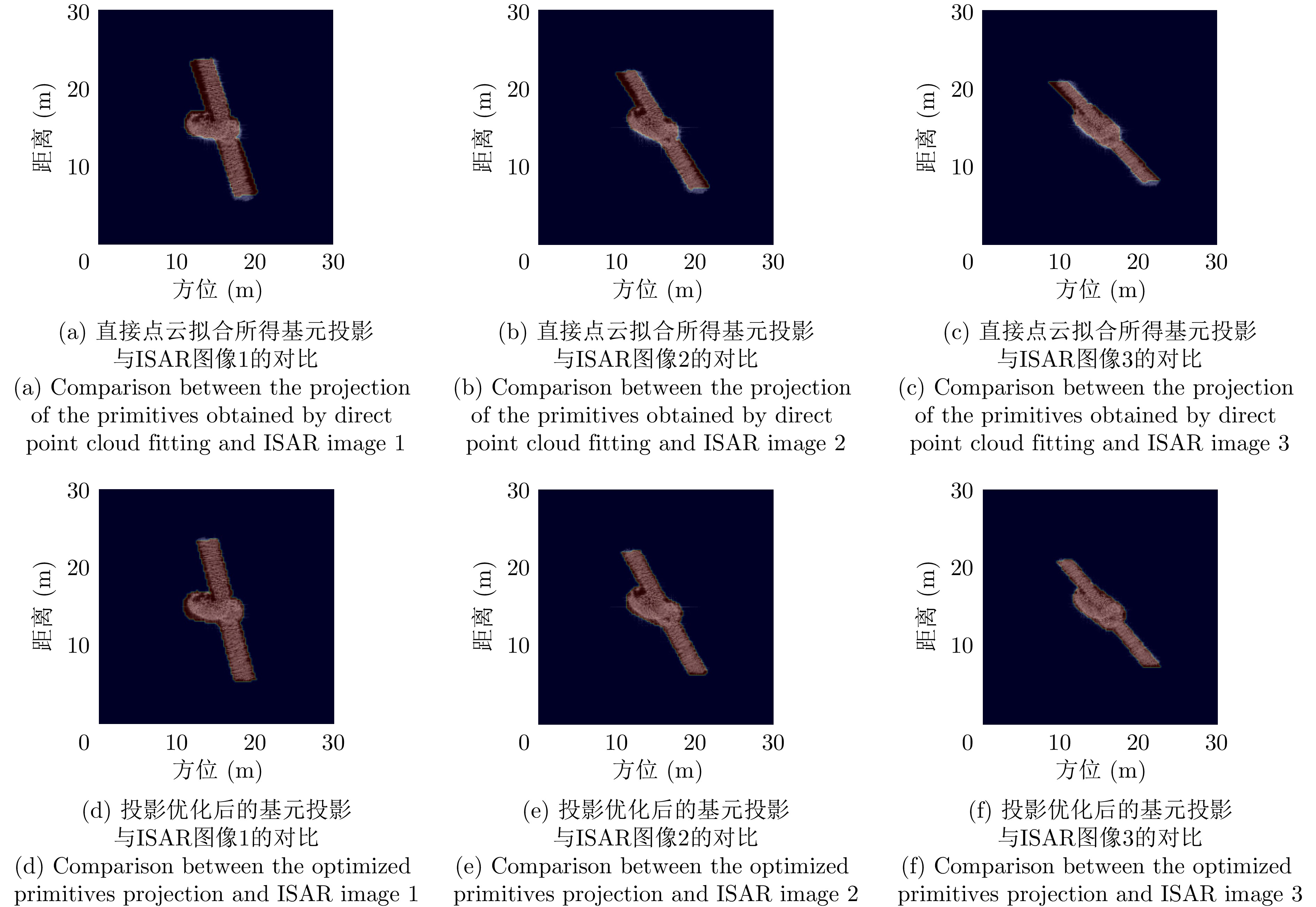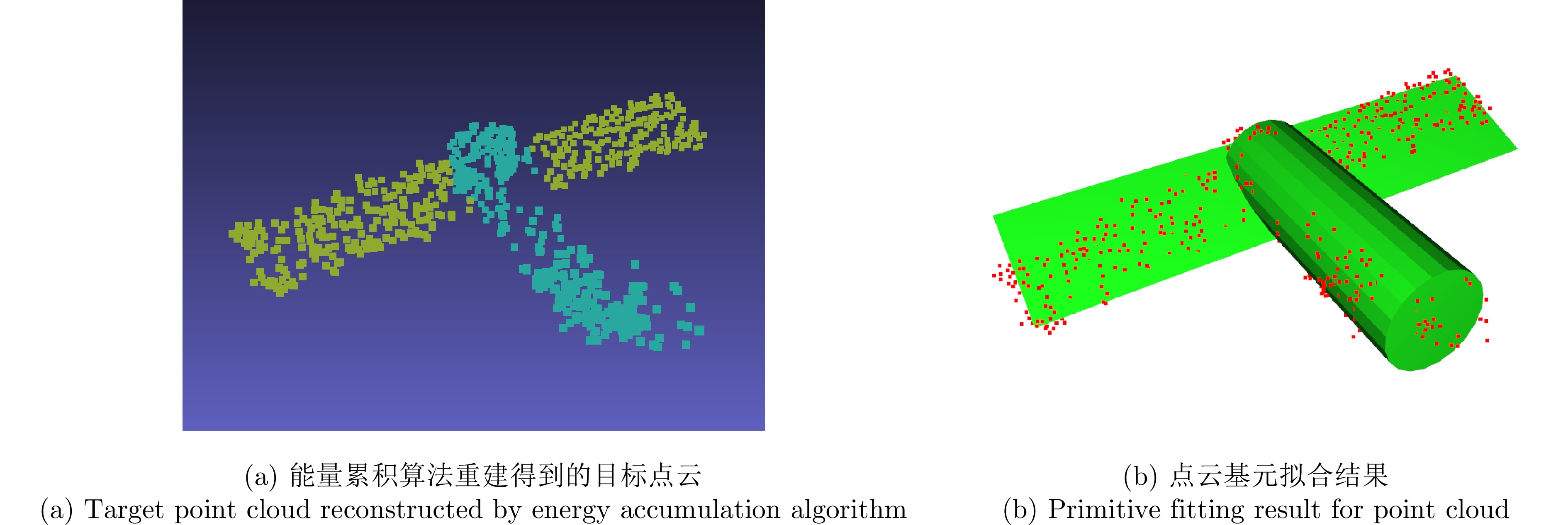 空间卫星目标的逆合成孔径雷达(ISAR)图像由离散的散射点构成,具有弱纹理、高动态、非连续的特性,造成传统算法对空间目标ISAR图像进行三维重建时,得到的点云结果稀疏,无法覆盖目标整体外形轮廓,进而导致难以精确提取目标结构、姿态参数。针对上述问题,并考虑到空间目标通常由特定模块化部件组成的特点,该文提出一种从空间目标ISAR图像中抽取参数化基元来表示其三维结构的方法。首先利用能量累积算法从ISAR图像中得到目标的稀疏点云,进而利用参数化基元对点云进行拟合,最后将基元投影至ISAR成像平面,并最大化与目标图像的相似度来优化基元参数,得到最优的目标三维基元表示。相比于传统点云三维重建,该方法能够获得对目标三维结构更完整的描述,且所得到的基元参数即代表目标的姿态及结构,可直接支撑后续的目标识别、分析研判等任务。仿真实验证明该方法能够根据ISAR序列图像,有效实现对空间目标的三维表示。 空间卫星目标的逆合成孔径雷达(ISAR)图像由离散的散射点构成,具有弱纹理、高动态、非连续的特性,造成传统算法对空间目标ISAR图像进行三维重建时,得到的点云结果稀疏,无法覆盖目标整体外形轮廓,进而导致难以精确提取目标结构、姿态参数。针对上述问题,并考虑到空间目标通常由特定模块化部件组成的特点,该文提出一种从空间目标ISAR图像中抽取参数化基元来表示其三维结构的方法。首先利用能量累积算法从ISAR图像中得到目标的稀疏点云,进而利用参数化基元对点云进行拟合,最后将基元投影至ISAR成像平面,并最大化与目标图像的相似度来优化基元参数,得到最优的目标三维基元表示。相比于传统点云三维重建,该方法能够获得对目标三维结构更完整的描述,且所得到的基元参数即代表目标的姿态及结构,可直接支撑后续的目标识别、分析研判等任务。仿真实验证明该方法能够根据ISAR序列图像,有效实现对空间目标的三维表示。