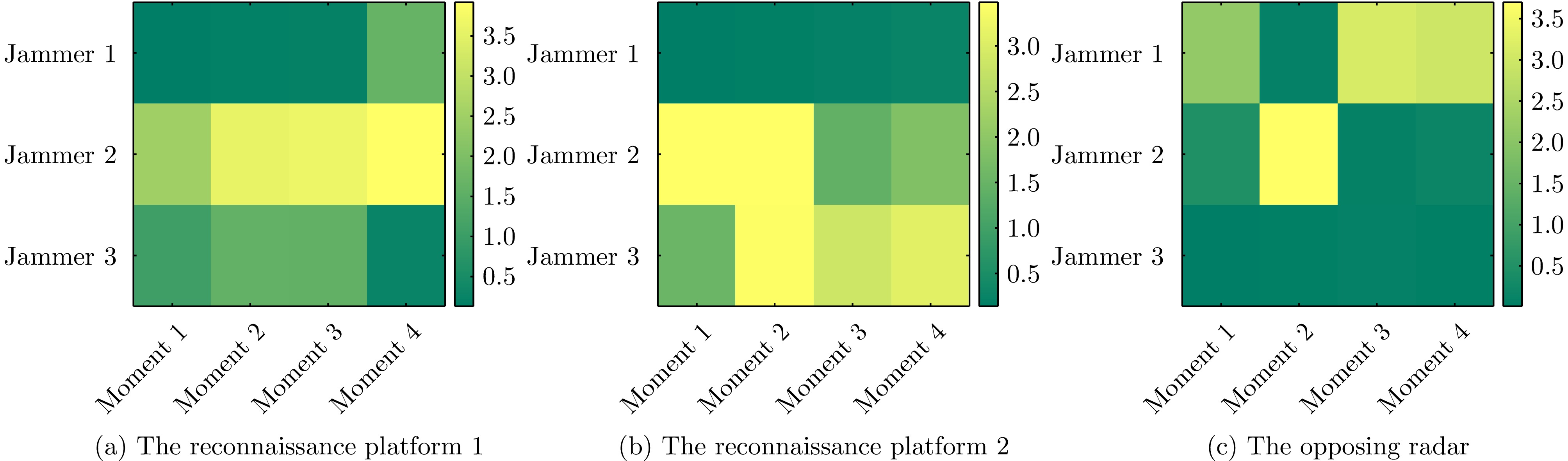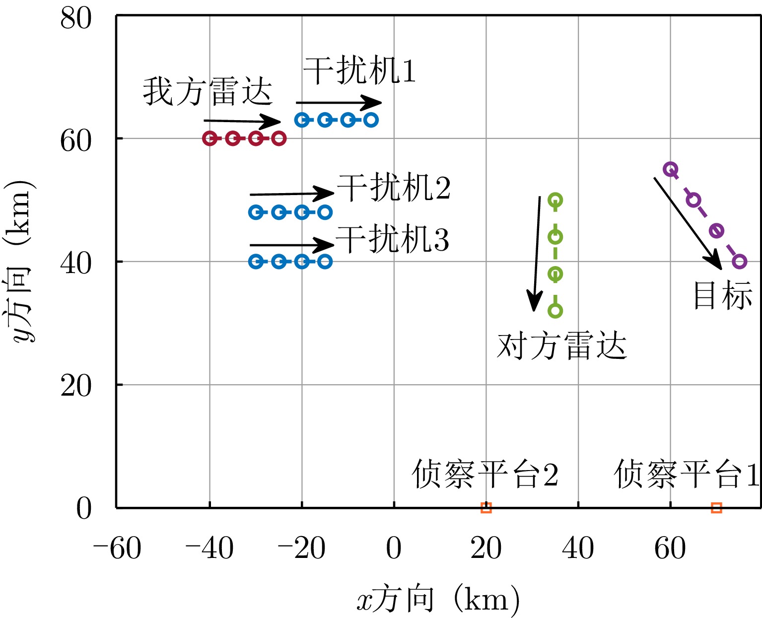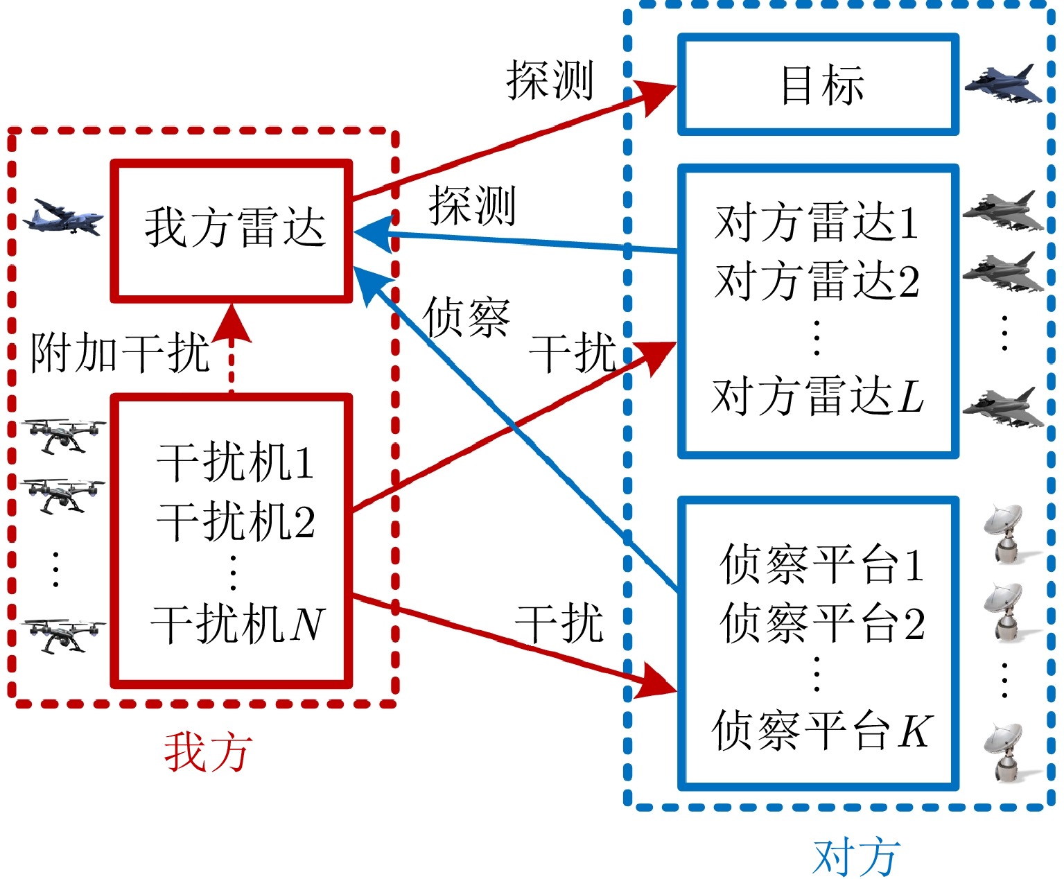 现代雷达对抗形势复杂多变,体系与体系的作战已成为基本特点,而体系整体性能关乎着战场的主动权乃至最终的胜负。通过优化体系中雷达与干扰波束资源可以提升整体性能,获得在空间、时间域优效的低截获探测性能,然而空时域协同波束联合优化是一个复杂多参数耦合的非凸问题。该文针对空时域多任务动态场景,建立了以雷达探测性能为优化目标,以干扰性能以及能量限制为约束条件的优化模型。为求解该模型,该文提出了基于迭代优化的空时协同波束联合设计方法,即以雷达发射、接收、多干扰机发射波束交替迭代优化。其中,针对多干扰机协同优化的不定矩阵二次约束二次规划(QCQP)问题,该文基于可行点追踪-连续凸逼近(FPP-SCA)算法,在SCA算法的基础上,通过引入松弛变量与惩罚项,保证算法在合理松弛度下的可行性,解决了矩阵不定情况下难以获得可行解的问题。仿真表明,在一定的干扰机能量约束下,该文所提方法在保证雷达高性能探测目标且不受干扰情况下,同时实现了多干扰机在空时域干扰对方每个平台以掩护我方雷达探测的效果;相比传统算法,在动态场景中基于FPP-SCA算法的协同干扰具有更优效果。 现代雷达对抗形势复杂多变,体系与体系的作战已成为基本特点,而体系整体性能关乎着战场的主动权乃至最终的胜负。通过优化体系中雷达与干扰波束资源可以提升整体性能,获得在空间、时间域优效的低截获探测性能,然而空时域协同波束联合优化是一个复杂多参数耦合的非凸问题。该文针对空时域多任务动态场景,建立了以雷达探测性能为优化目标,以干扰性能以及能量限制为约束条件的优化模型。为求解该模型,该文提出了基于迭代优化的空时协同波束联合设计方法,即以雷达发射、接收、多干扰机发射波束交替迭代优化。其中,针对多干扰机协同优化的不定矩阵二次约束二次规划(QCQP)问题,该文基于可行点追踪-连续凸逼近(FPP-SCA)算法,在SCA算法的基础上,通过引入松弛变量与惩罚项,保证算法在合理松弛度下的可行性,解决了矩阵不定情况下难以获得可行解的问题。仿真表明,在一定的干扰机能量约束下,该文所提方法在保证雷达高性能探测目标且不受干扰情况下,同时实现了多干扰机在空时域干扰对方每个平台以掩护我方雷达探测的效果;相比传统算法,在动态场景中基于FPP-SCA算法的协同干扰具有更优效果。