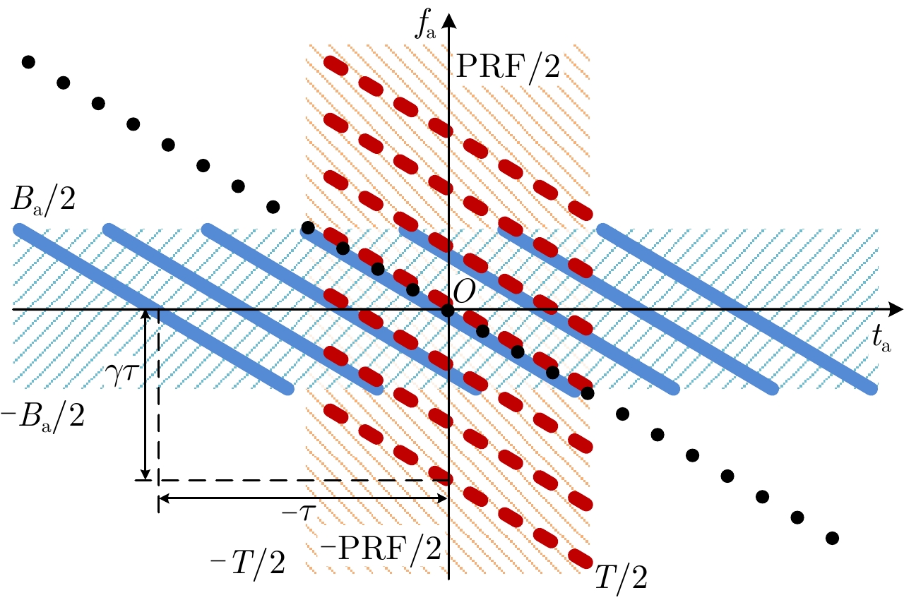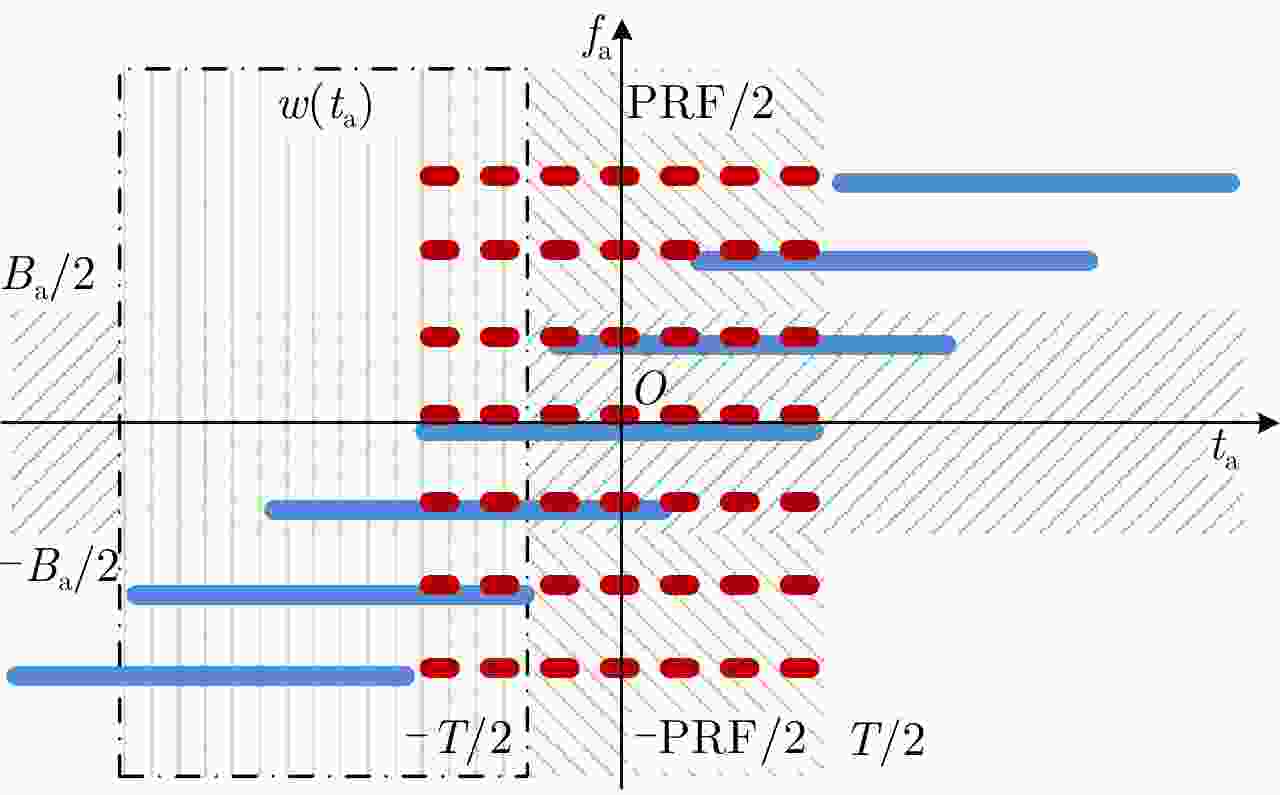参数名称 参数值 带宽(MHz) 300 脉冲宽度(μs) 0.5 调频率(Hz/s) 6×1014 波长(m) 0.03 天线孔径长度(m) 1 波束宽度(rad) 0.03 最短斜距(km) 10 平台速度(m/s) 150 斜视角(°) 0 多普勒带宽(Hz) 300 合成孔径时间(s) 2 -