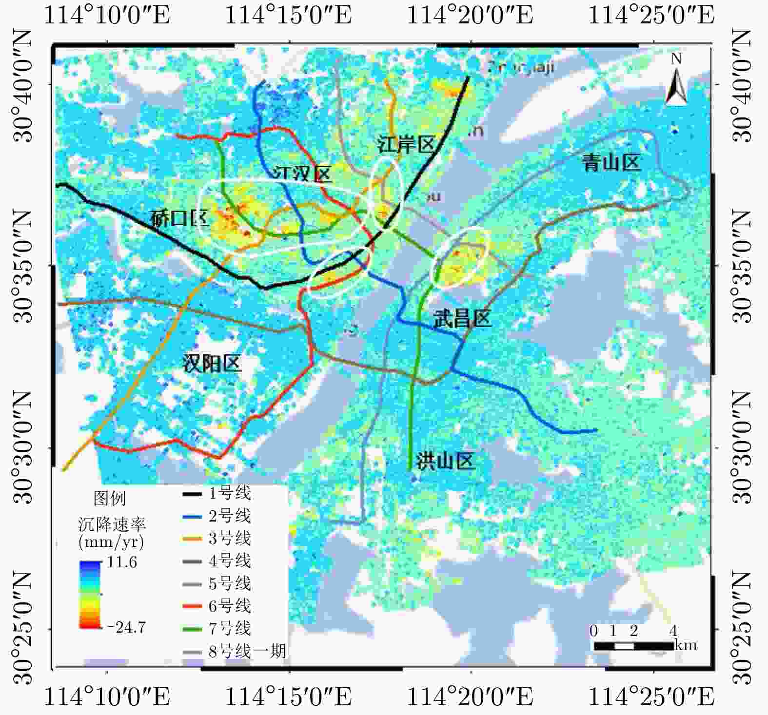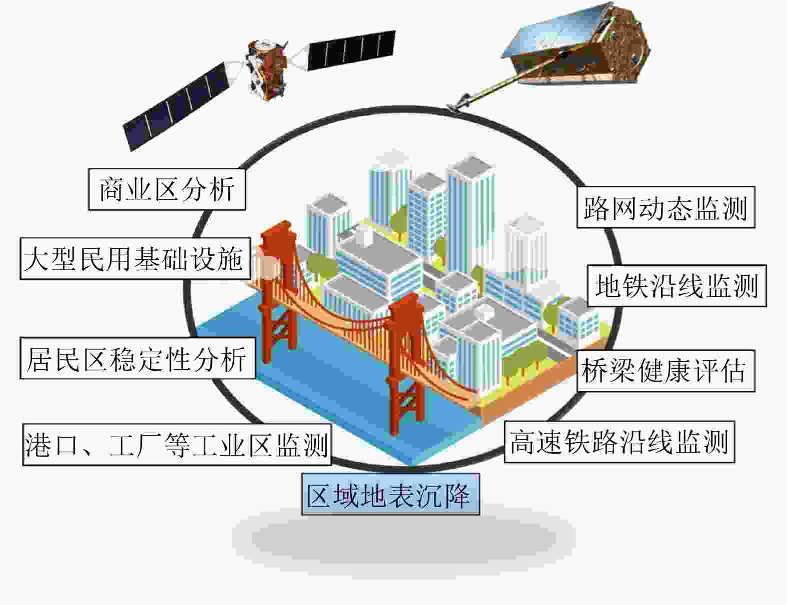 摘要: 城市地表和人工建筑的稳定性监测一直是城市安全的重要监测内容之一。星载合成孔径雷达干涉测量(InSAR)技术以其大范围、高精度、高空间密度的形变获取能力,被广泛用于大范围地表形变监测。近年来,随着星载SAR系统分辨率的不断提高,时序InSAR技术越来越多地应用于重要基础设施的监测。该文结合作者团队长期基于时序InSAR技术在城市地区监测研究经历,总结和回顾了团队关于时序InSAR方法在城市动态监测中的一些典型应用,包括城市机场、高架路网、桥梁、铁路和地铁沿线等,根据多年获取的高分辨率TerraSAR-X影像、Cosmo-SkyMed影像以及后续免费获取的Sentinel-1影像等多种数据以及监测研究中发现的研究问题及相应解决方法,在应用中取得了良好的效果,展现了时序InSAR技术在城区目标精细监测中的潜力。Abstract: The dynamic monitoring of the geological environment in urban areas, including the monitoring of the urban surface stability and detailed monitoring of man-made objects on the surface, is very important for ensuring effective and safe urban development. Spaceborne time-series InSAR technology is widely used to monitor urban deformation due to its large scale, high accuracy, and ability to acquire high-density spatial deformations. In recent years, with the operation of high-resolution satellite missions, time-series InSAR has also been widely used to monitor infrastructures. In this paper based on our long-term monitoring research experience in urban areas using the time-series InSAR technique, we review the application of some typical time-series-InSAR cases to the urban environment, including the monitoring of urban surface displacement and typical large infrastructures, including the airports, elevated road networks, bridges, railways, and subways. Based on various datasets including high-resolution TerraSAR-X images, Cosmo-SkyMed images, and recent Sentinel-1 images obtained at no cost, and the research problems and corresponding solutions identified in published monitoring research, we found good results to have been achieved using this application. With the implementation of more and more satellite missions, this technology will provide more possibilities for urban monitoring.