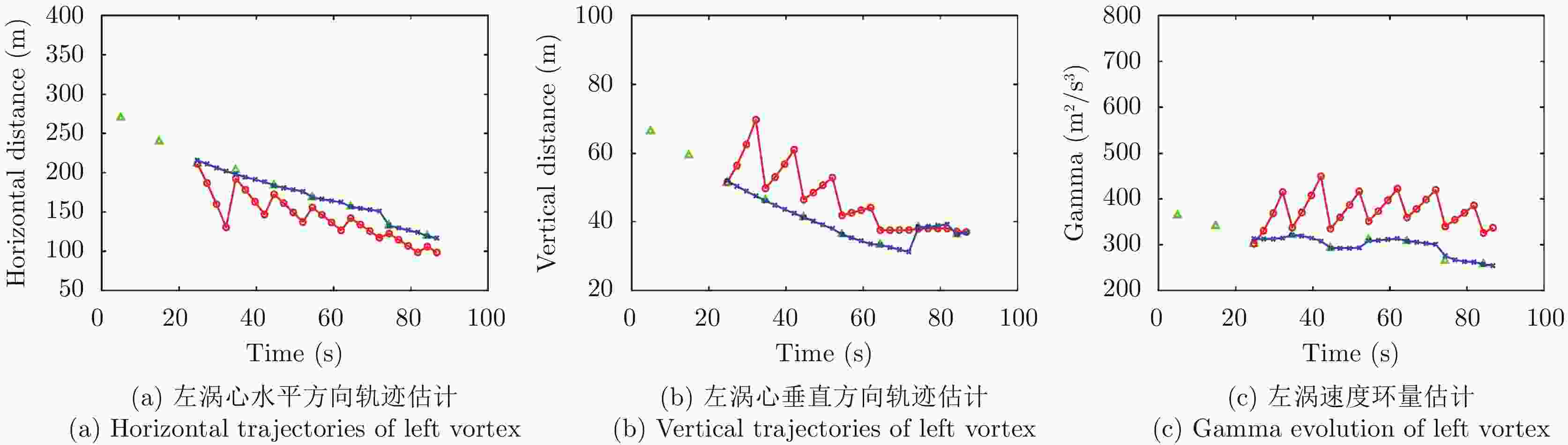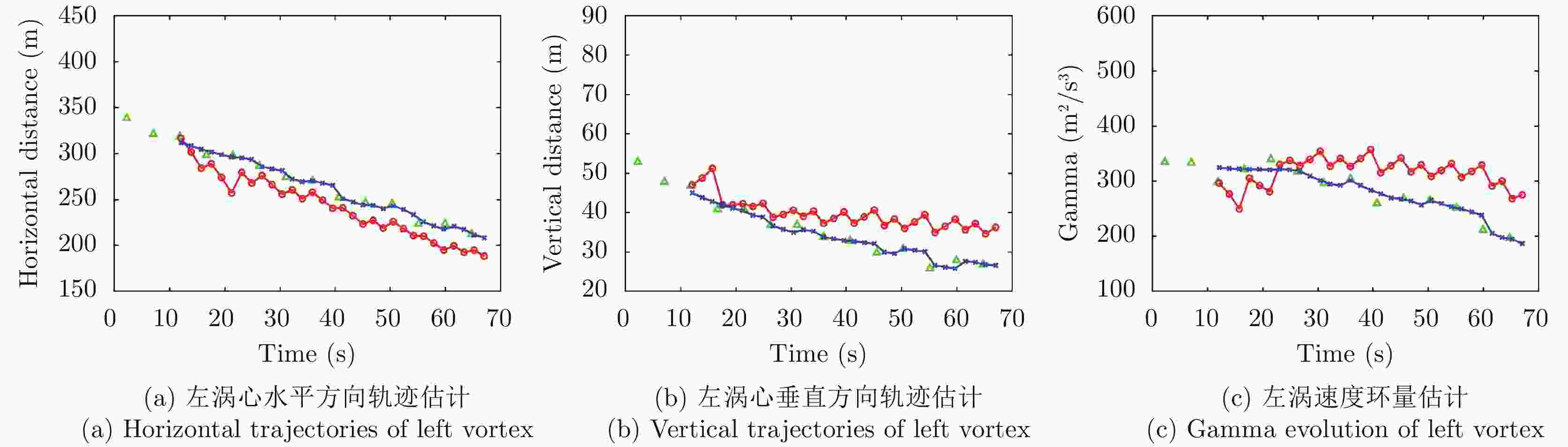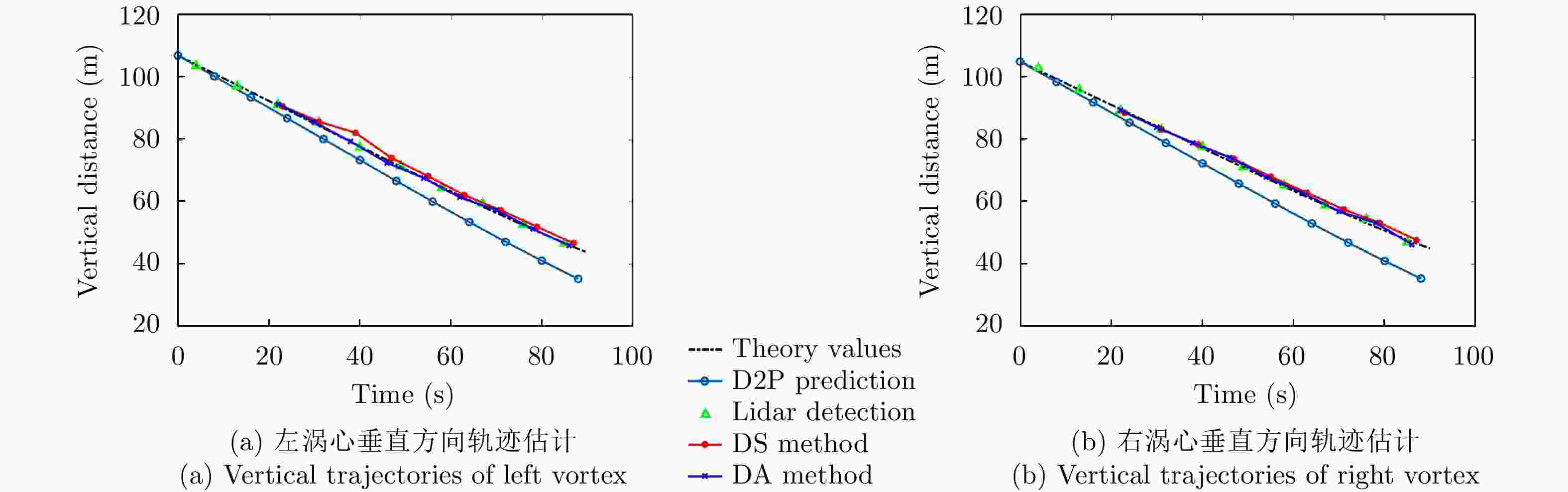 表 1 激光雷达探测参数设置 Table 1. Detection parameters of the Lidar 主要参数 量值 雷达波长 1.55 μm 脉冲宽度 170 ns 时间窗长度 120 ns 距离门宽度 21 m 采样率 50 MHz 脉冲积累数 1500 信号噪声比 –5 dB 扫描速度 2°/s 扫描范围 0~15° 表 2 飞机尾流预测位置相对误差 Table 2. Relative error of predict trajectories 主要参数 DS method (%) DA method (%) 横向风