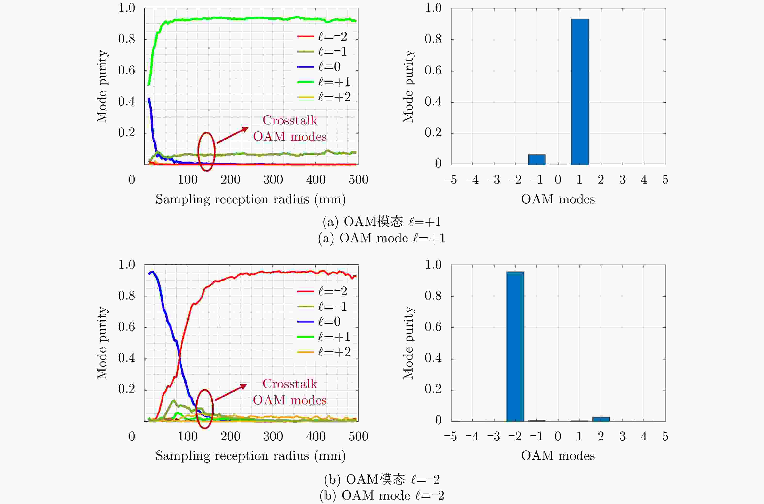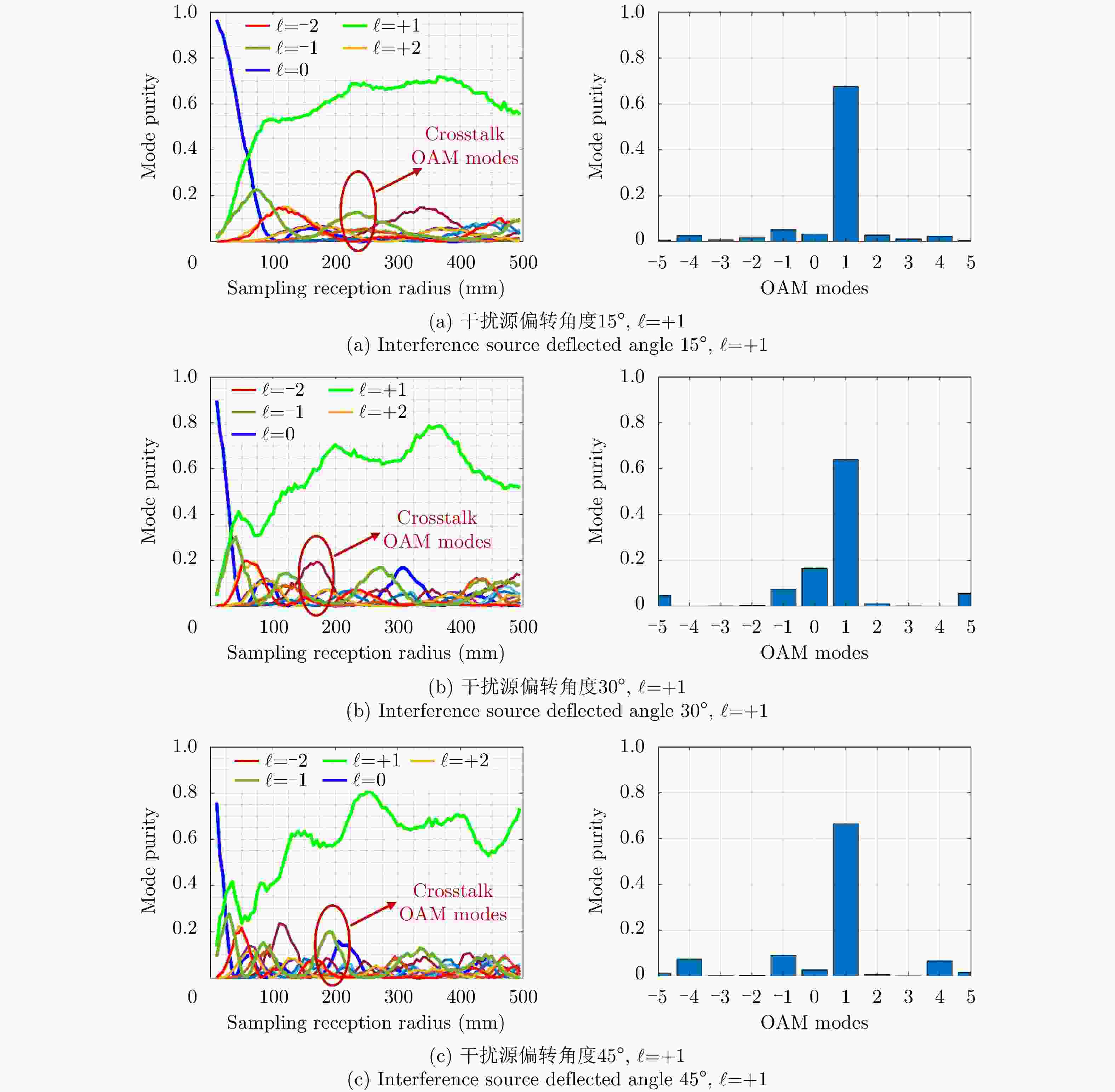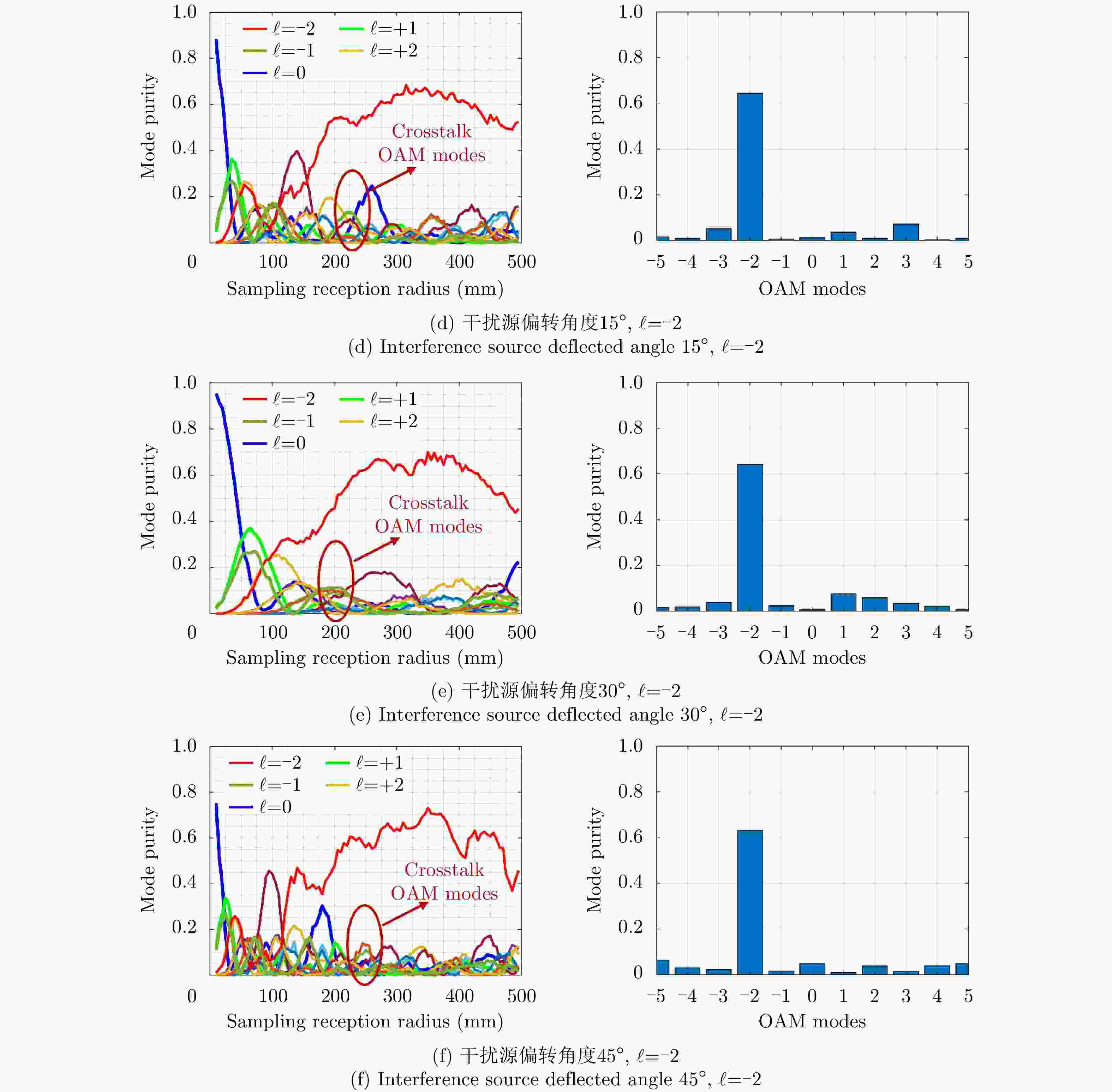 Tilted angle OAM mode $\ell $ = +1 OAM mode $\ell $ = –2 Match Interference Match Interference 15° –19.07 –29.4 –31.44 –45.25 30° –18.79 –31.7 –28.37 –48.32 45° –18.55 –36.4 –31.41 –42.69 -