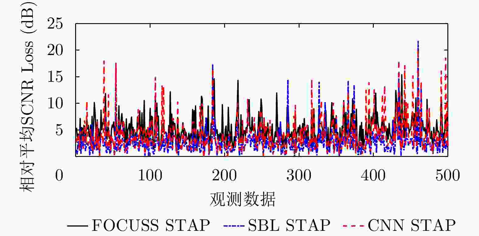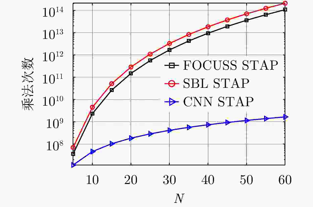 方法 ≤1 dB ≤3 dB ≤5 dB ≤7 dB ≤9 dB FOCUSS STAP 5.4% 35.0% 70.0% 87.0% 94.8% SBL STAP 44.0% 85.2% 90.0% 97.8% 98.0% CNN STAP 32.2% 73.6% 84.8% 92.0% 96.3% 表 3 运算复杂度分析