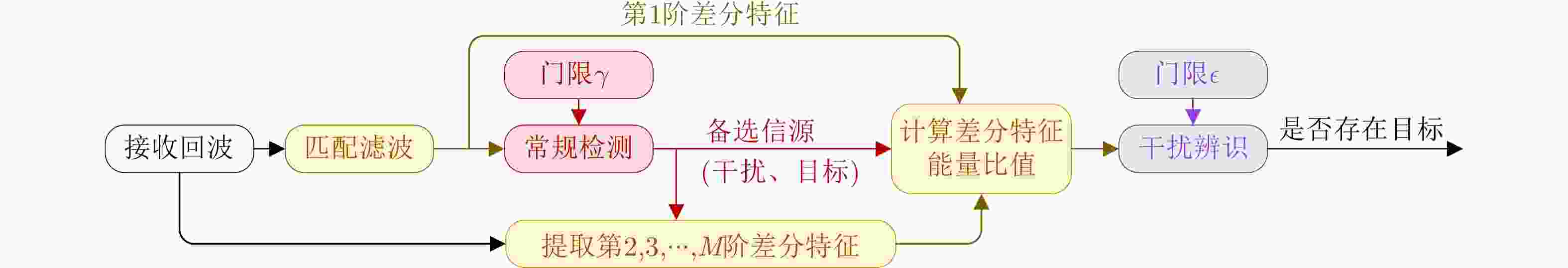 摘要: 间歇采样转发式干扰机通过对其接收到的雷达发射信号进行采样、存储、处理和多次转发,在雷达接收端形成逼真的假目标干扰效果。为提升上述干扰场景下的雷达探测性能,该文提出了一种新的信号差分特征提取方法,在此基础上,利用目标回波和干扰信号在差分特征空间的差异设计判决准则,从而在有效辨识并抑制干扰的同时实现目标检测。仿真结果表明:该方法干扰抑制效果显著,相比于3种典型的时频域滤波算法等效信噪比改善4.2 dB以上。Abstract: The interrupted-sampling repeater jammer can sample, store, process and transmit part of the radar transmitter signal multiple times and the fake targets will form on the radar receiver. To improve the radar performance in the aforementioned jamming scenario, in this study, a new signal differential feature extraction method is proposed, and a judgment criterion is formulated based on the difference between the target echo and the Interrupted-Sampling Repeater Jamming (ISRJ) in the differential feature space to effectively identify and suppress the ISRJ while achieving target detection. Simulation results show that the proposed method has a remarkable ISRJ suppression performance. The equivalent signal-to-noise ratio is improved by at least 4.2 dB compared with three typical time-frequency domain filtering algorithms.