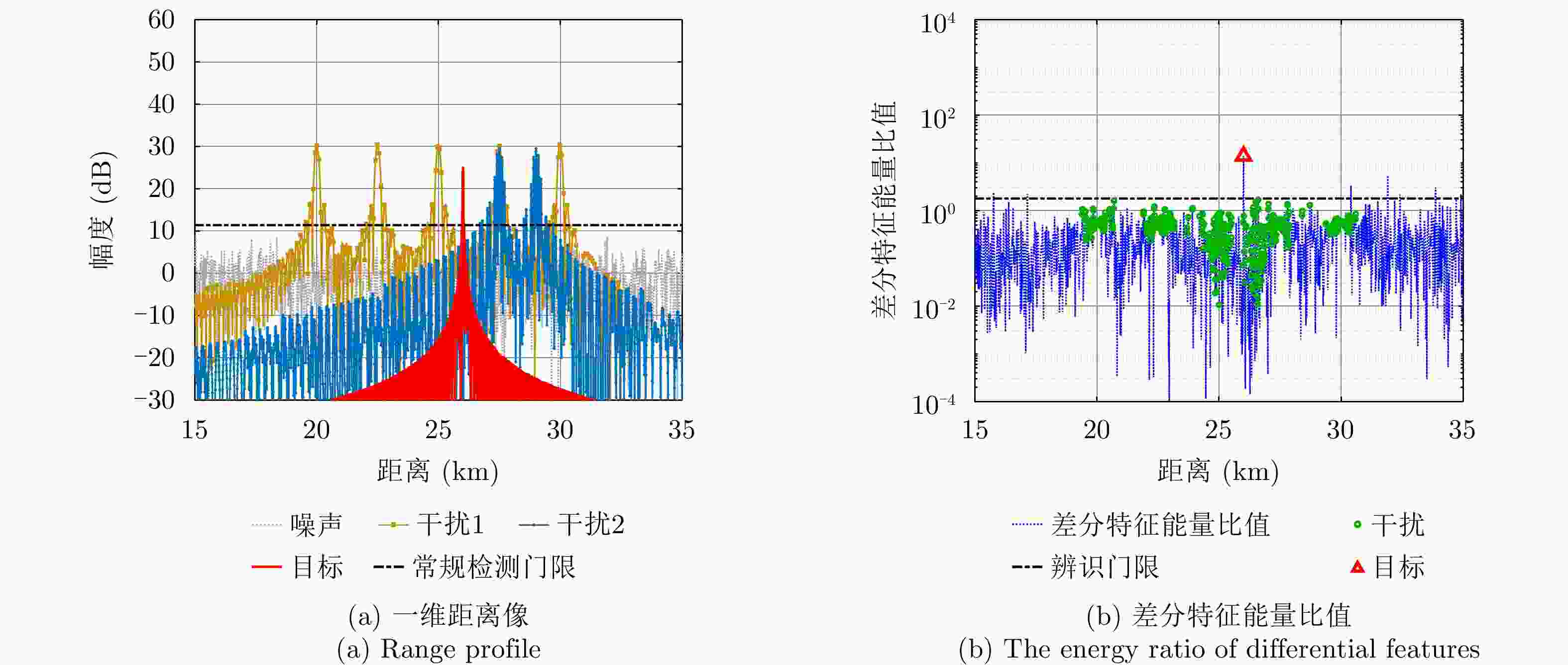 目标参数 数值 干扰参数 数值 脉宽(μs) 20 脉宽(μs) 10 带宽(MHz) 2 带宽(MHz) 1 脉压后信噪比(dB) 33 脉压后信噪比(dB) 45 -