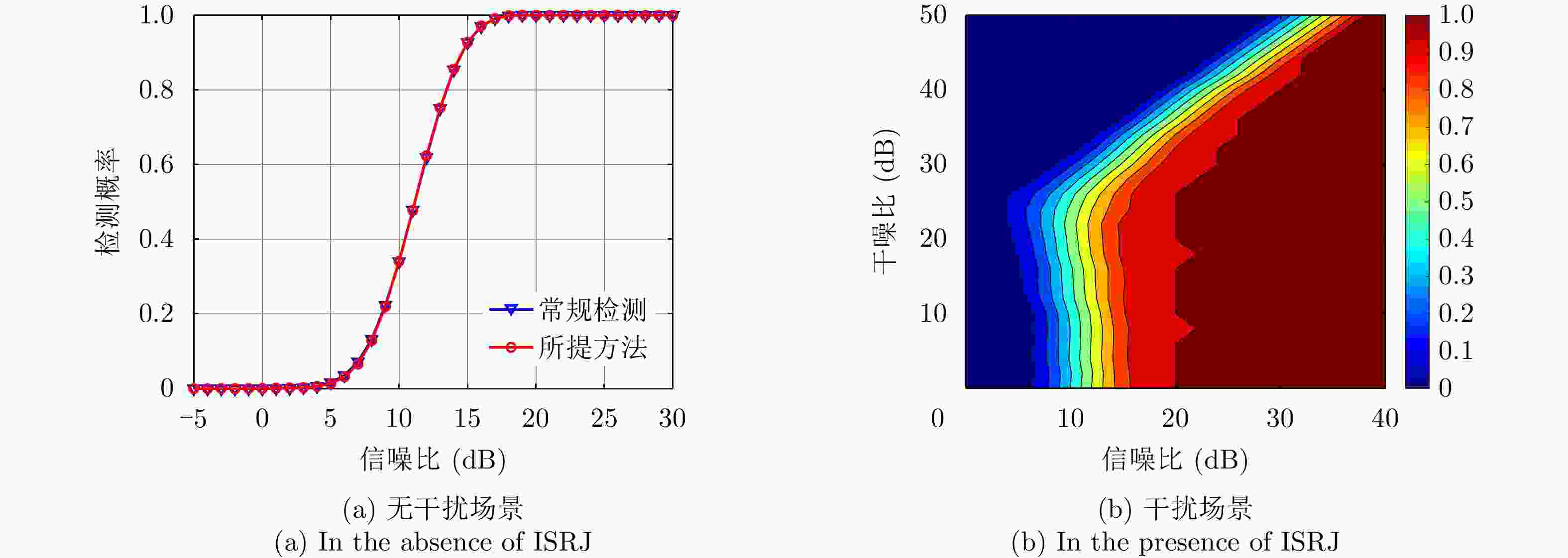 Table 4. When the detection probability is 95%, the required signal-to-noise ratios under different jamming-to-noise ratios