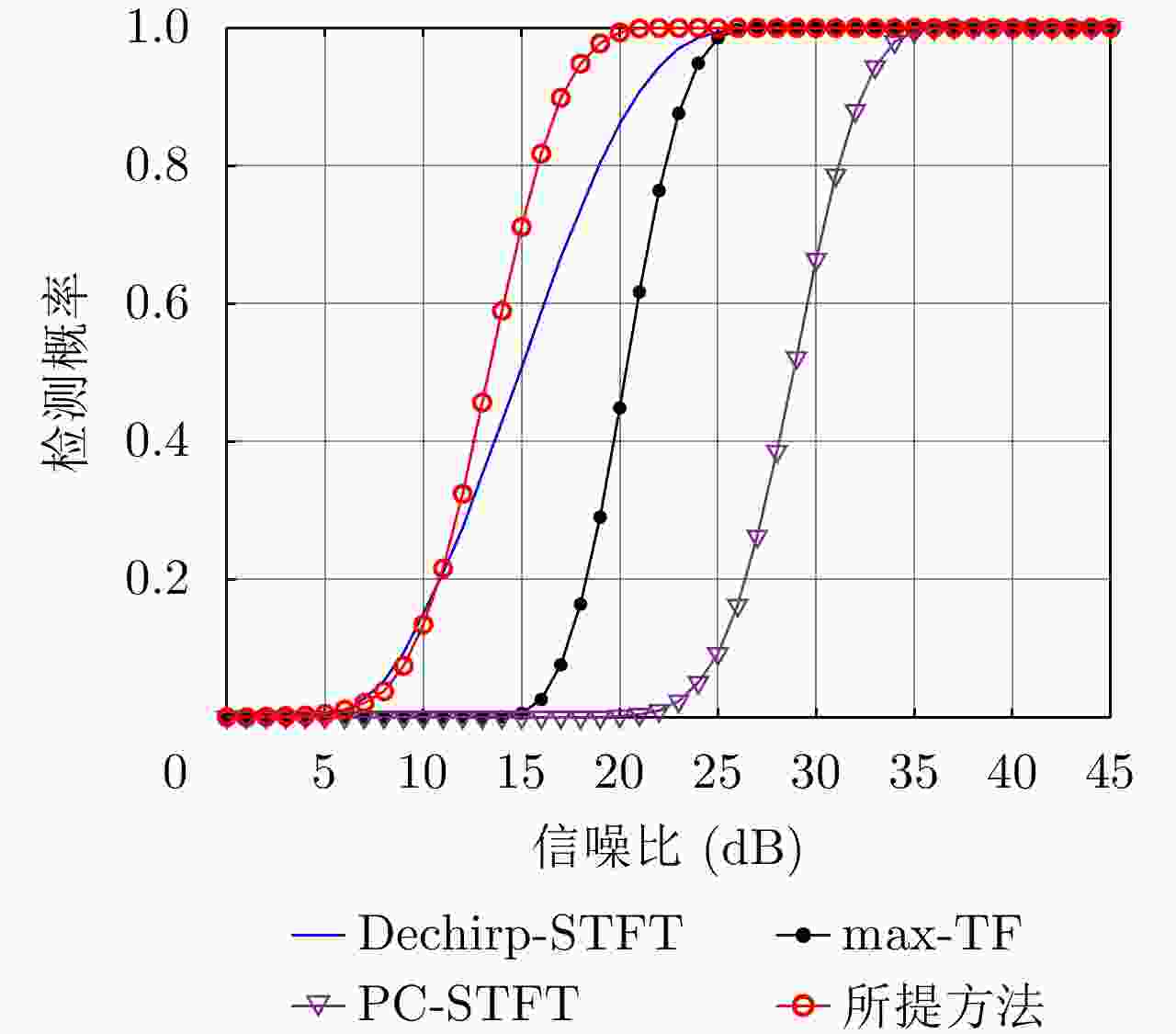 参数 数值 常规检测门限 13.82 最高差分阶数 6 辨识门限 1.79 表 4 不同干噪比下,检测概率为95%时所需的信噪比