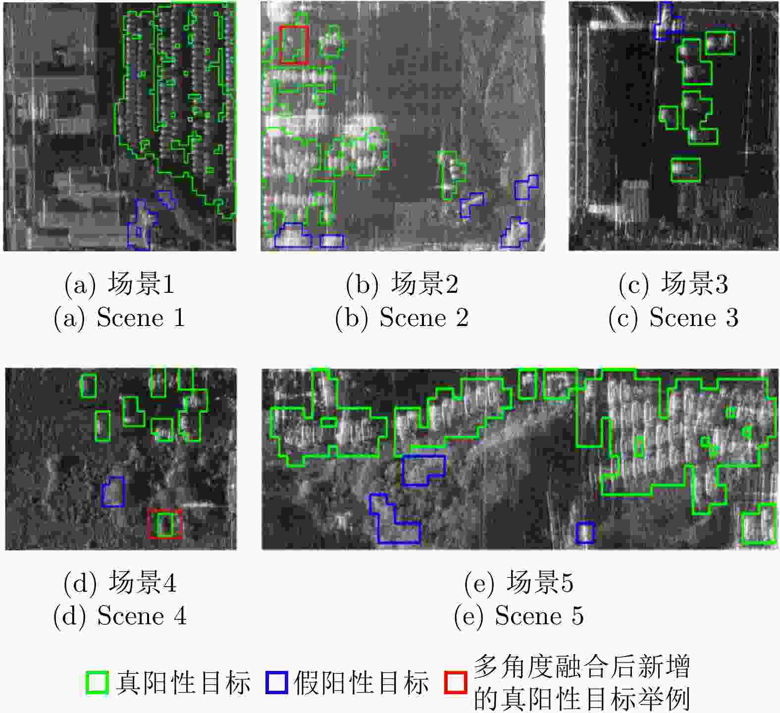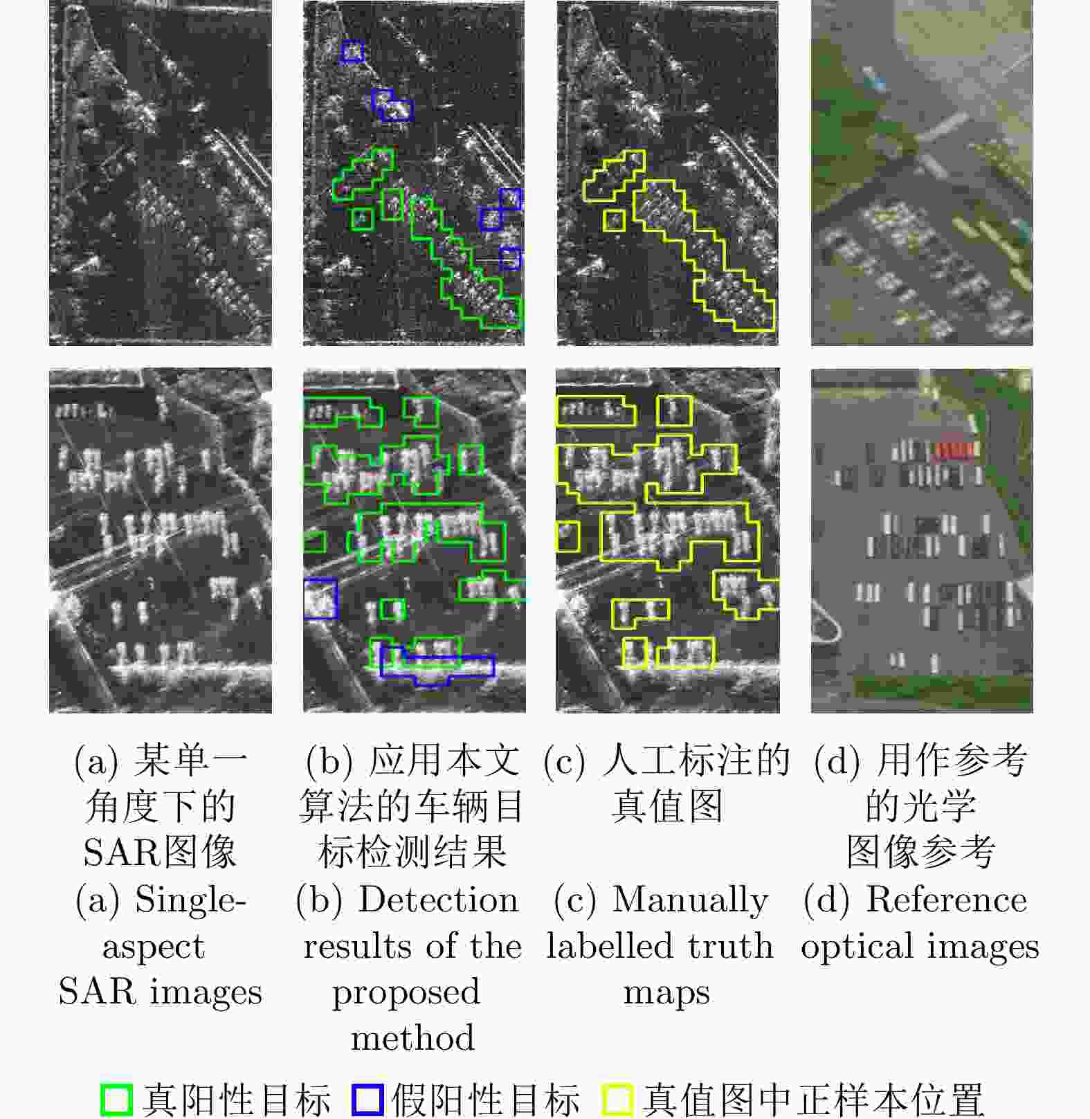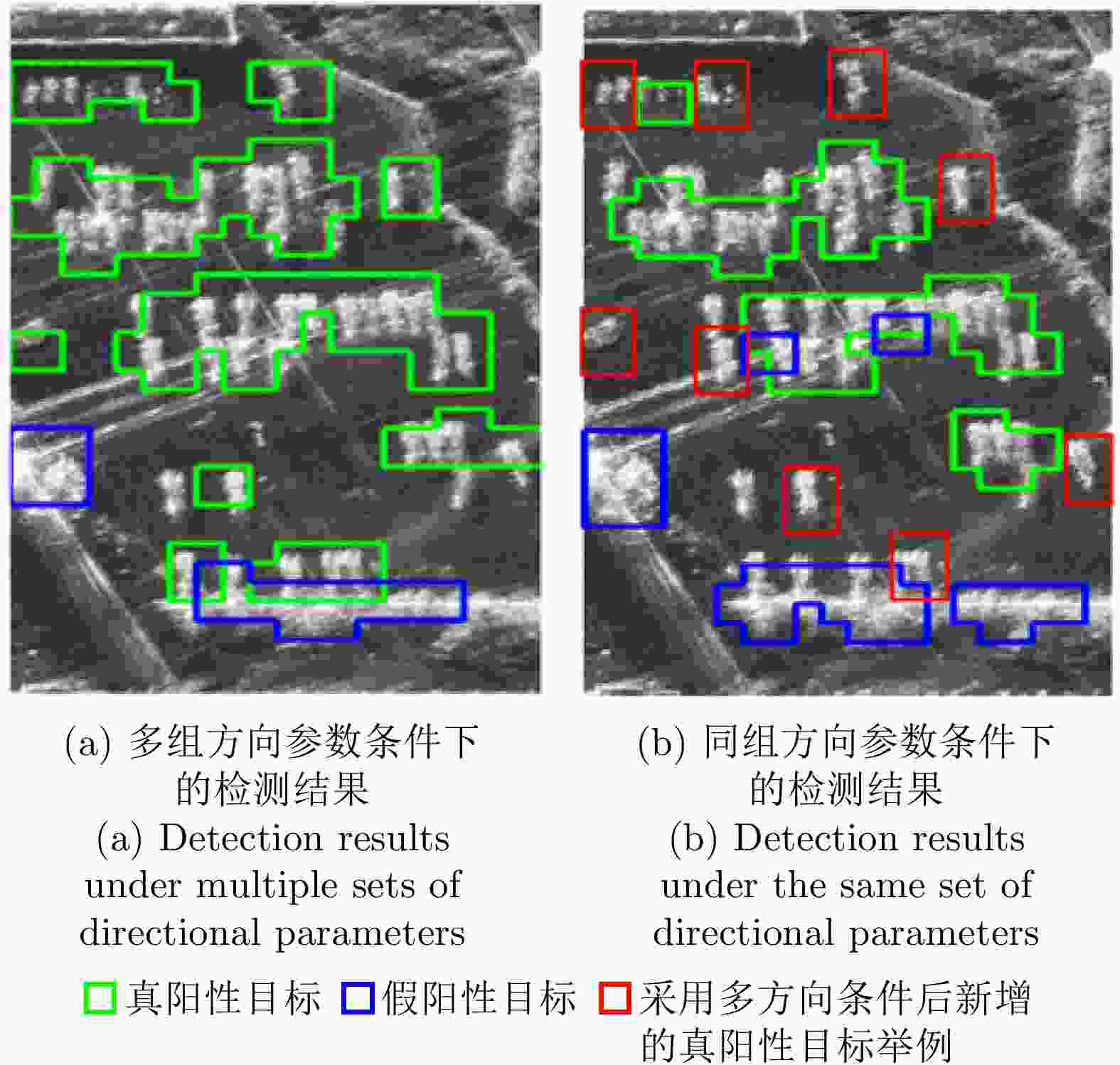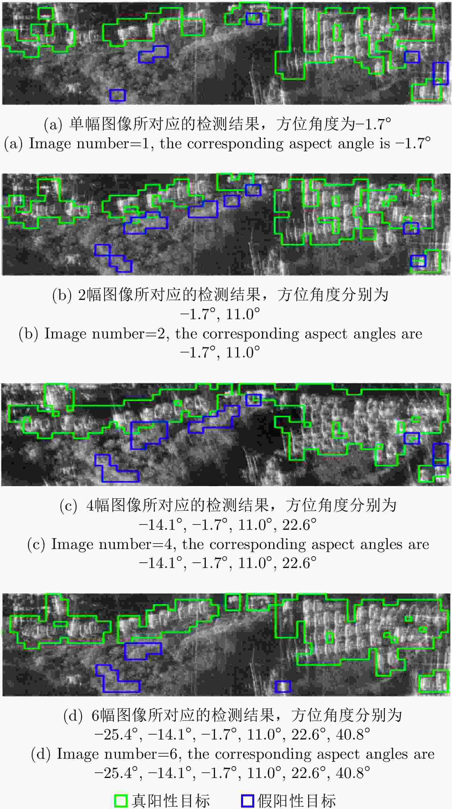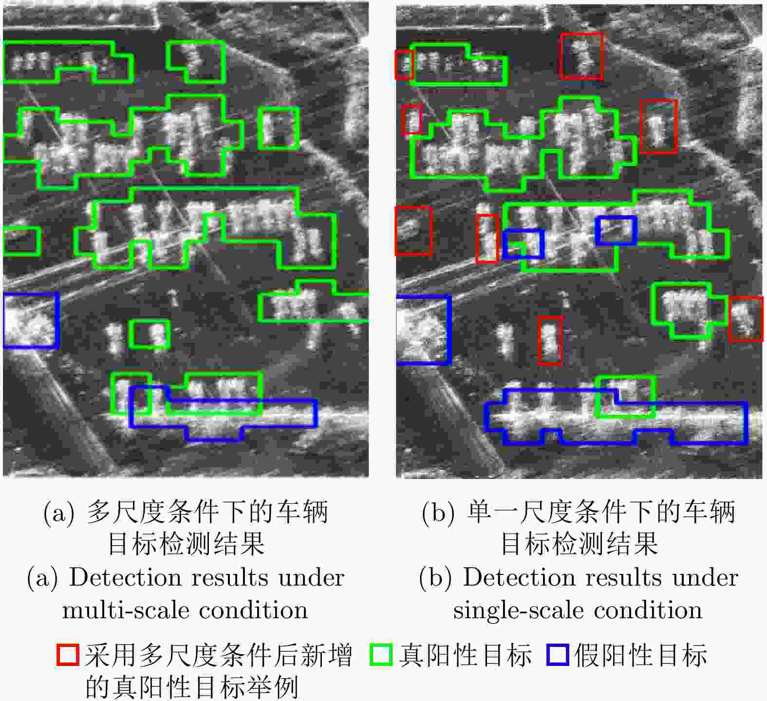 摘要: 针对城市场景中车辆目标分布状态随机,在检测过程中容易受到环境因素干扰等问题,提出一种将多角度合成孔径雷达(SAR)图像用于静止车辆目标提取的检测算法。在特征提取阶段,设计了一种适用于多角度图像上车辆目标的多尺度旋转不变的Gabor滤波器奇分量比例算子(MR-GOFRO)特征提取方法,对原有的GOFRO特征进行了滤波形式、特征尺度、特征方向、特征层次等4个方面的扩展,使其能够适应车辆目标在方向、尺度、形态等方面可能发生的变化。在图像融合阶段,设计了加权的非负矩阵分解(W-NMF)方法,根据特征质量调整来源于不同图像的特征权重,减少由于不同角度间相互干扰造成融合特征质量下降的现象。将该文所提出方法在不同的机载多角度图像数据集上进行验证,实验结果表明,该文提出的特征提取方法与同类方法相比,检测精度平均提升了3.69%;该文提出的特征融合方法与同类方法相比,检测精度提升了4.67%。Abstract: Vehicle targets in urban scenes have the characteristics of random distribution and can be easily disturbed by environmental factors during the detection process. Given the above issues, this paper proposes a detection method that utilizes multi-aspect Synthetic Aperture Radar (SAR) images for stationary vehicle target extraction. In the feature extraction stage, a novel feature extraction method called Multiscale Rotational Gabor Odd Filter-based Ratio Operator (MR-GOFRO) is designed for vehicle targets in multi-aspect SAR images, where the original GOFRO features are improved from four aspects—filter form, feature scale, feature direction and feature level. The improvement allows MR-GOFRO to adapt to possible variations in the target direction, scale, morphology, etc. In the image fusion stage, a Weighted-Non-negative Matrix Factorization (W-NMF) method is developed to adjust the feature weights from various images according to the feature quality. This method can reduce the quality degradation of the fusion features due to mutual interference between different aspects. The proposed method is verified on various airborne multi-aspect image datasets. The experimental results revealed that the feature extraction and feature fusion methods proposed in this paper enhance the detection accuracy by an average of 3.69% and 4.67%, respectively, compared with similar methods.