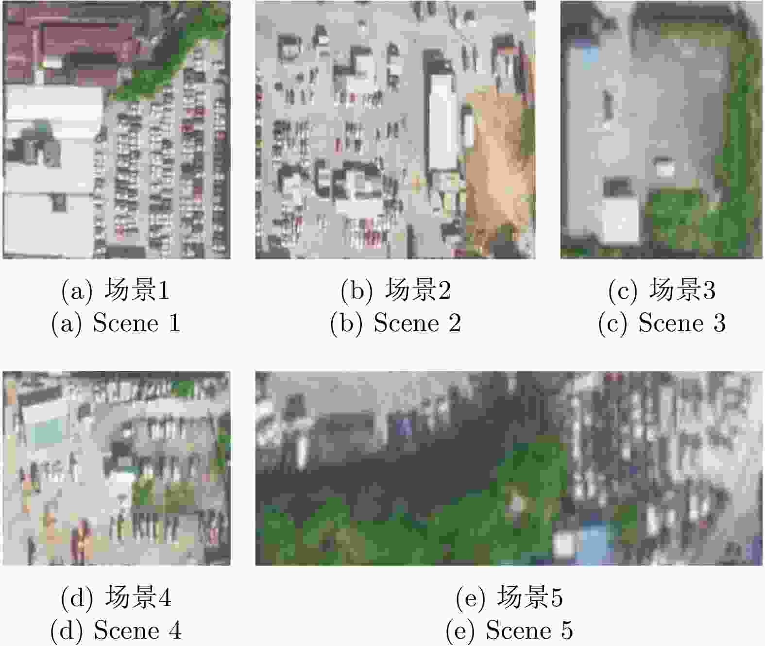 序列号 精确率(%) 准确率(%) 漏警率(%) 虚警率(%) 场景1 85.40 93.49 6.97 6.32 场景2 72.49 94.11 11.39 5.07 场景3 71.36 97.57 8.00 2.11 场景4 72.50 96.48 5.07 1.76 场景5 82.79 89.63 10.13 7.88 平均值 76.90 94.25 8.31 4.63 表 7 舟山飞行实验数据集中不同场景车辆目标检测结果的衡量指标