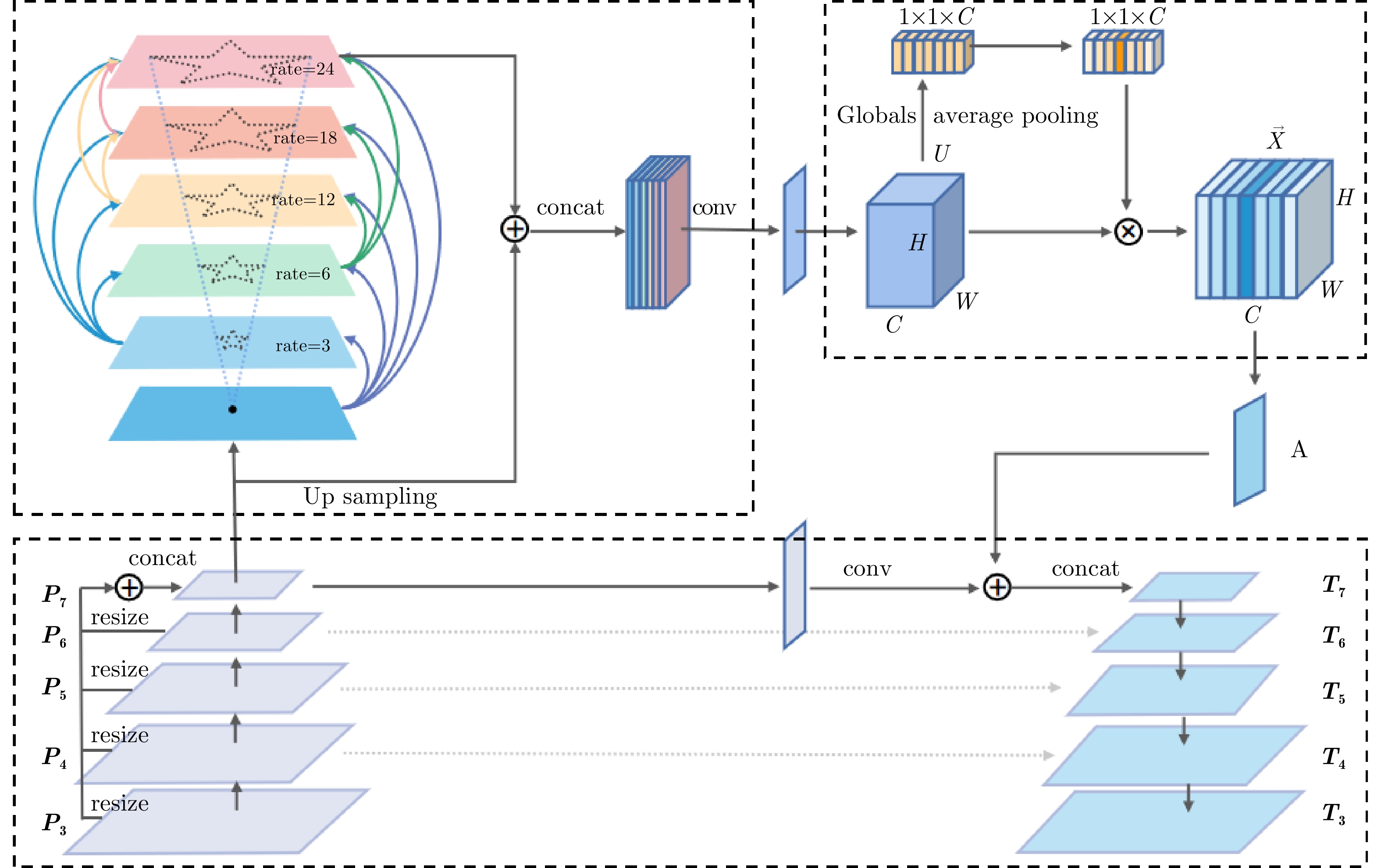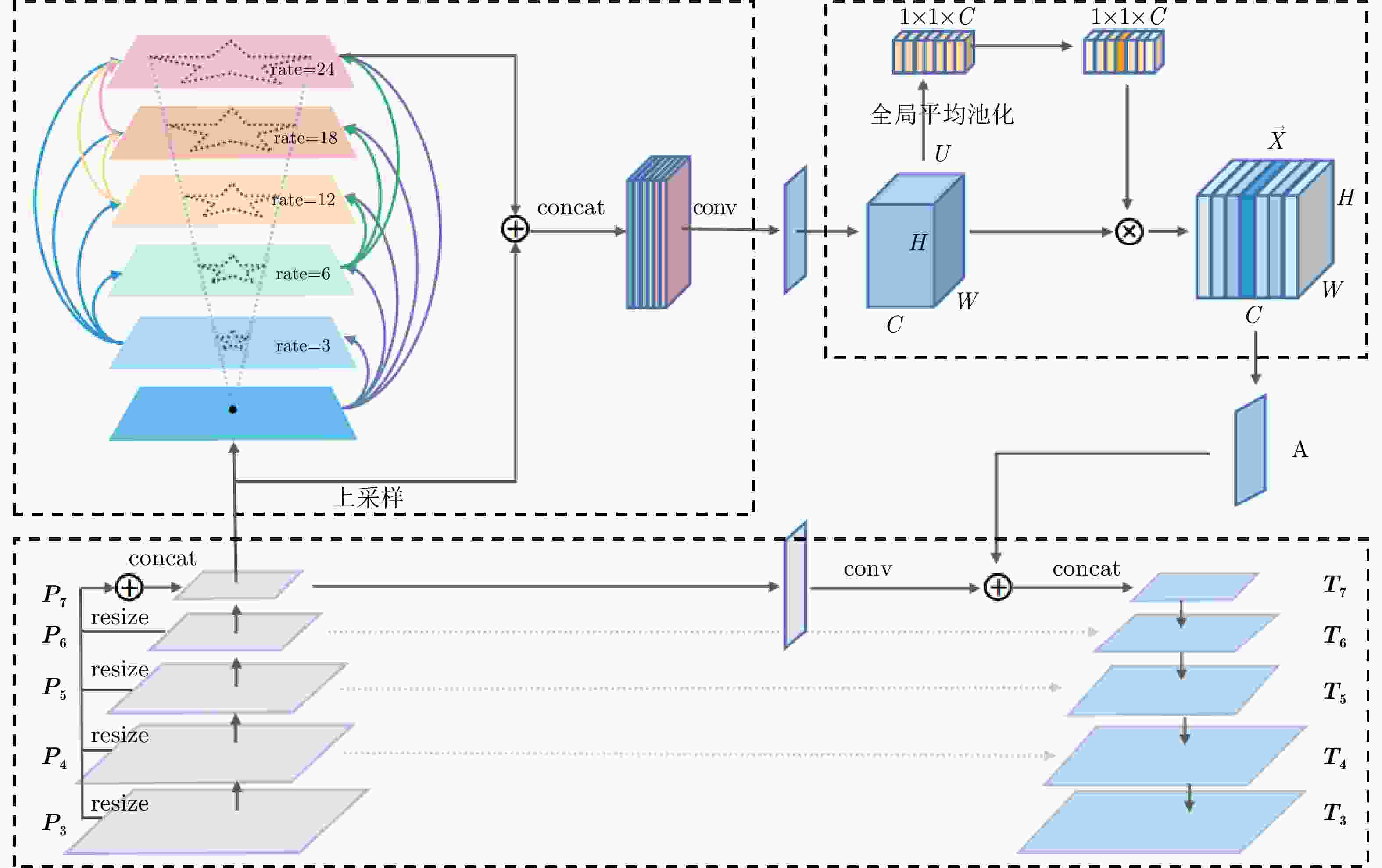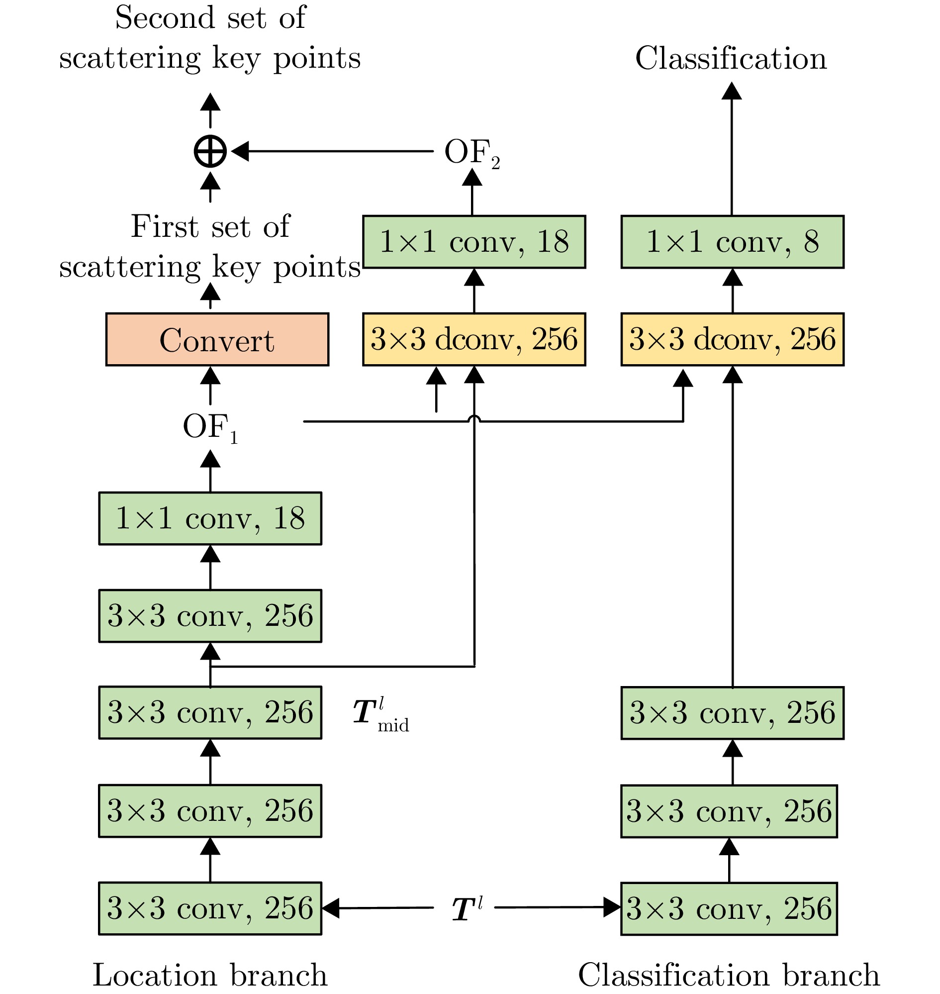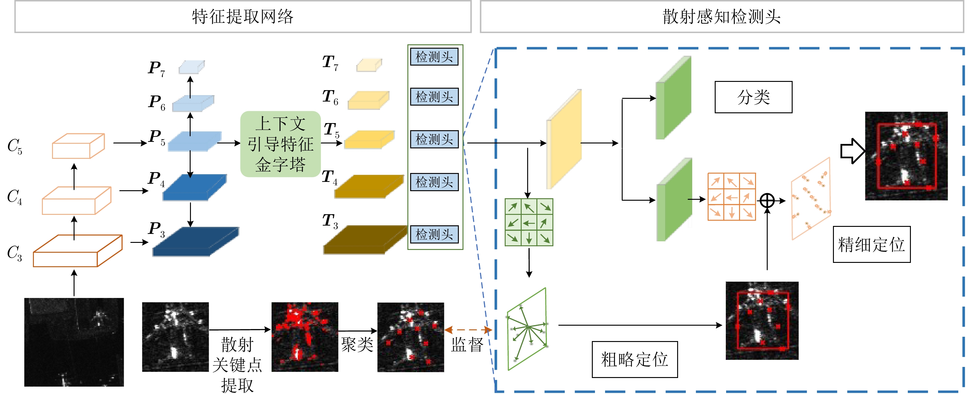 摘要: 针对合成孔径雷达(SAR)图像中飞机散射点离散以及背景强干扰造成虚警的问题,该文提出了一种结合散射感知的SAR飞机检测识别方法。一方面,通过上下文引导的特征金字塔模块来增强全局信息,减弱复杂场景中强干扰的影响,提高检测识别的准确率。另一方面,利用散射关键点对目标进行定位,设计散射感知检测模块实现对回归框的细化校正,增强目标的定位精度。为了验证方法有效性、同时促进SAR飞机检测识别领域的研究发展,该文制作并公开了一个高分辨率SAR-AIRcraft-1.0数据集。该数据集图像来自高分三号卫星,包含4,368张图片和16,463个飞机目标实例,涵盖A220, A320/321, A330, ARJ21, Boeing737, Boeing787和other共7个类别。该文将提出的方法和常见深度学习算法在构建的数据集上进行实验,实验结果证明了散射感知方法的优异性能,并且形成了该数据集在SAR飞机检测、细粒度识别、检测识别一体化等不同任务中性能指标的基准。Abstract: This study proposes a Synthetic Aperture Radar (SAR) aircraft detection and recognition method combined with scattering perception to address the problem of target discreteness and false alarms caused by strong background interference in SAR images. The global information is enhanced through a context-guided feature pyramid module, which suppresses strong disturbances in complex images and improves the accuracy of detection and recognition. Additionally, scatter key points are used to locate targets, and a scatter-aware detection module is designed to realize the fine correction of the regression boxes to improve target localization accuracy. This study generates and presents a high-resolution SAR-AIRcraft-1.0 dataset to verify the effectiveness of the proposed method and promote the research on SAR aircraft detection and recognition. The images in this dataset are obtained from the satellite Gaofen-3, which contains 4,368 images and 16,463 aircraft instances, covering seven aircraft categories, namely A220, A320/321, A330, ARJ21, Boeing737, Boeing787, and other. We apply the proposed method and common deep learning algorithms to the constructed dataset. The experimental results demonstrate the excellent effectiveness of our method combined with scattering perception. Furthermore, we establish benchmarks for the performance indicators of the dataset in different tasks such as SAR aircraft detection, recognition, and integrated detection and recognition.