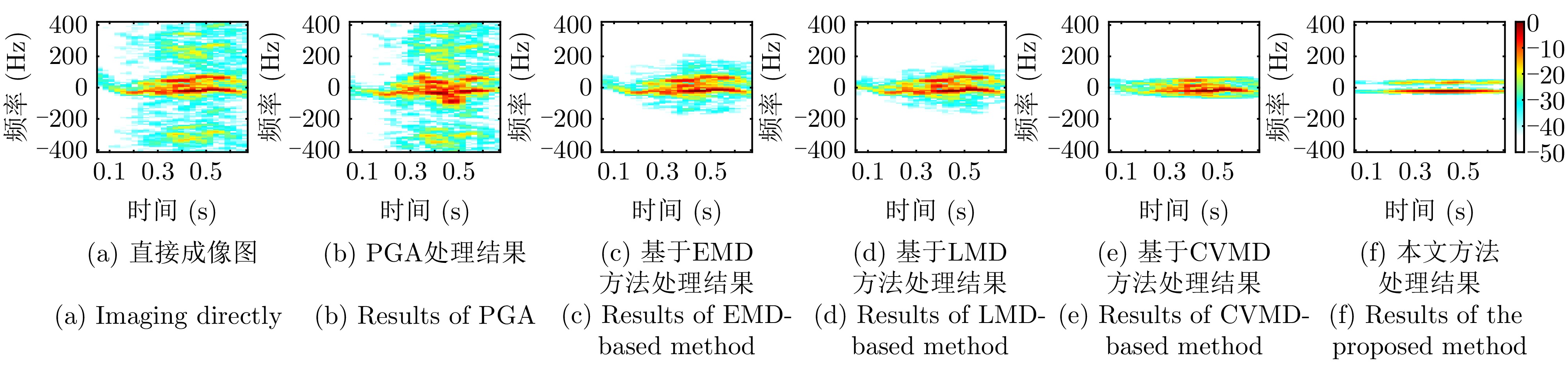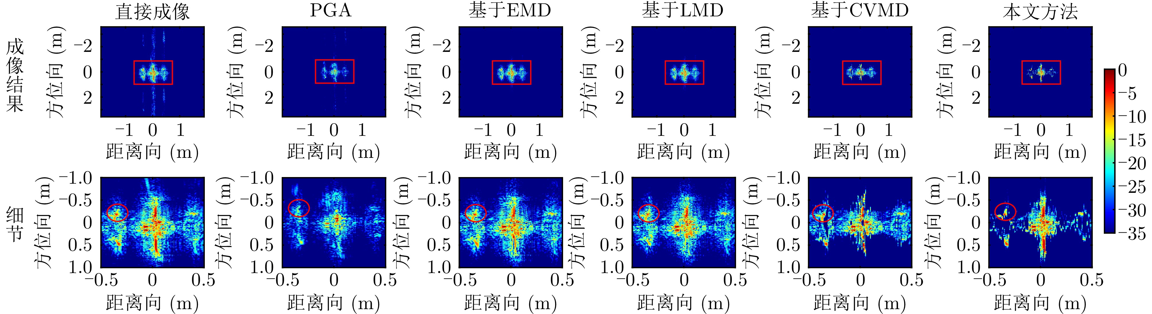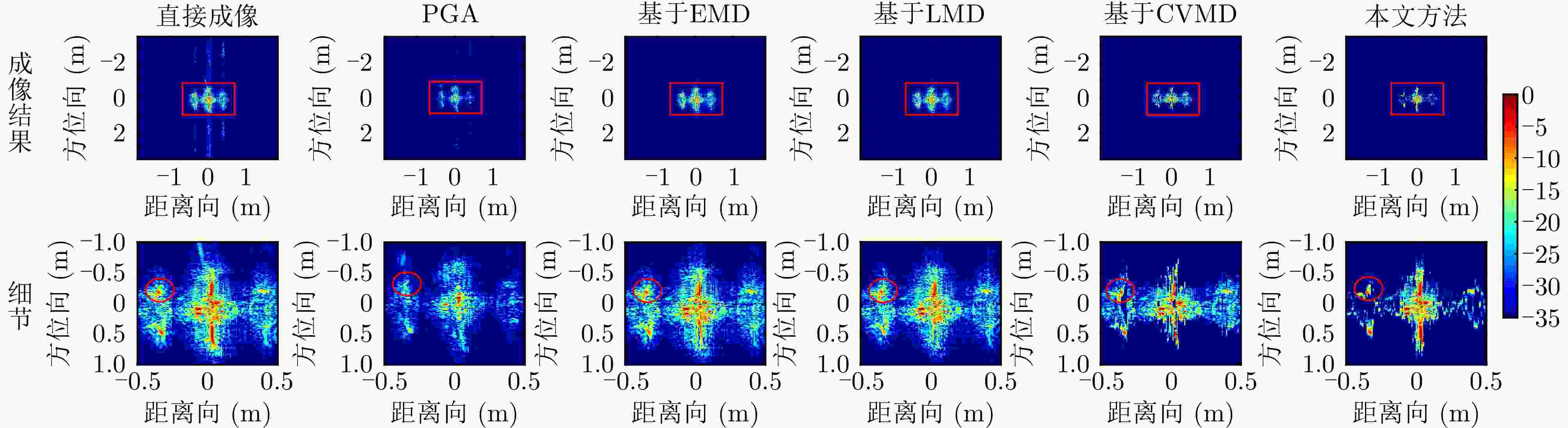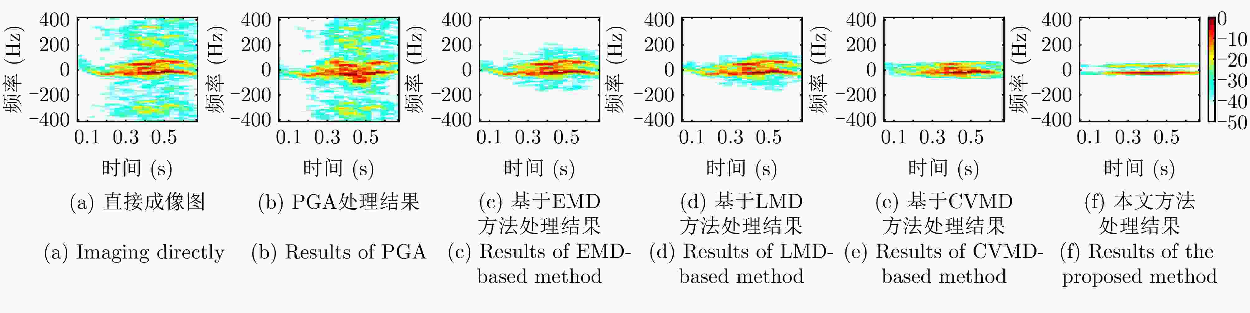 算法 图像熵 对比度 锐度 直接成像 8.19 22.12 5.44E+11 PGA 7.98 23.59 2.90E+11 基于EMD 7.63 23.28 4.17E+11 基于LMD 7.59 23.14 4.11E+11 基于CVMD 7.67 23.66 4.05E+11 本文方法 7.05 25.79 4.33E+11 表 5 不同算法的运算复杂度