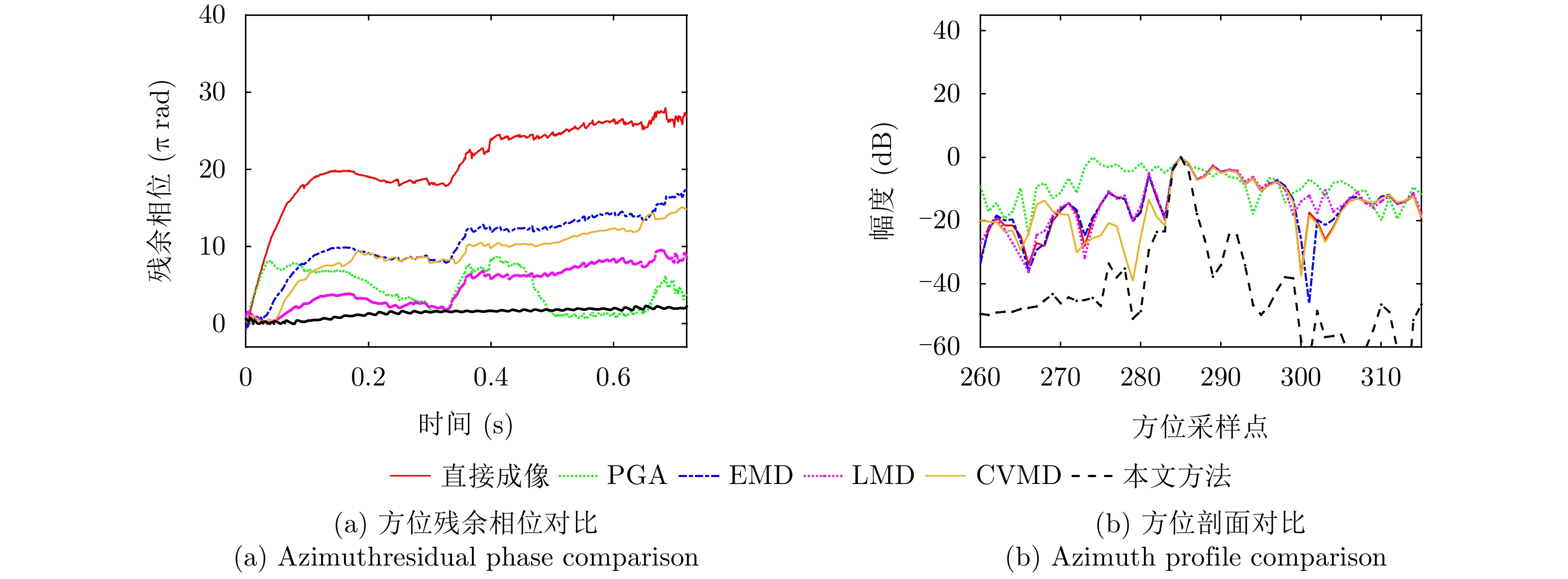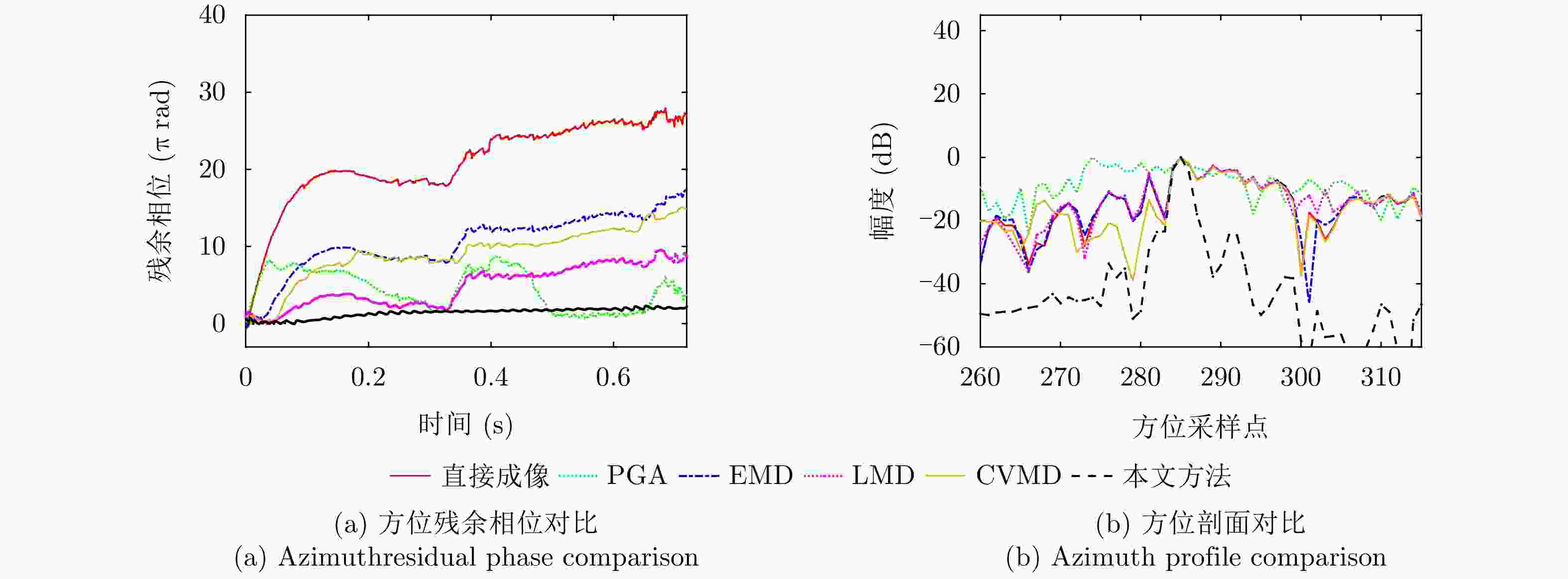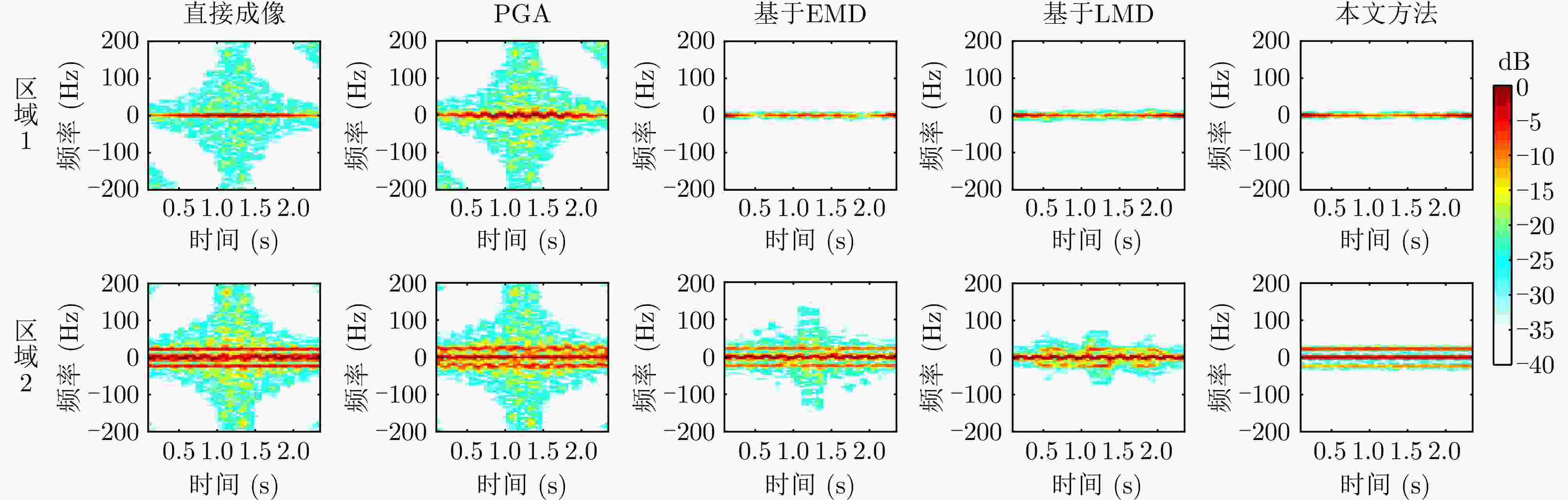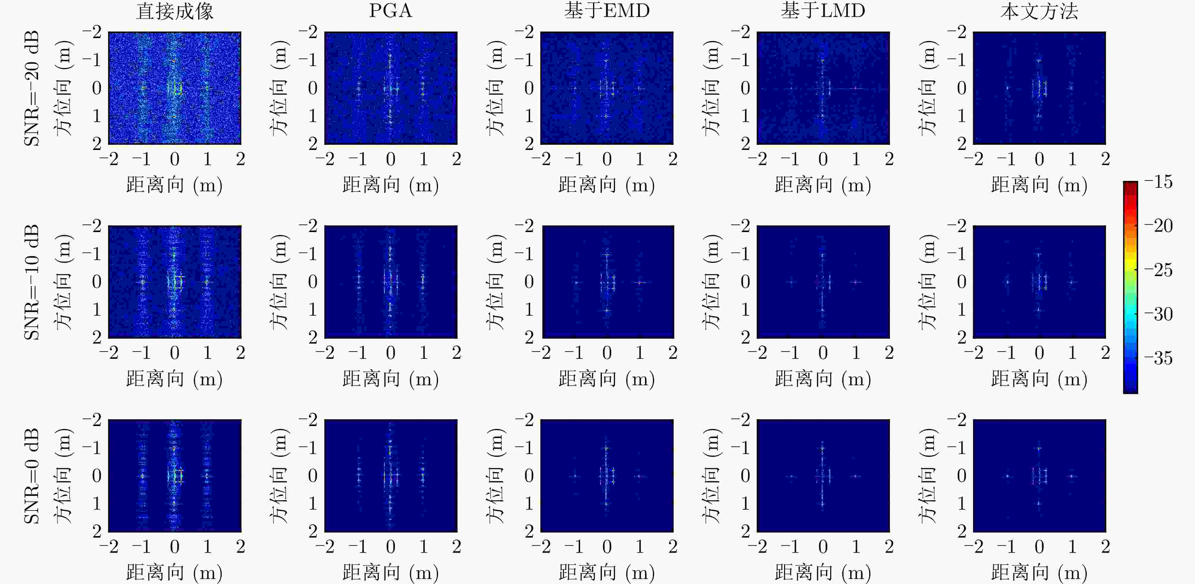 算法 图像熵 对比度 锐度 直接成像 8.19 22.12 5.44E+11 PGA 7.98 23.59 2.90E+11 基于EMD 7.63 23.28 4.17E+11 基于LMD 7.59 23.14 4.11E+11 基于CVMD 7.67 23.66 4.05E+11 本文方法 7.05 25.79 4.33E+11 表 5 不同算法的运算复杂度