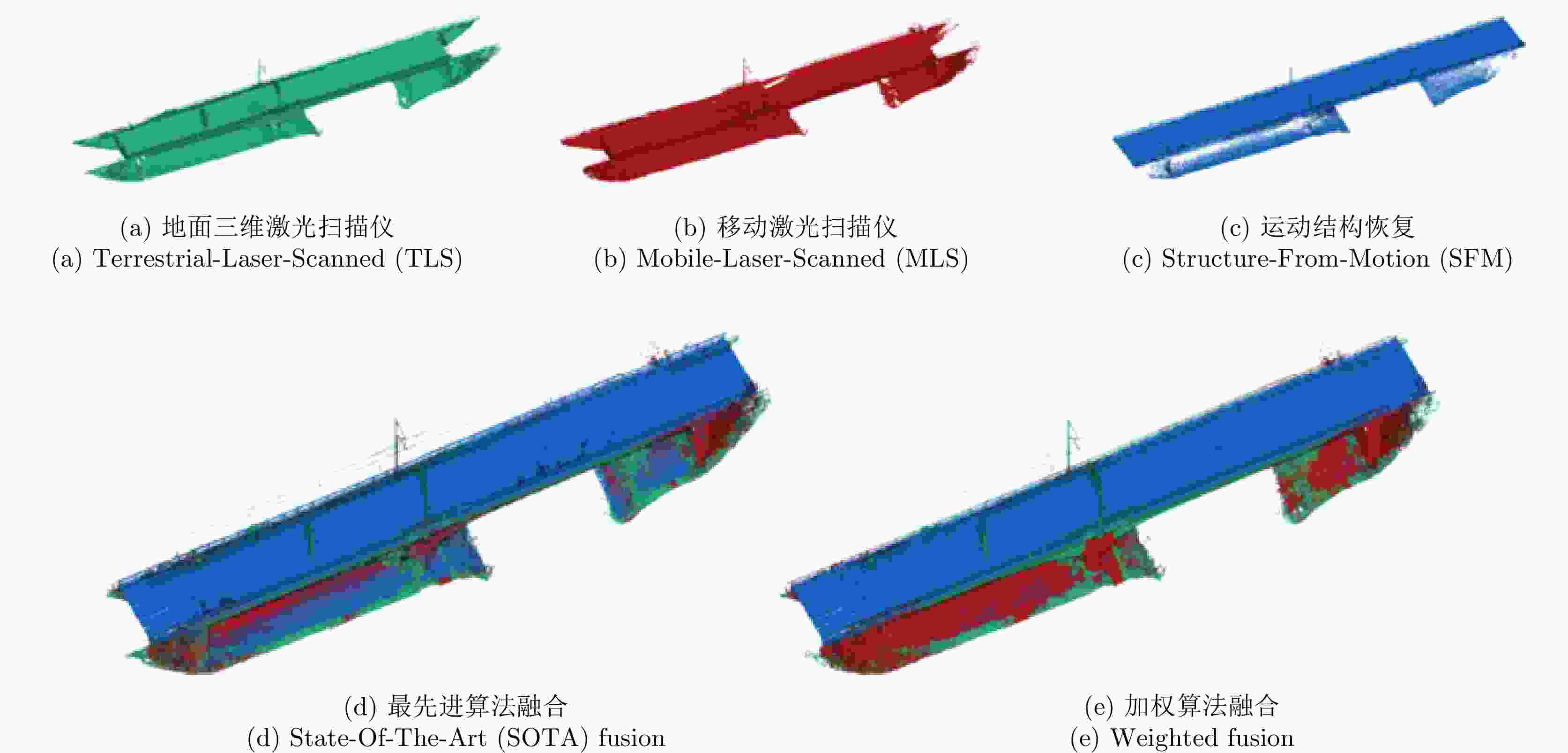 点云数据 点的数量 精度(m) 平均覆盖率(%) 平均密度(标准差)(点/0.1 m3) TLS: Leica P20 12,669,642 0.003 65.64 173 (102) MLS: Navvis VLX2 18,401,315 0.006 65.30 259 (71) SFM: DJI P4 + Pix4D 1,322,080 0.050 43.37 20.0 (8.0) SOTA fusion 32,393,037 0.050 100 372 (146) Weighted fusion 23,808,697 0.025 100 266 (14) 表 2 点云融合相关数据集