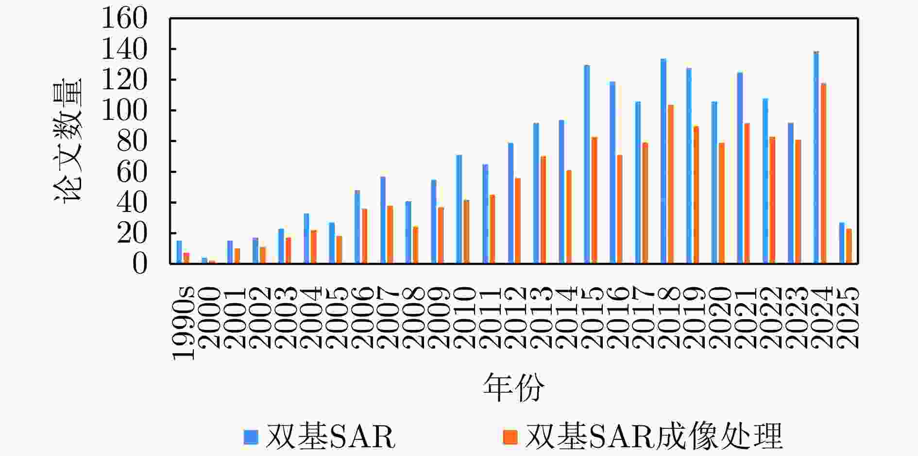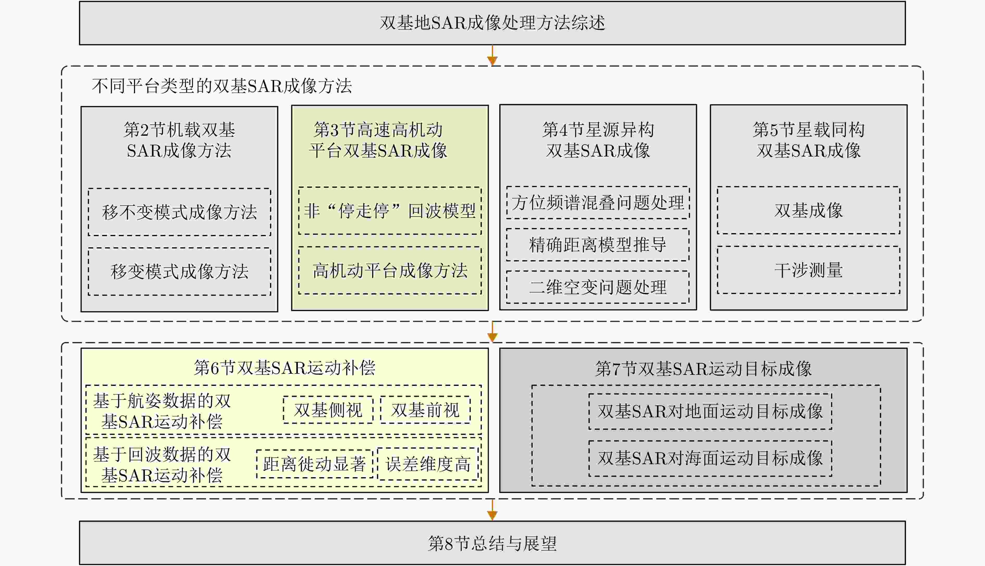 摘要: 双基合成孔径雷达(SAR)采用收发平台分置的方式,能够实现复杂环境下对地海面场景和目标的高分辨成像,具有配置灵活、隐蔽性好、抗干扰能力强、获取目标信息丰富等优势,在高精度遥感测绘、隐蔽成像、精确打击等多个领域具备重要应用价值。成像处理是获得双基SAR高分辨图像的关键步骤,而双基SAR的回波模型、回波特性与传统单基SAR有显著的不同,需要对处于不同模式、不同构型下的双基SAR研究相应的成像处理方法。该文分别针对机载双基SAR、高速高机动平台双基SAR、星源异构双基SAR、星载同构双基SAR等典型模式,以及双基SAR运动补偿方法和运动目标成像等方面,分别阐述和分析了其中的关键问题,并梳理了国内外相关的解决思路和研究进展,最后对双基SAR成像处理技术的未来发展趋势进行展望。Abstract: The bistatic Synthetic Aperture Radar (SAR) system, which employs spatially separated transmitting and receiving platforms, provides high-resolution imaging of terrestrial and maritime scenes and targets in complex environments. Its advantages include flexible configuration, strong concealment capabilities, high interference resistance, and comprehensive target information acquisition, making it valuable in high-precision remote sensing mapping, covert imaging, and precision strikes. Image processing is critical for obtaining high-resolution Bistatic SAR (BiSAR) images. However, the echo model and characteristics of BiSAR substantially differ from those of traditional monostatic SAR, necessitating specialized image processing methods tailored to various operational modes and configurations. This study examines key challenges and solutions for several BiSAR configurations, including airborne BiSAR, BiSAR with high-speed and highly maneuverable platforms, spaceborne heterogeneous BiSAR, and spaceborne homogeneous BiSAR. This study also addresses motion compensation approaches and moving target imaging in BiSAR systems, reviews relevant domestic and international research advancements, and provides an outlook on future trends in BiSAR image processing.