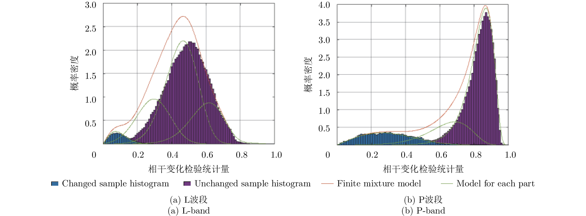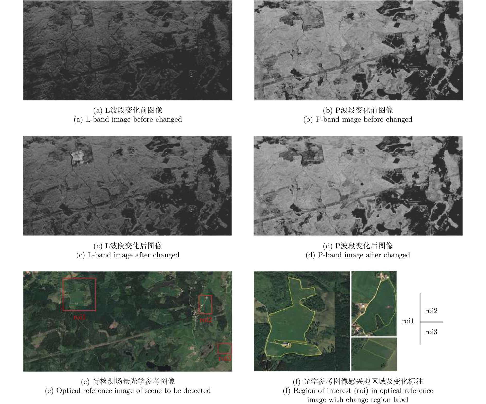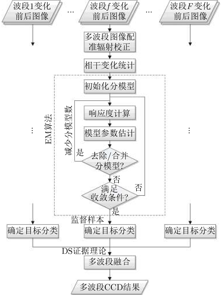 Coherent Change Detection (CCD) detects micro changes in a scene using phase coherence of SAR images before and after a change. It is difficult for conventional CCD method to distinguish low coherence interference region from objective change region because of a single detection scale. Multi-band SAR target detection in a multiscale way develops variable coherent representation according to the diversity of electromagnetic wave penetration, target structure, and change magnitude. In this paper, a multi-band CCD method is proposed. Firstly, the CCD images of every band were acquired; secondly, the detected scene was classified on the basis of coherent representation of targets in each single band using improved Expectation-Maximization (EM) algorithm; thirdly, the objective change class in each single band was selected by a few supervised samples; lastly, multi-band fusion CCD image was acquired by the use of Dempster-Shafer (DS) evidence theory. This multi-band CCD result can eliminate low coherent interference in each single band and decrease false alarm probability. The method is validated by L- and P-band repeat-pass SAR images acquired before and after change. Results and index parameters demonstrate the validity and correctness of the proposed method.
